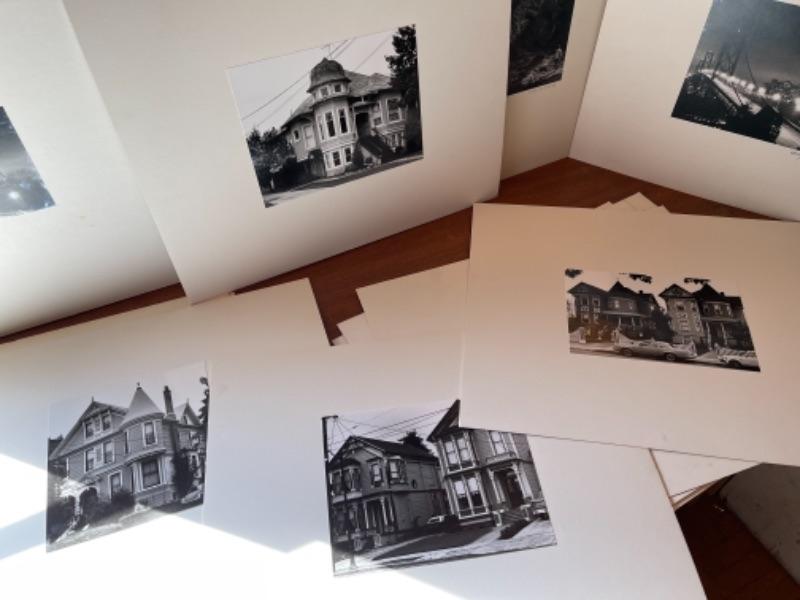 Lot 105. Black and white photographs on 16”x20” mat board. Subjects: Bay Bridge 1983, landscape, Alameda Victorians (total 14)--Was $65 - - Now $25