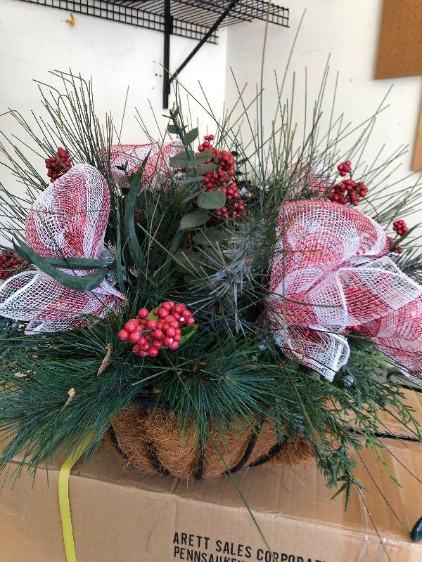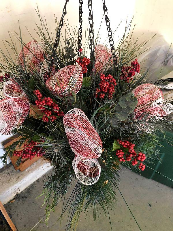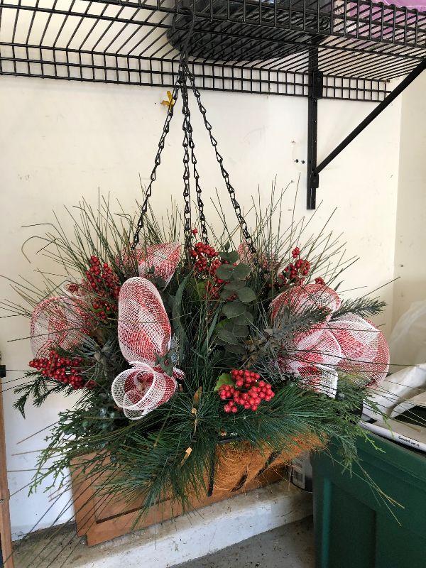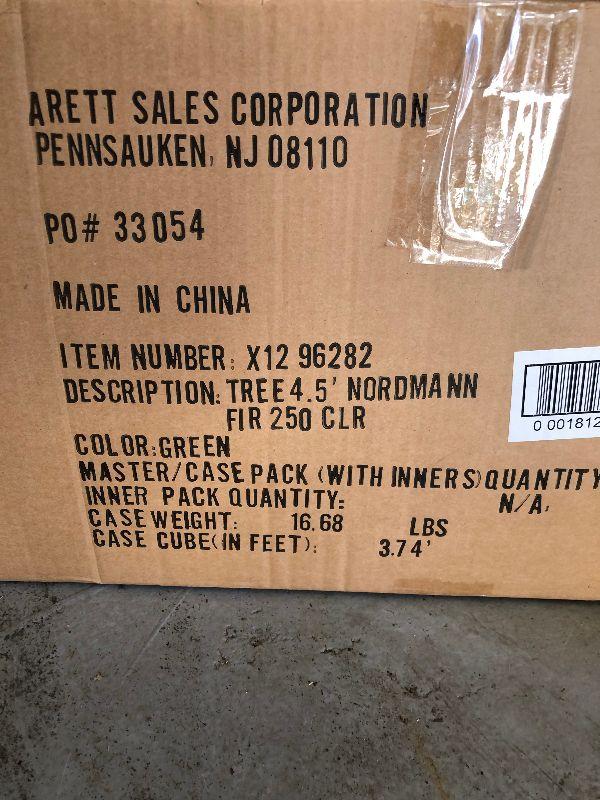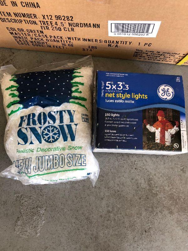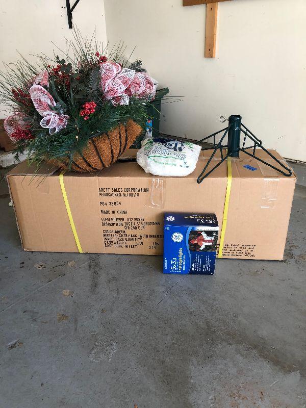 4'5" Nordmann Fir Tree, Stand, Bag of Frosty Snow, Net Style Lights and a Large Decorative Hanging Plant