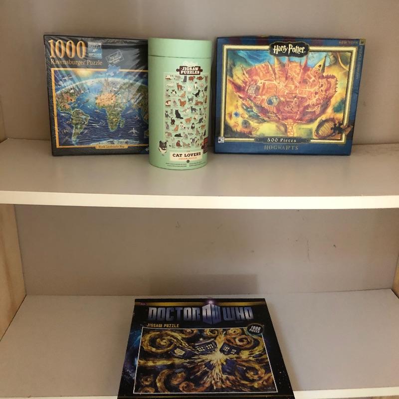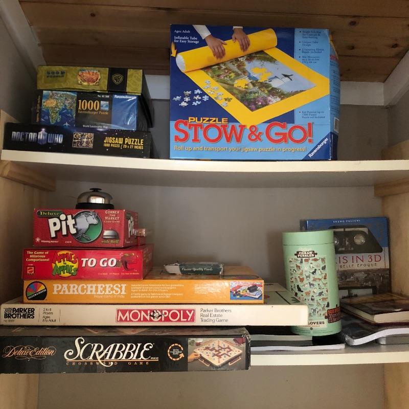 Be prepared for the cold winter days ahead with this great assortment of games and puzzles that will keep the whole family entertained. In addition to the classic games, there are a few puzzles, and even a mat to roll them up in for safe keeping or travel and a Paris in 3D that has not be opened. See images for everything.
