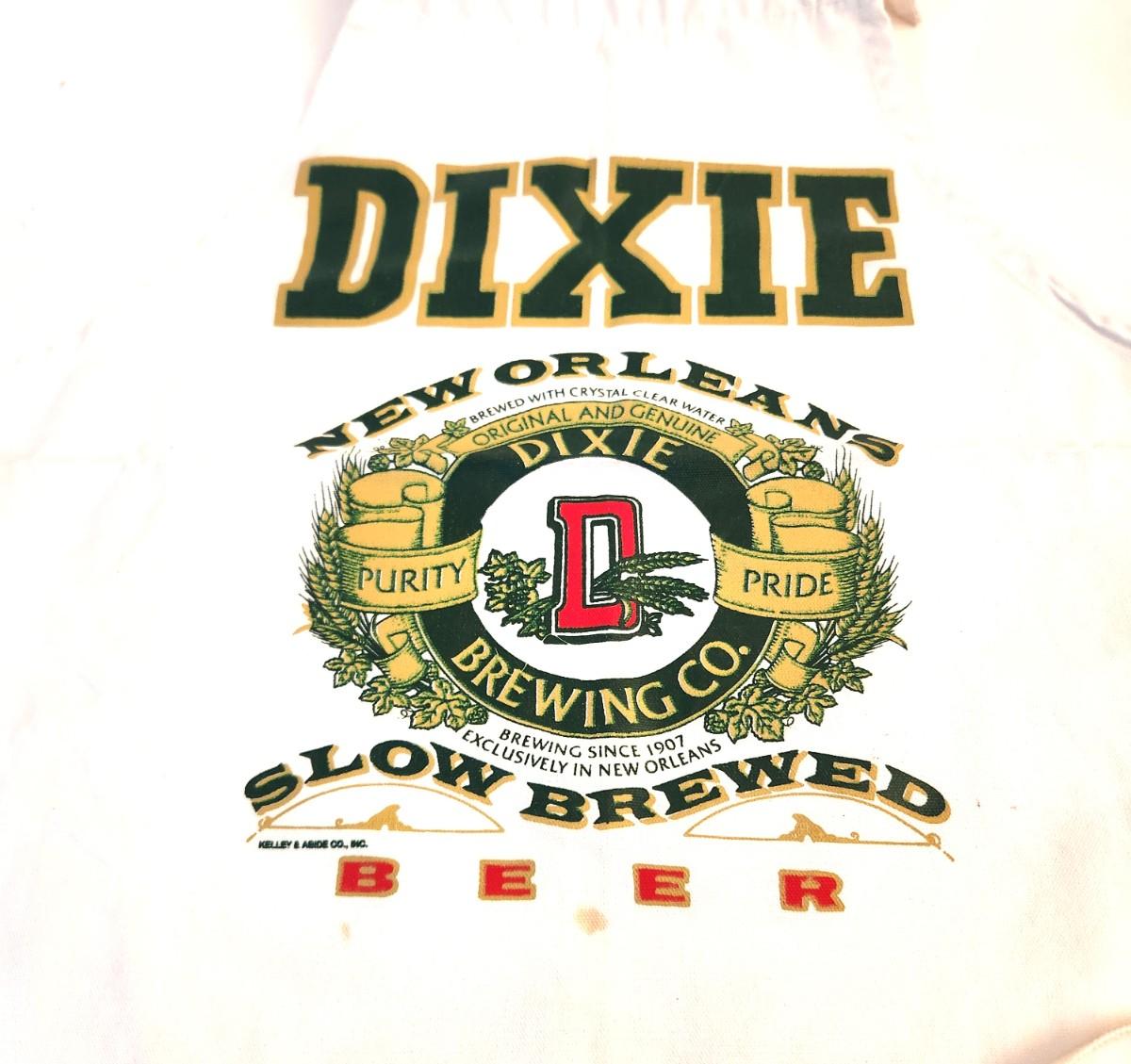 Dixie Beer "ain't dere no more" and their logo'd items are getting harder to find. Cotton Chef's apron - very small bit of stainage (we didn't wash).