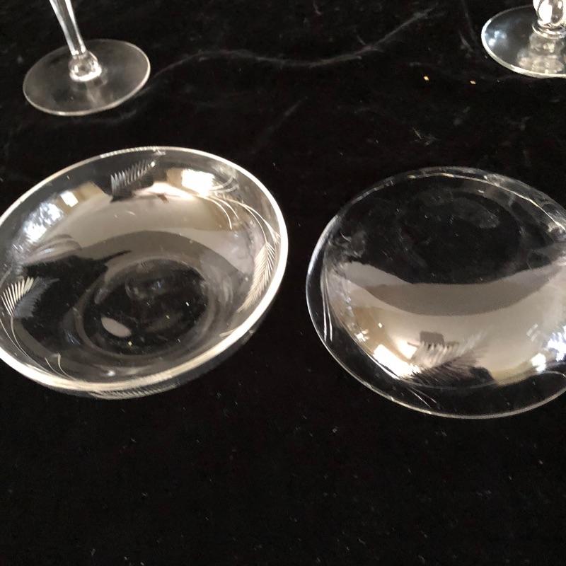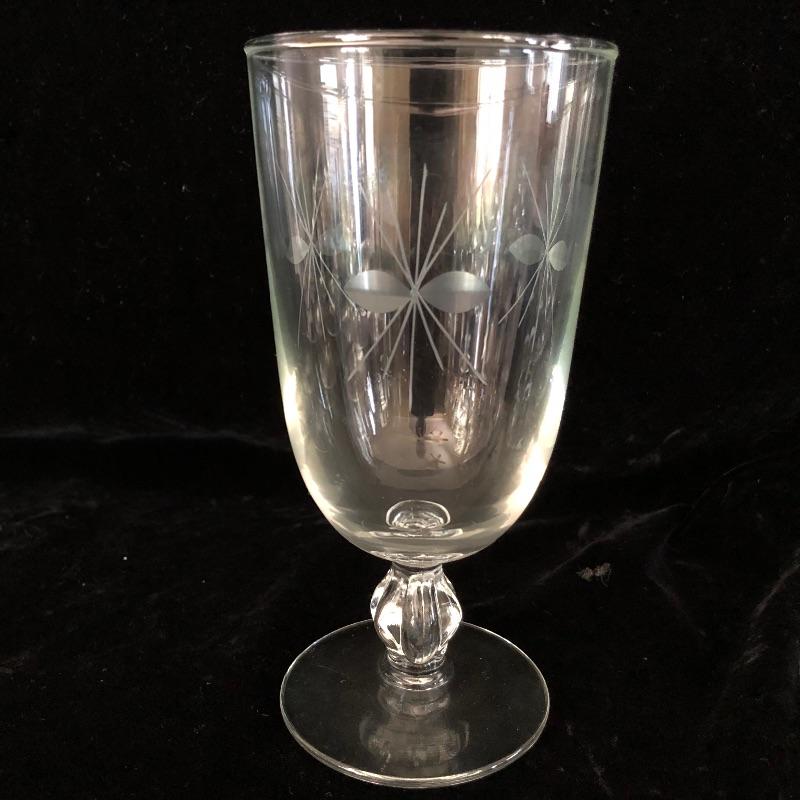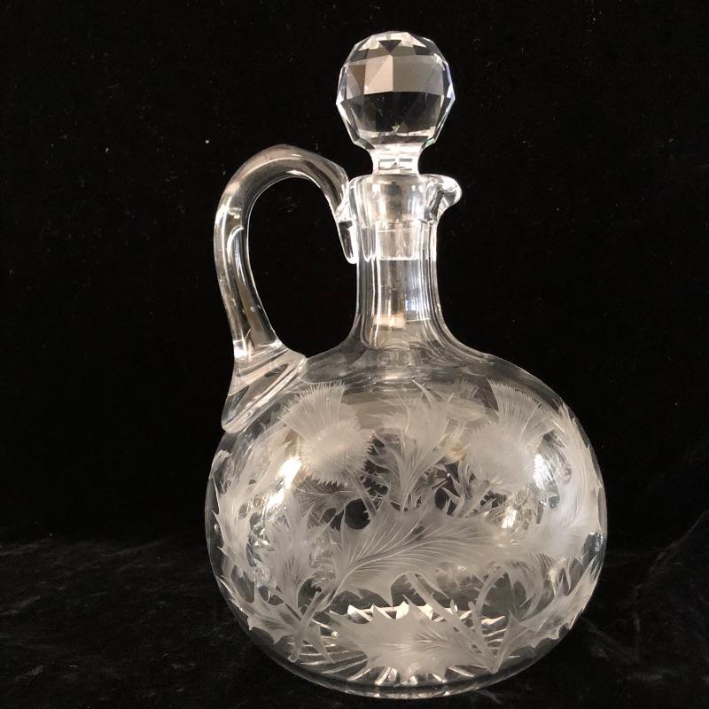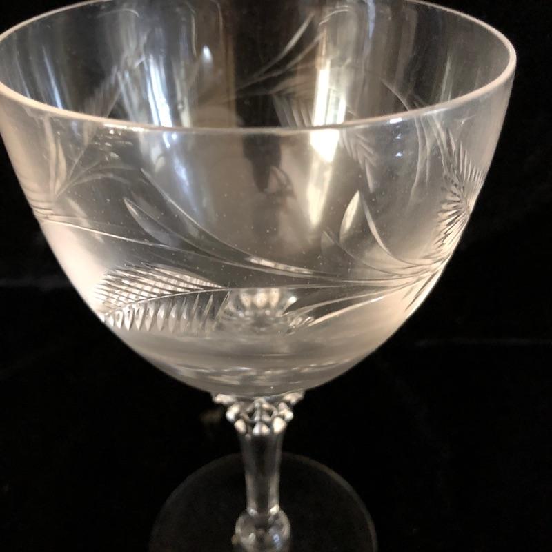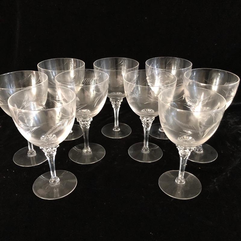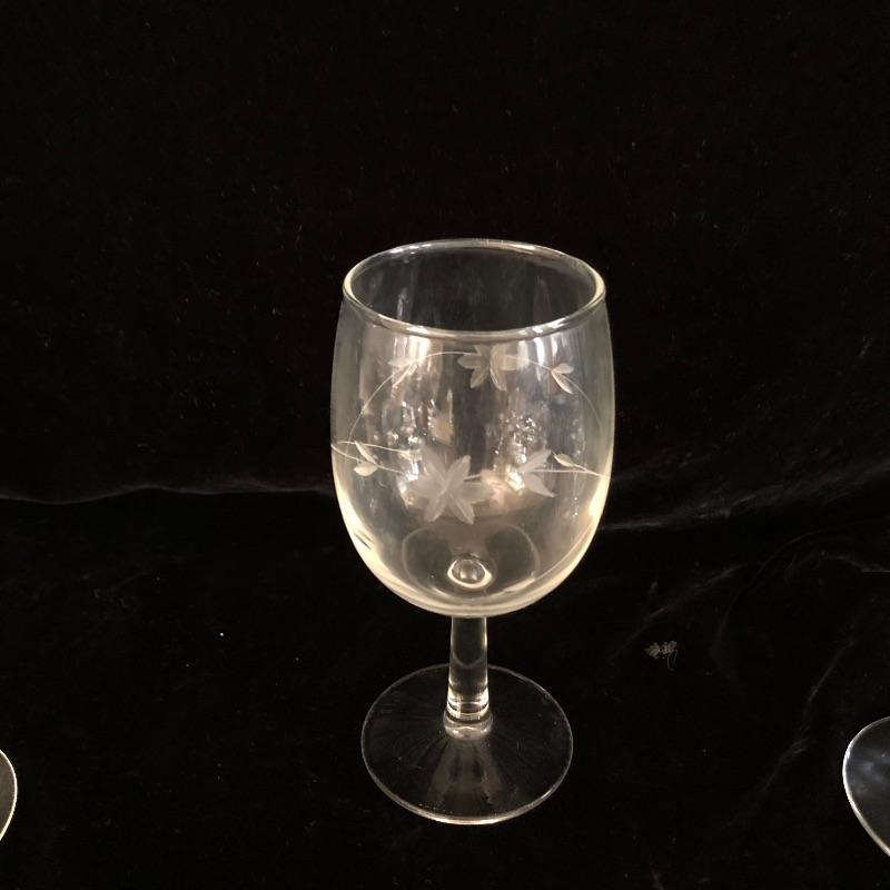 We have your next party covered for elegant stemware with 11 wine glasses, 12 water glasses, a large platter and a stunning decanter with a thistle design etching and more. Platter measures 13”.
