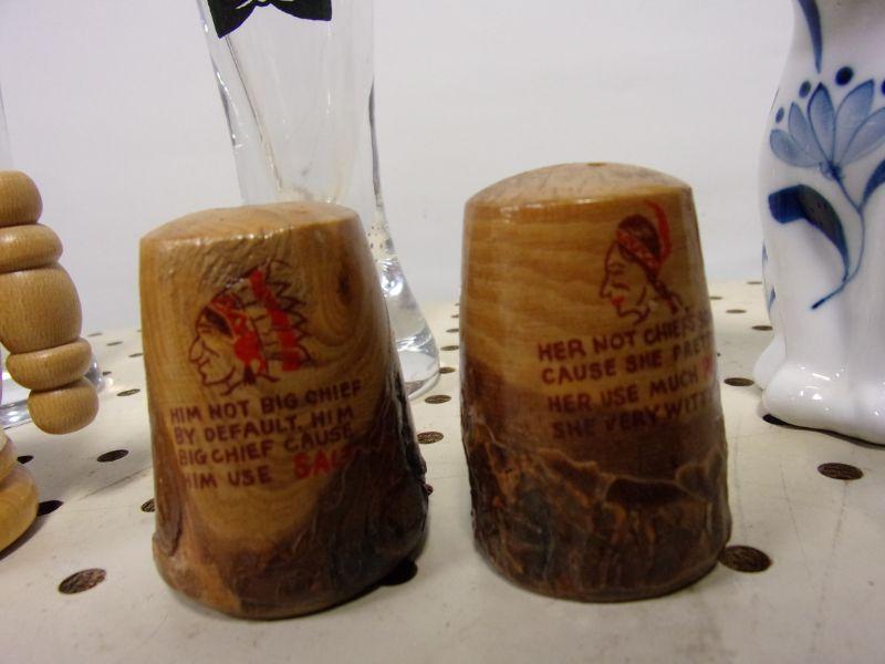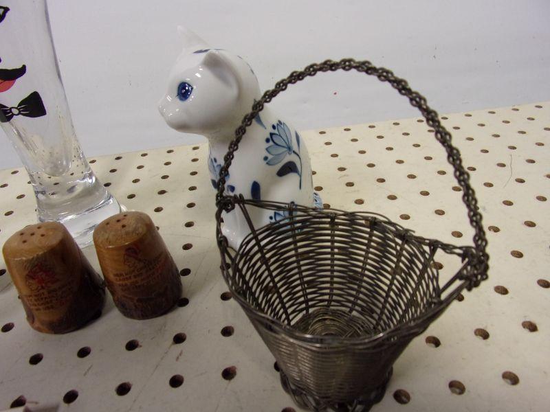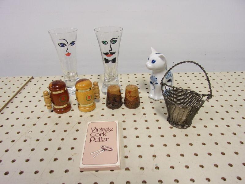 Lot 105 - Glasses Salt & Pepper Shakers Wire Basket