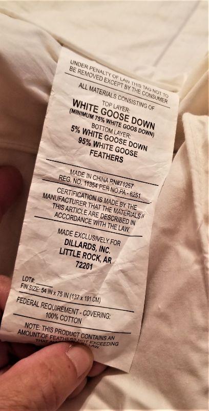 Gently used Goosedown Duvet (purchased from Dillards) that will fit a full/double bed. Meant to be used with the duvet cover of your choice. Clean.