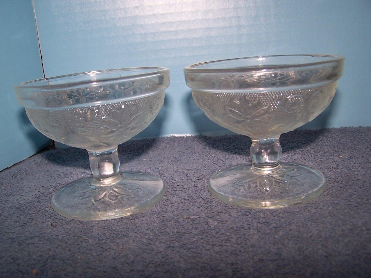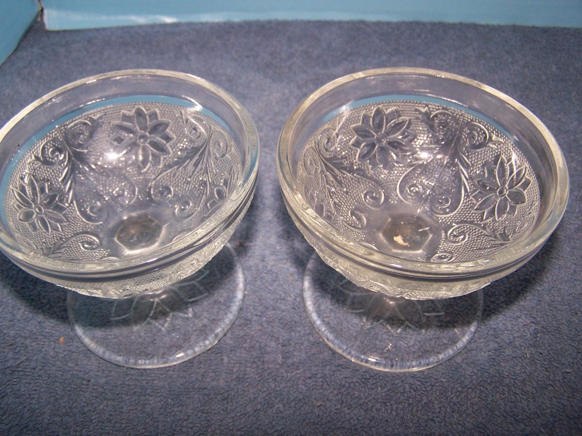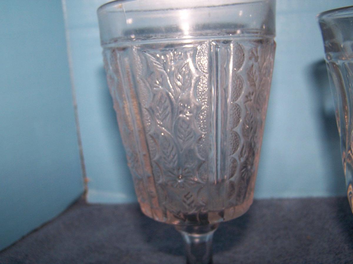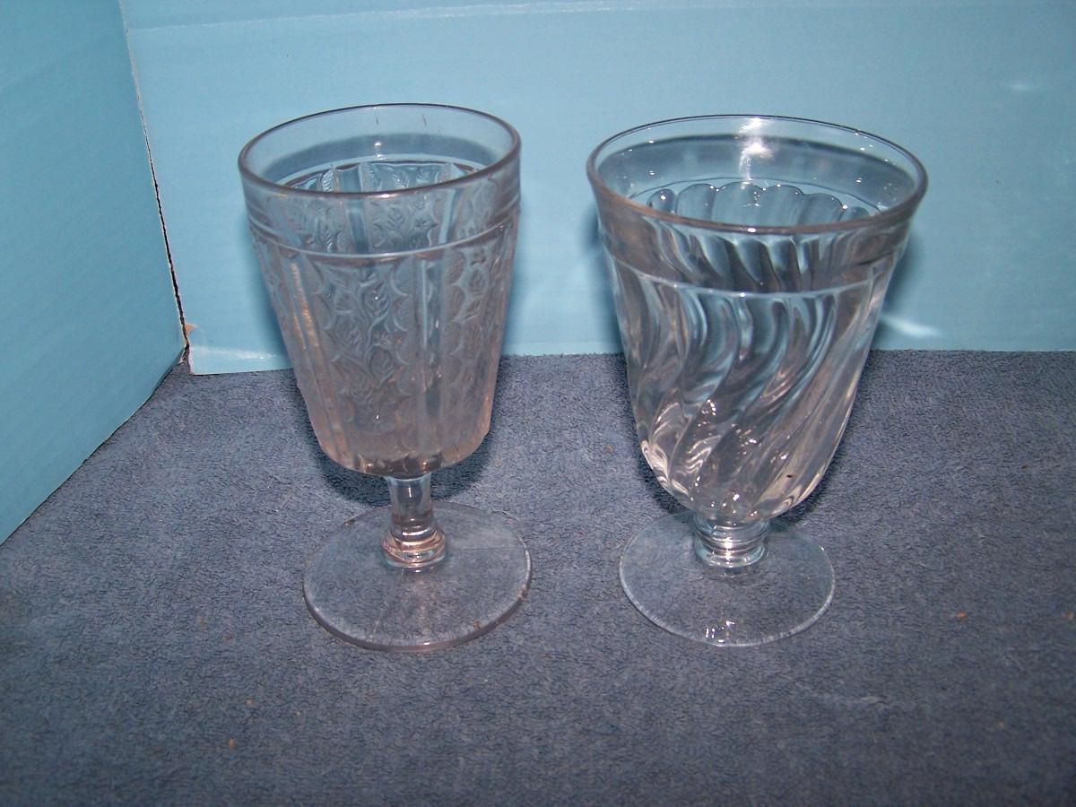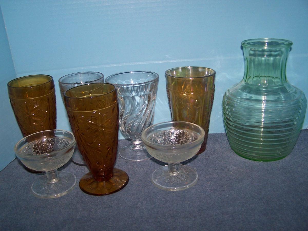 SOME GREAT VINTAGE GLASSWARE! UNMARKED.. 1 CLEAR STEM HAS A FLAKE ON BASE.. LIGHT WEAR..