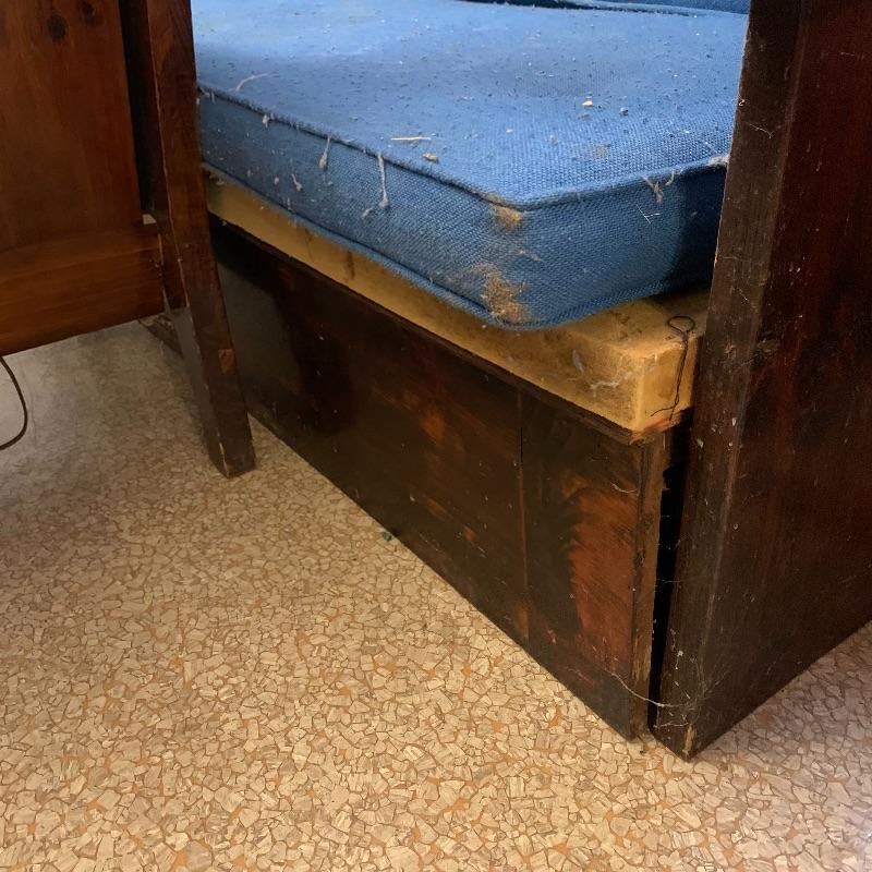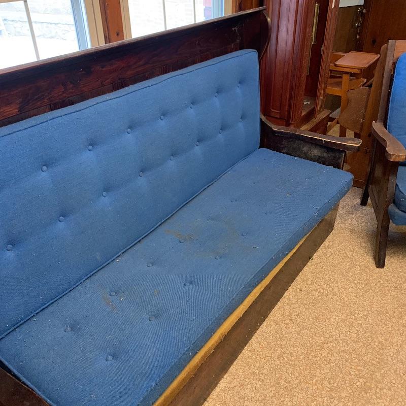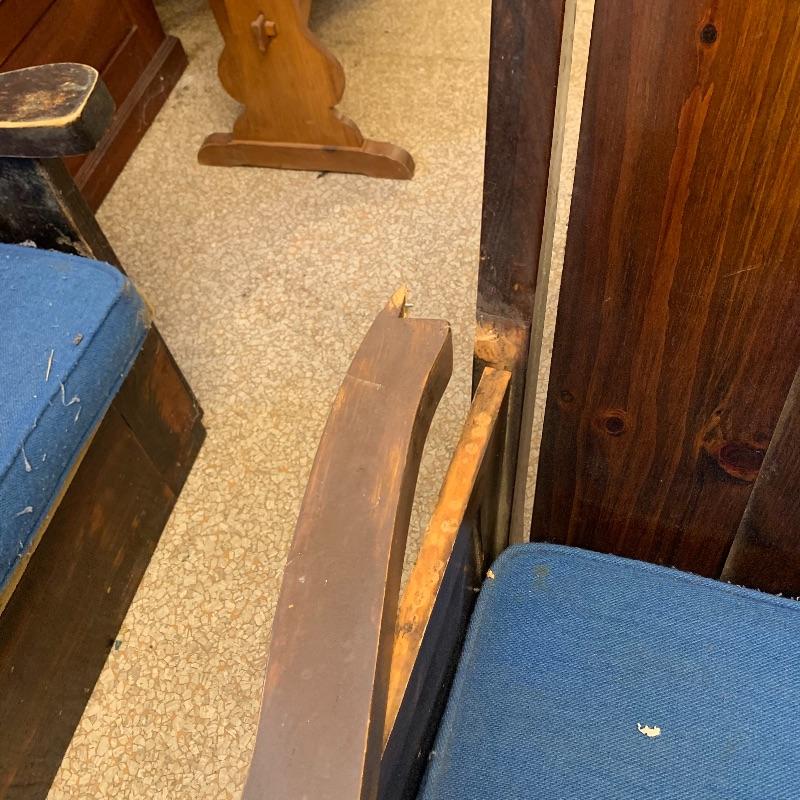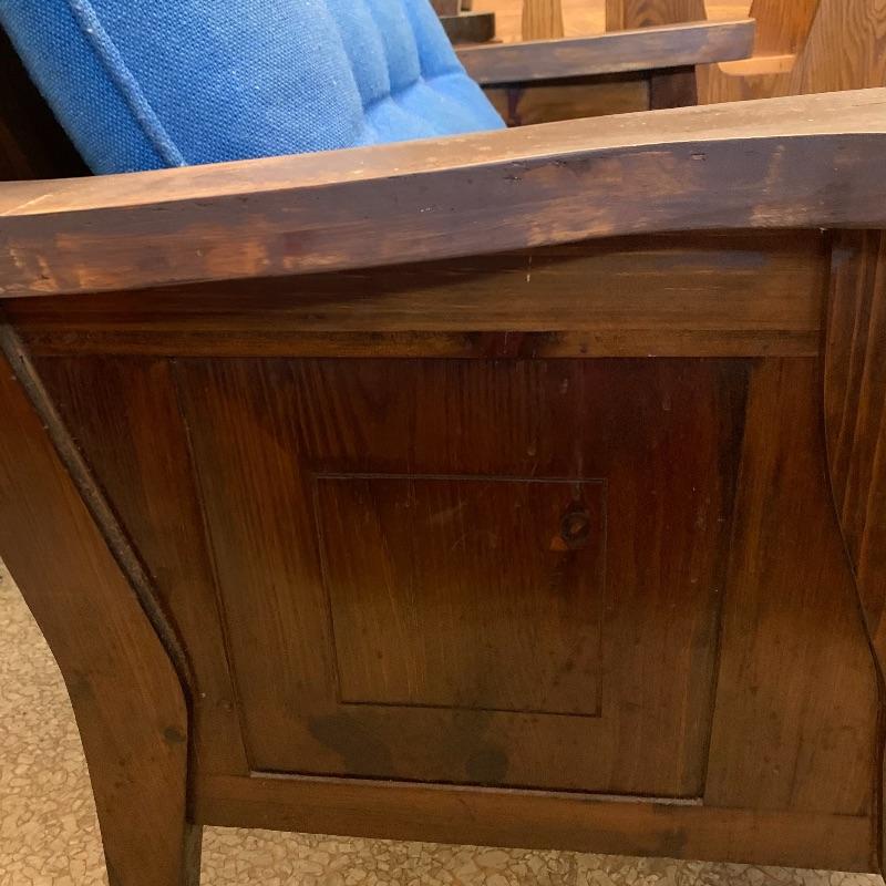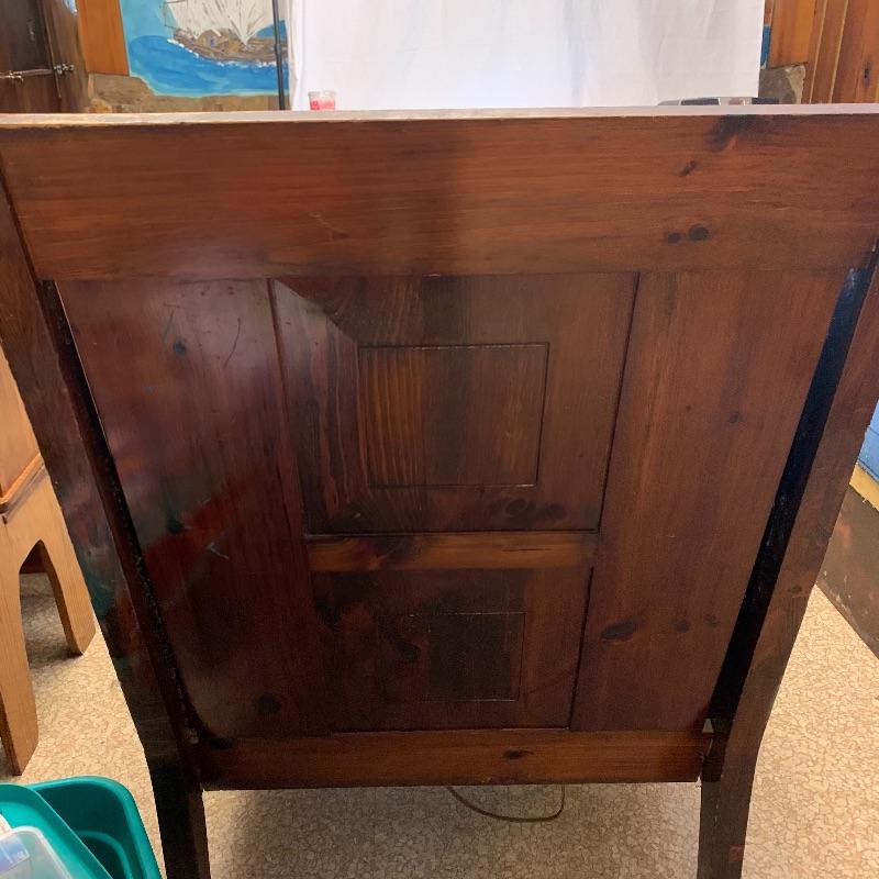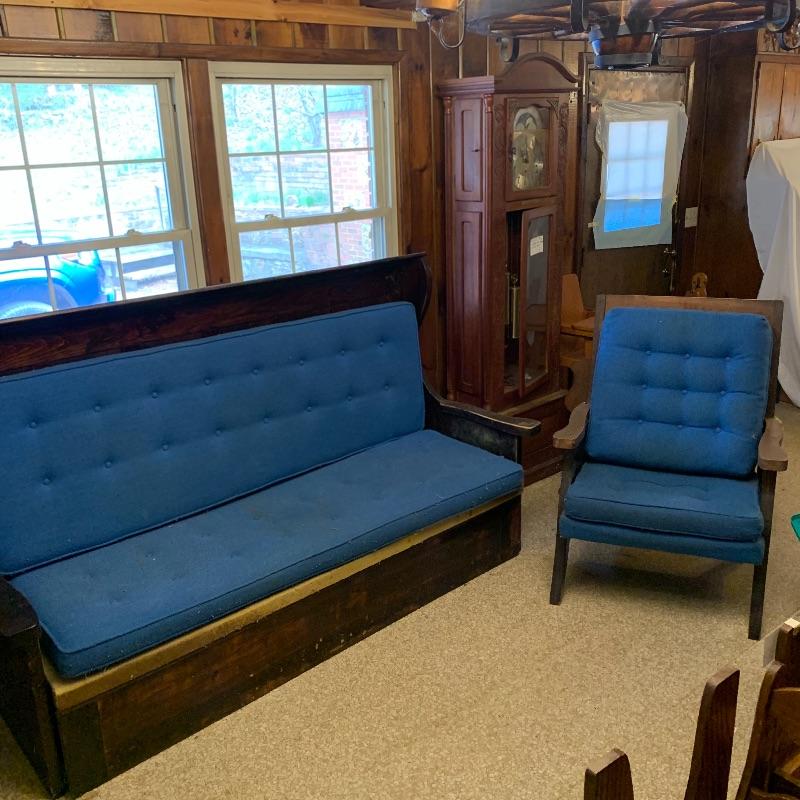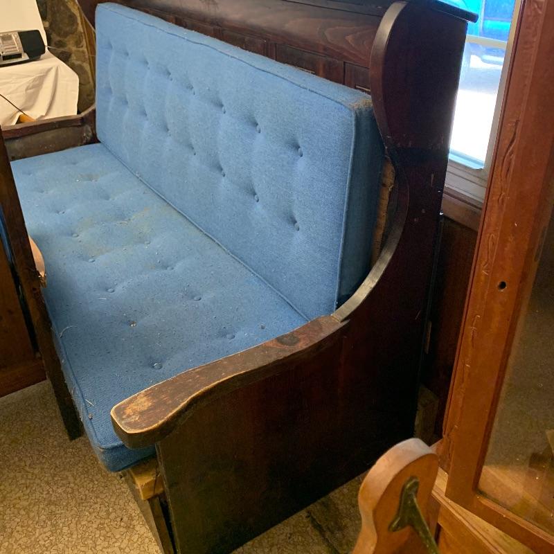 Make room for handmade furniture! Lot 105 includes 2 pieces of furniture. The first is a large bench featuring a raised panel design (see pics) and dark stain. The back of this bench is beautiful! It measures 84” in length, 32” deep, and 50” tall. The chair is 32” wide, 32” deep, and 43” tall. This chair also boasts dark stain and a raised panel design. Both of these pieces could use some light carpentry work, particularly in the arms of the chair which are loose. Some fresh glue and some screws should get these two back to being sturdy and solid. Local pick up only.