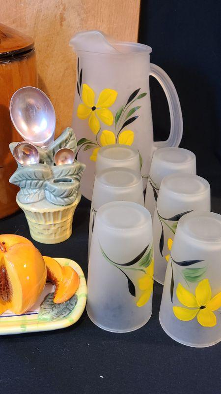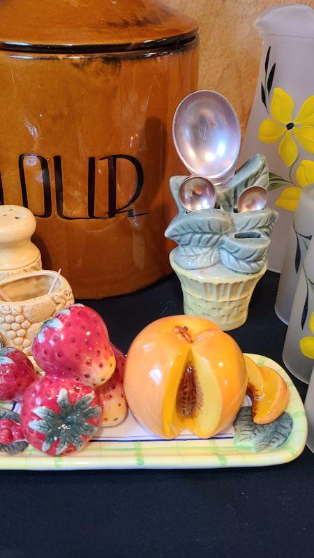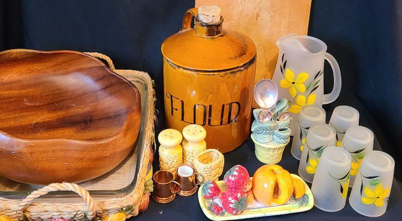 Fun lot of vintage kitchen items. Please see all pictures for the full content of the lot, condition of items, and measurements if taken. CLS