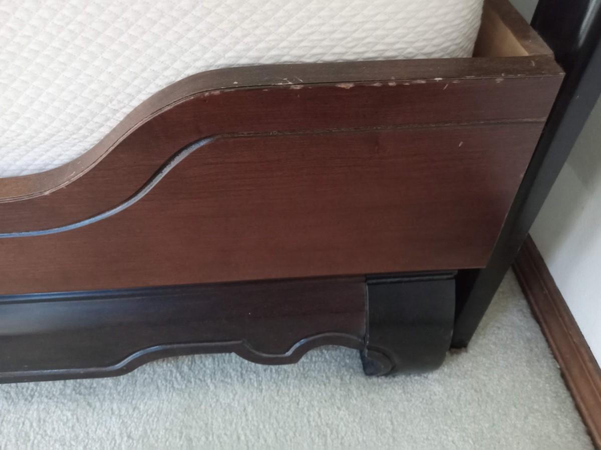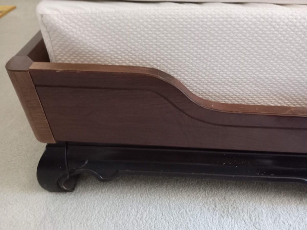 THE ASIAN STYLE BED FRAME HAS SOME SCRATCHES ON THE SIDE RAILS