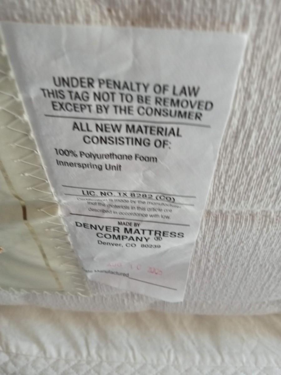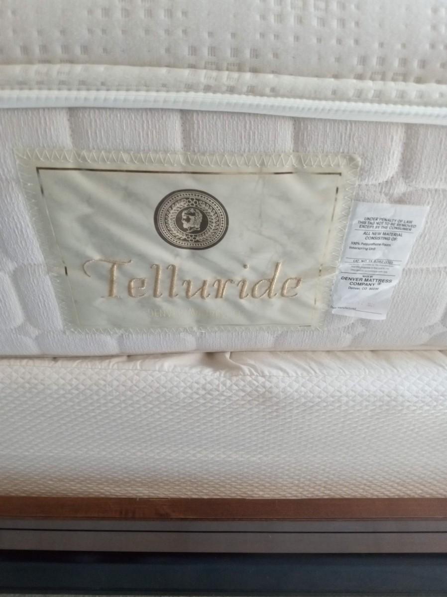 CLEAN AND LIGHTLY USED "TELLURIDE" KING SIZE MATTRESS AND BOXSPRING FROM THE DENVER MATTRESS COMPANY