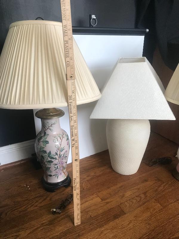Three vintage lamps. Please see all pictures for content of the lot, condition of the lot, and measurements if taken. Pictures are the best representation of the items listed and items are untested unless indicated in description. Thank you for looking and have fun bidding!