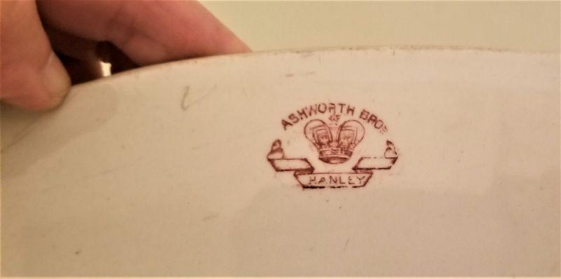For use or as a display - large antique Ironstone platter - English, 19th century. Good antique condition. By Ashworth Bros. - the pattern is "Hanley." Measures 19.5" x 15.25".