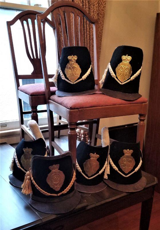 Lot #106 Lot of 6 Regimental British Military Hats, ca, 1815 - reproductions/movie props/reenactment
