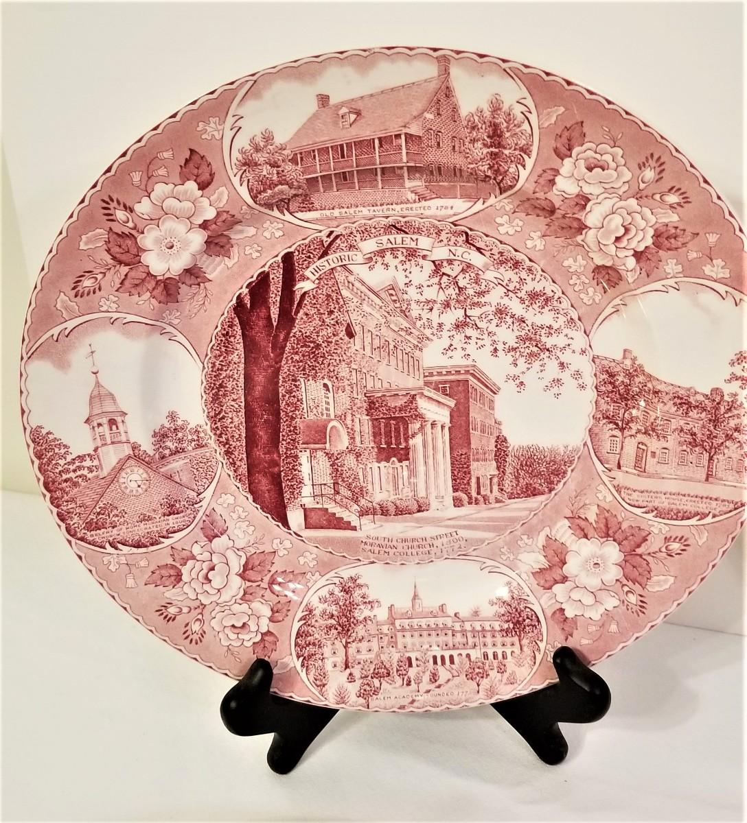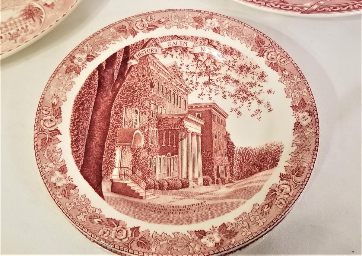Lot #105  Lot of Mulberry Transfer Ware Plates - Scenes from Salem, N.C.