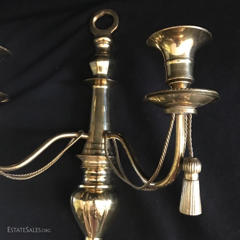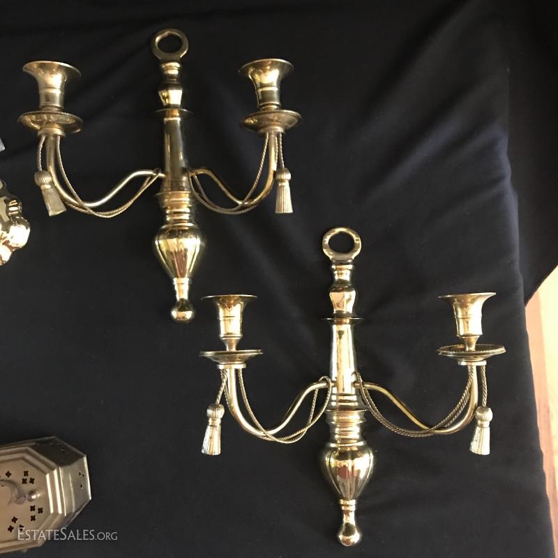 Sconces are 13" tall x 11"w. Baldwin candlesticks are 7.5" tall