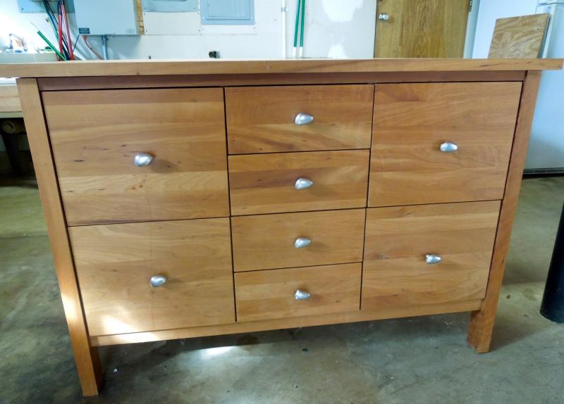 Modern solid oak dresser with nickel hardware and two file drawers. Made for Room and Board retailer. Two hanging file drawers bottom outside units.. Dimensions are 48" x 30" x 22" Retails around $1750. 2.5" water ring on top.