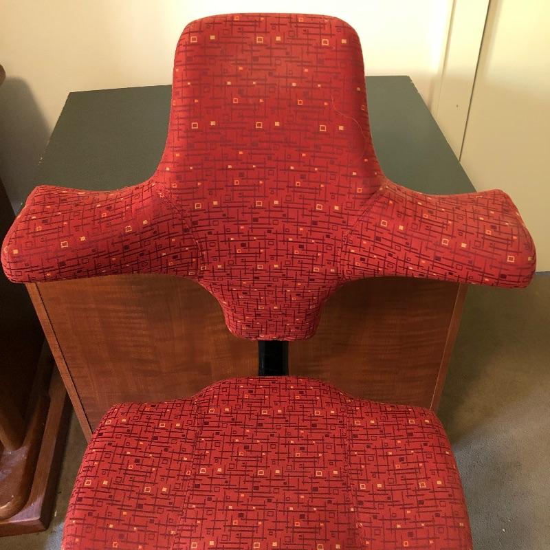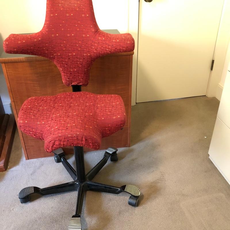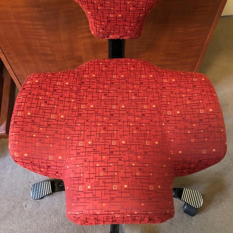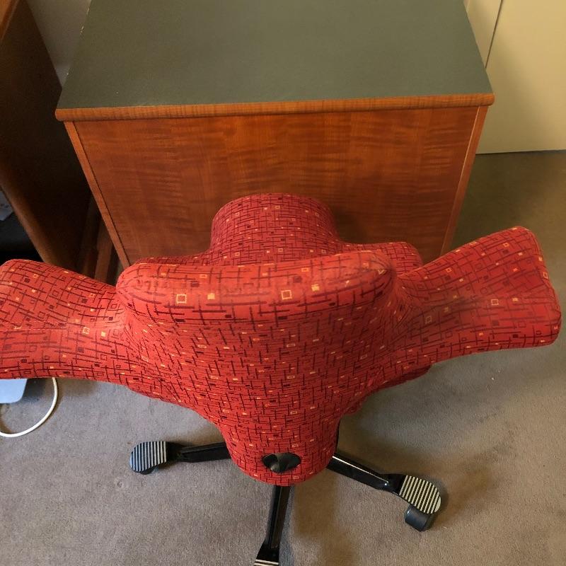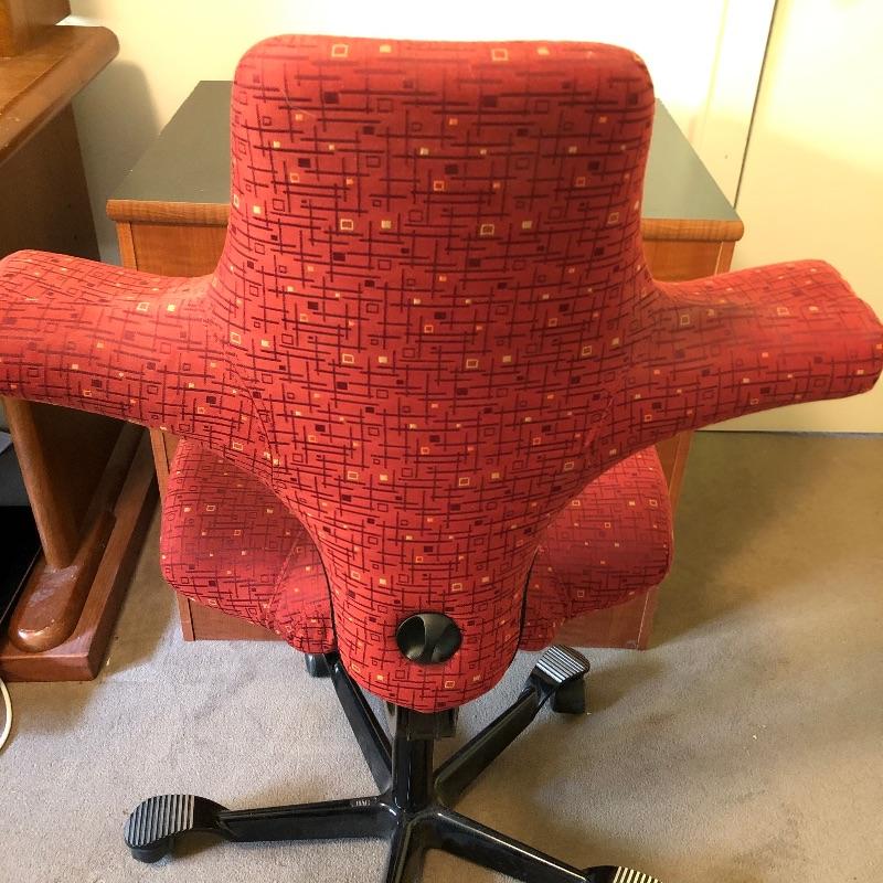 Super Groovy adjustable, award winning design office chair with nice wheels. Piece measures 28”x 28” x 41”. Local pickup only.