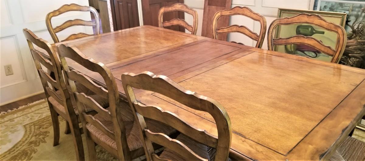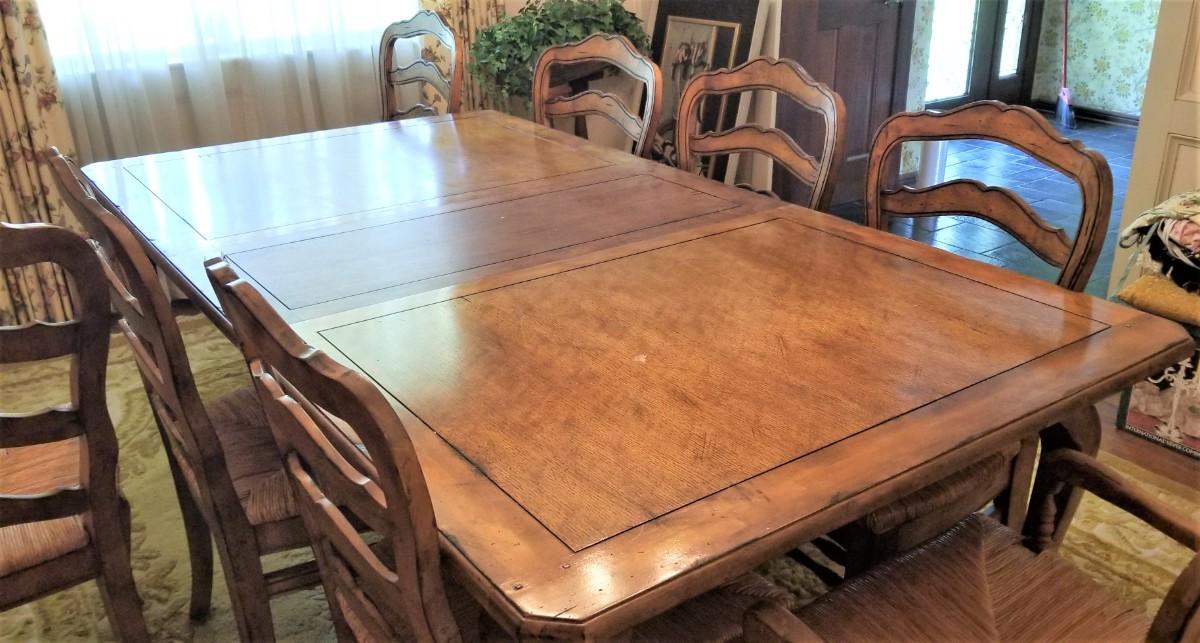 Lot #105 Pretty French Country style Dining Room Table w/8 chairs