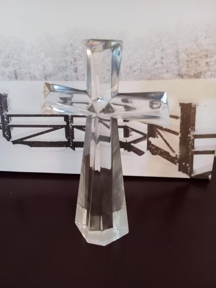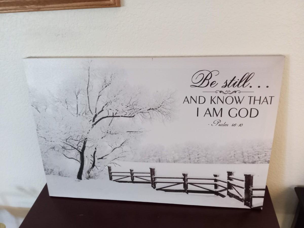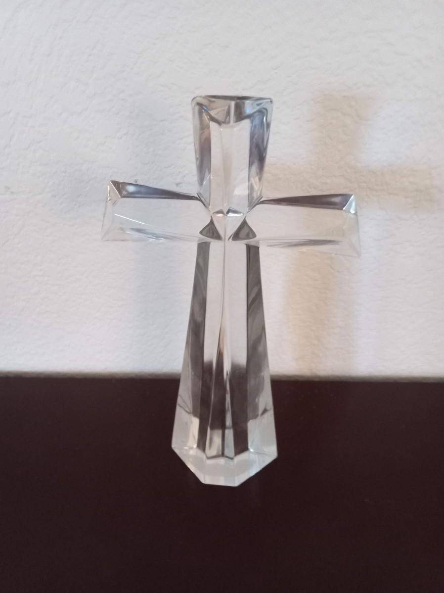 FINE BOHEMIAN CRYSTAL CROSS, PSALM 46 : 10 ON CANVAS WALL HANGING 24" X 16", JOHN 6:35 ON A CROSS HANGING ON AN IRON STAND