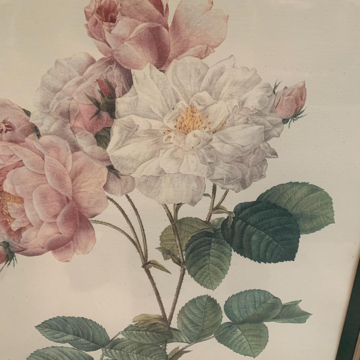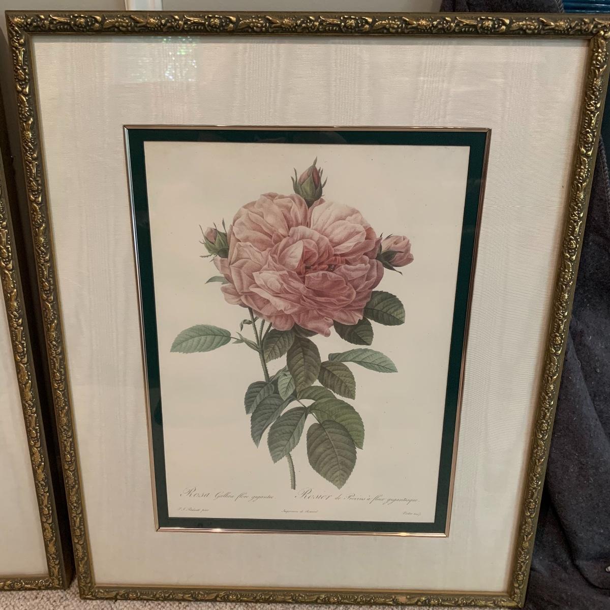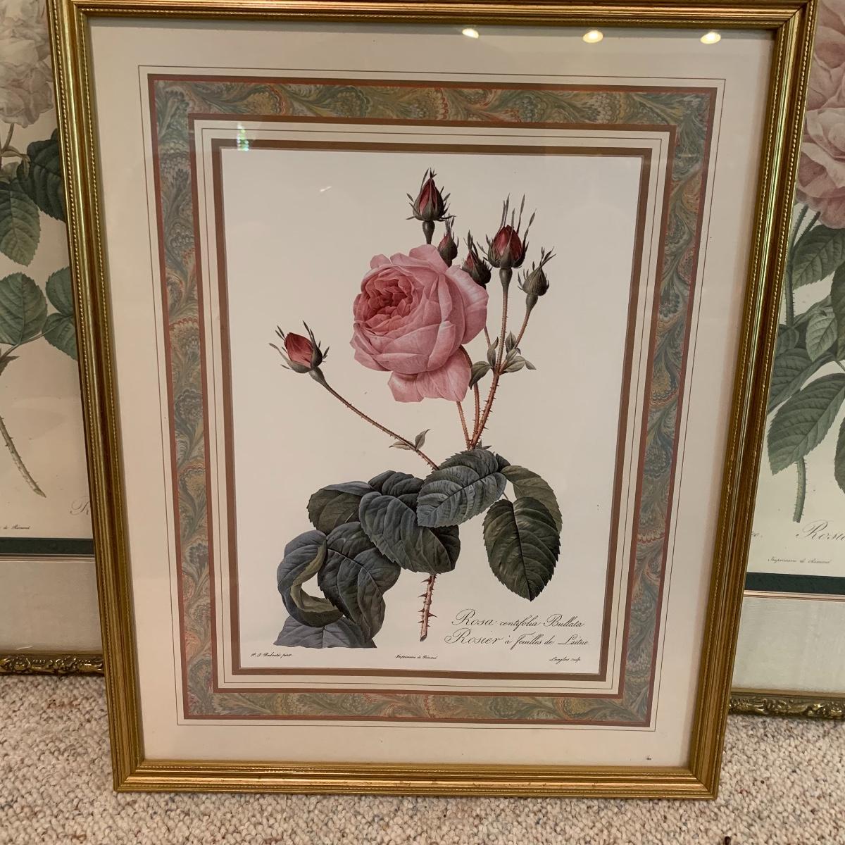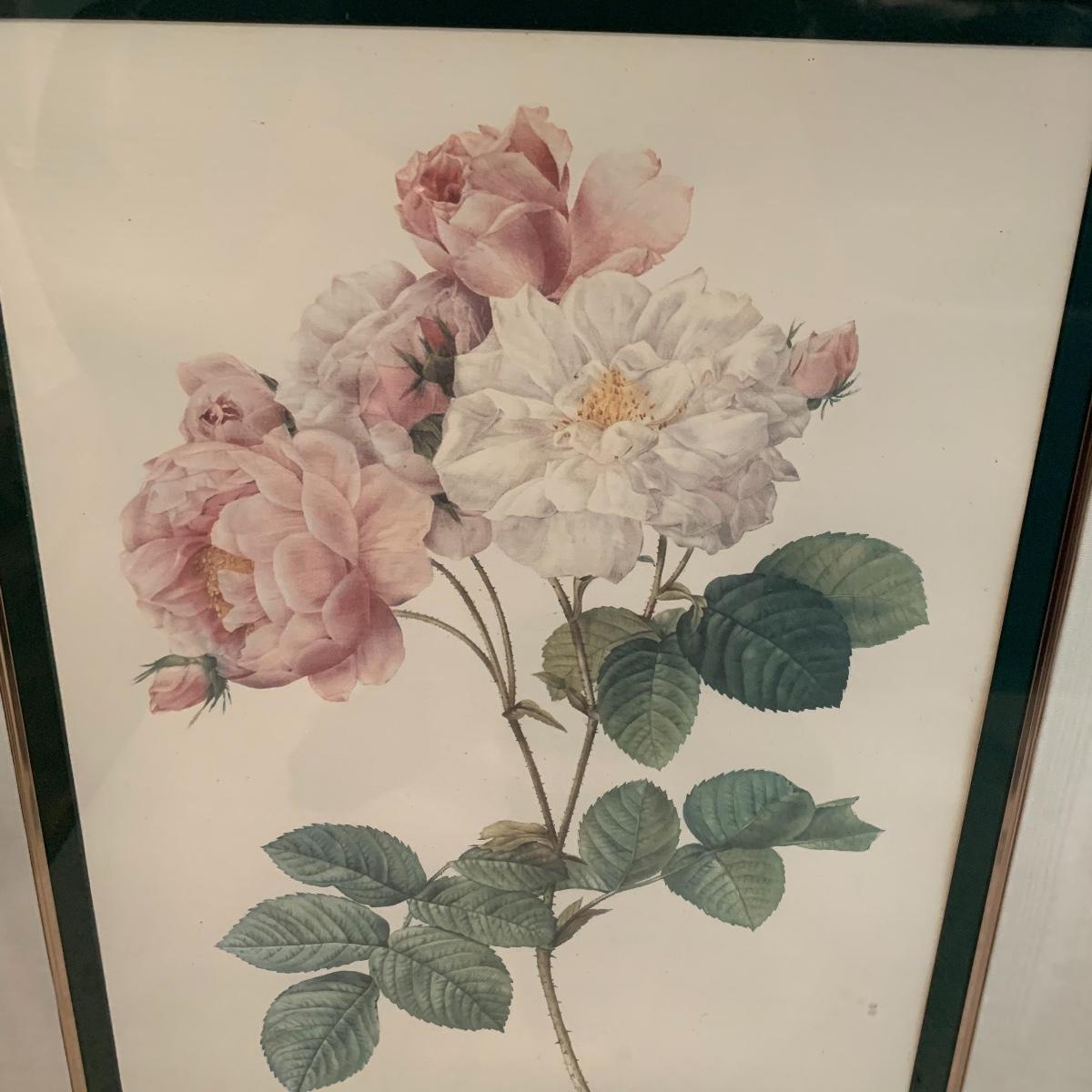 Don’t pass up this beautiful rose art originally created by Pierre-Joseph Redoute’. These prints are professionally framed and matted, and are in great condition. The two larger prints are 28” X 23” and the smaller one is 21” X 17”.