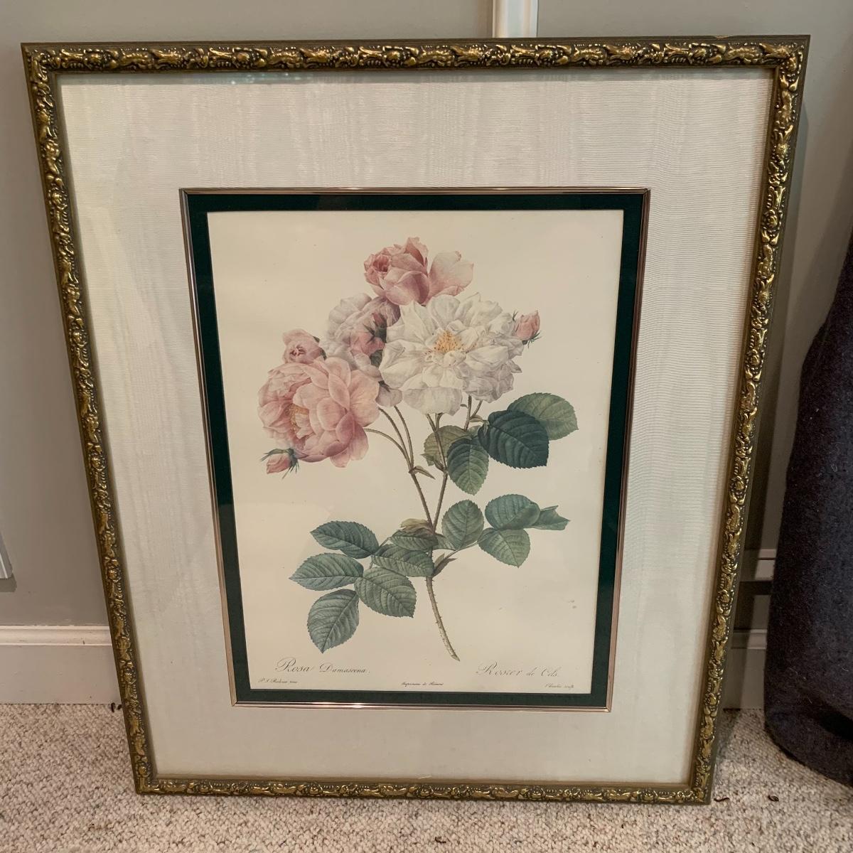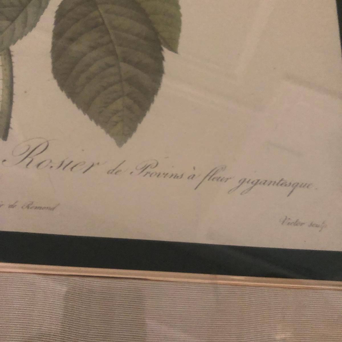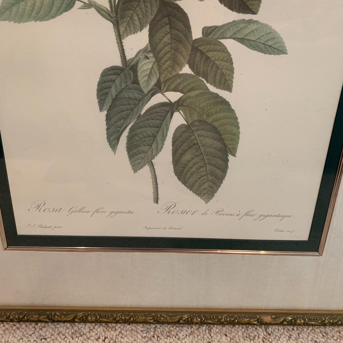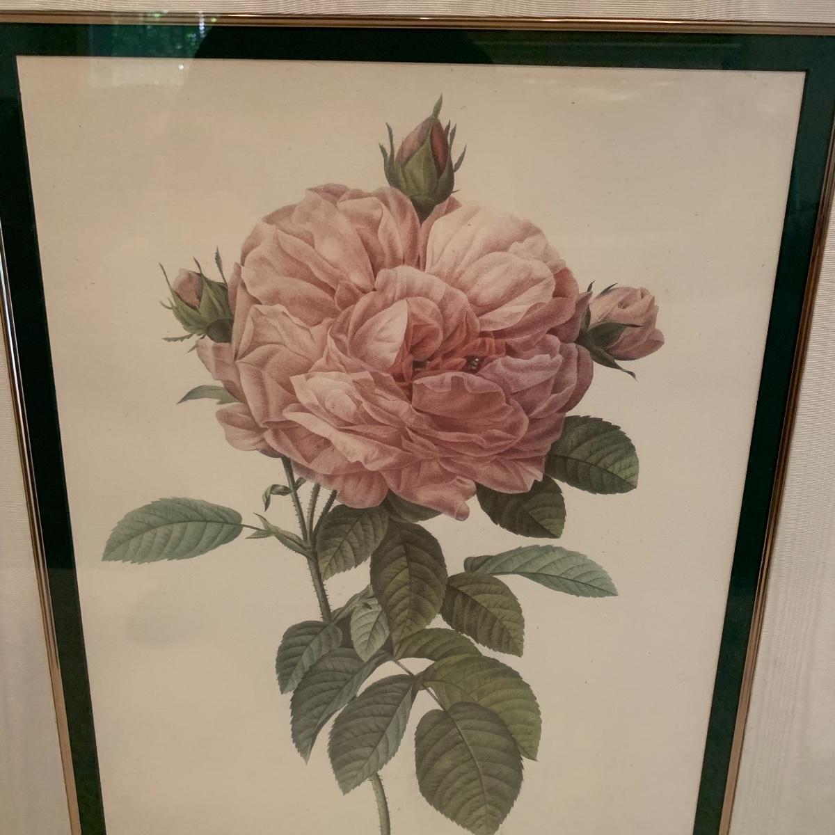 Don’t pass up this beautiful rose art originally created by Pierre-Joseph Redoute’. These prints are professionally framed and matted, and are in great condition. The two larger prints are 28” X 23” and the smaller one is 21” X 17”.