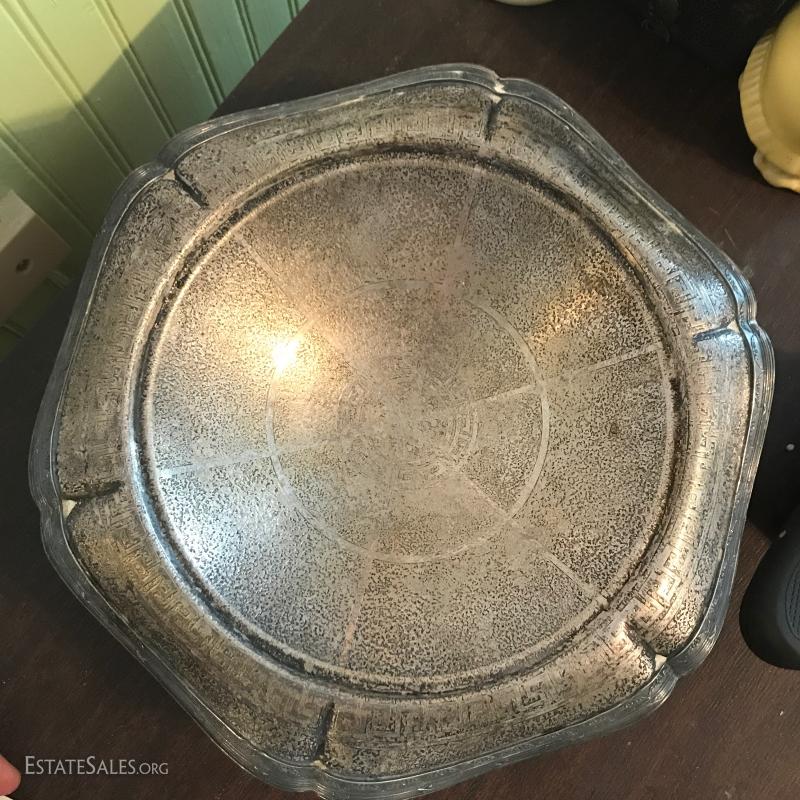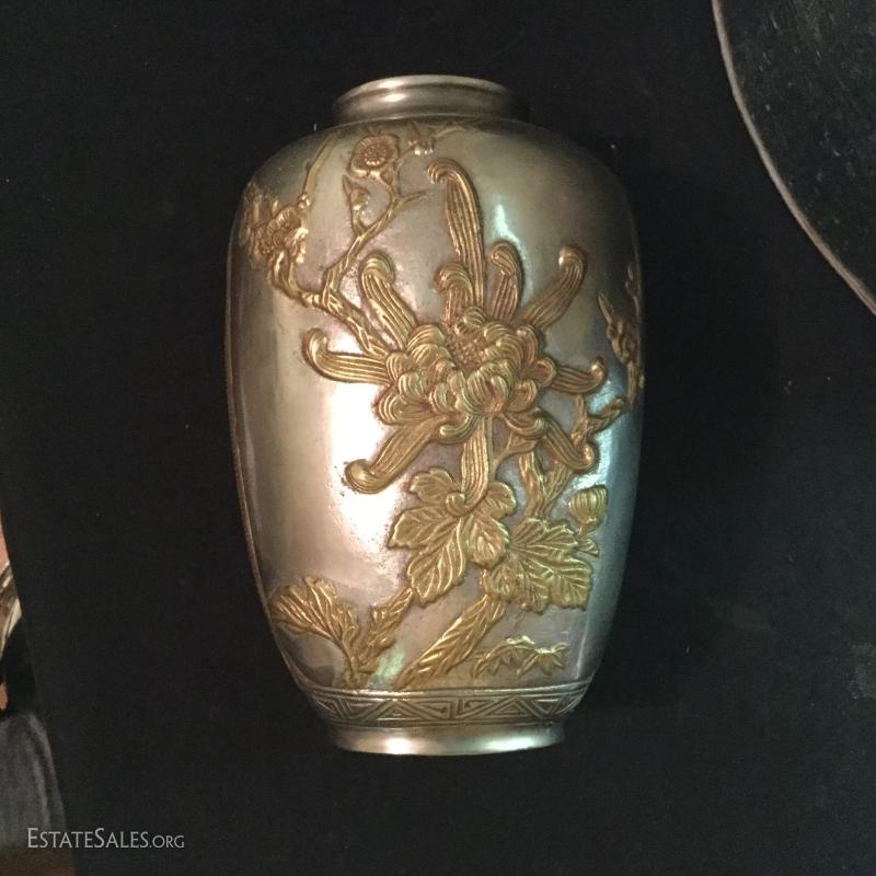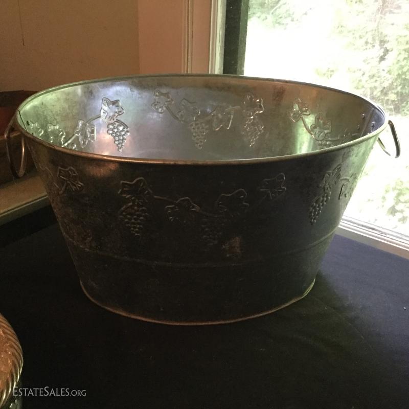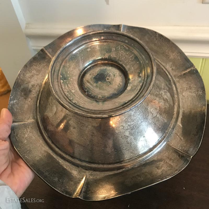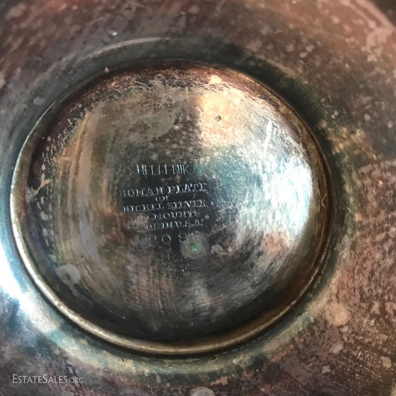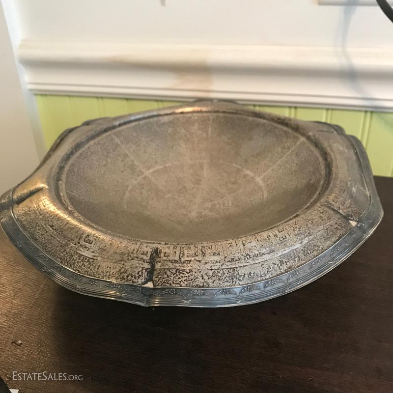 Silver-plated wine bucket, silver-plated basket, beautiful mixed metal vase and a Hellenic Homan Plate Nickel silver bread bowl. Vase measures 10.5"h. Total of 4 pieces. Lot available for local pick up in Saluda, NC