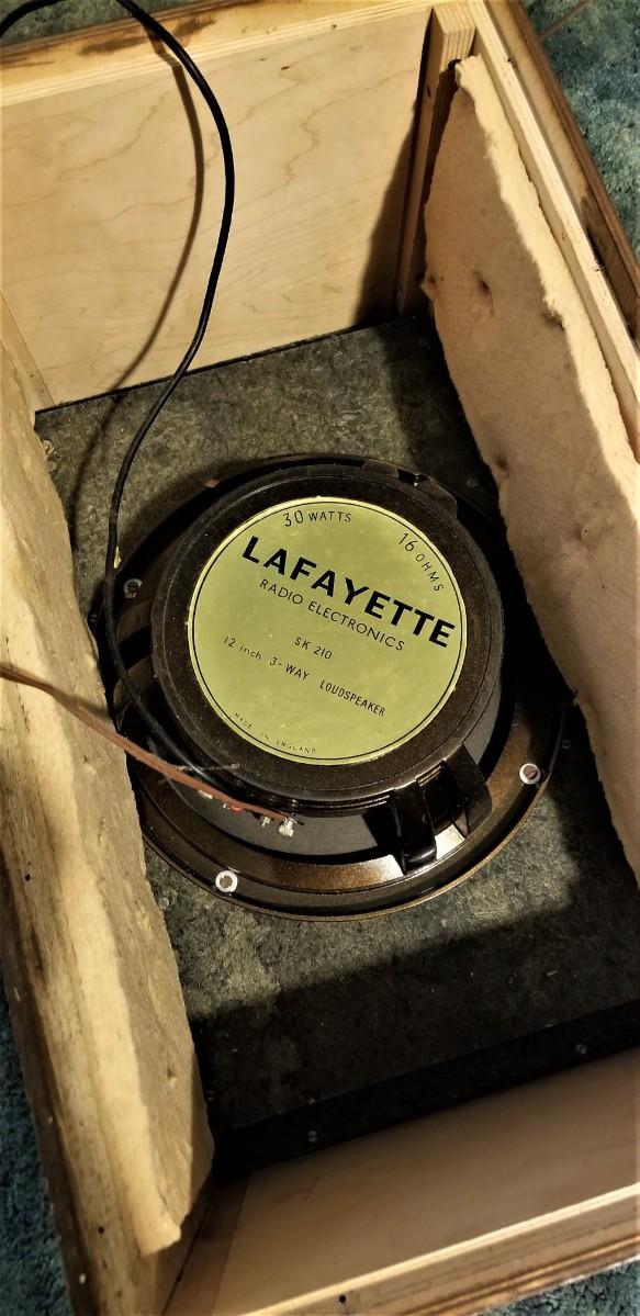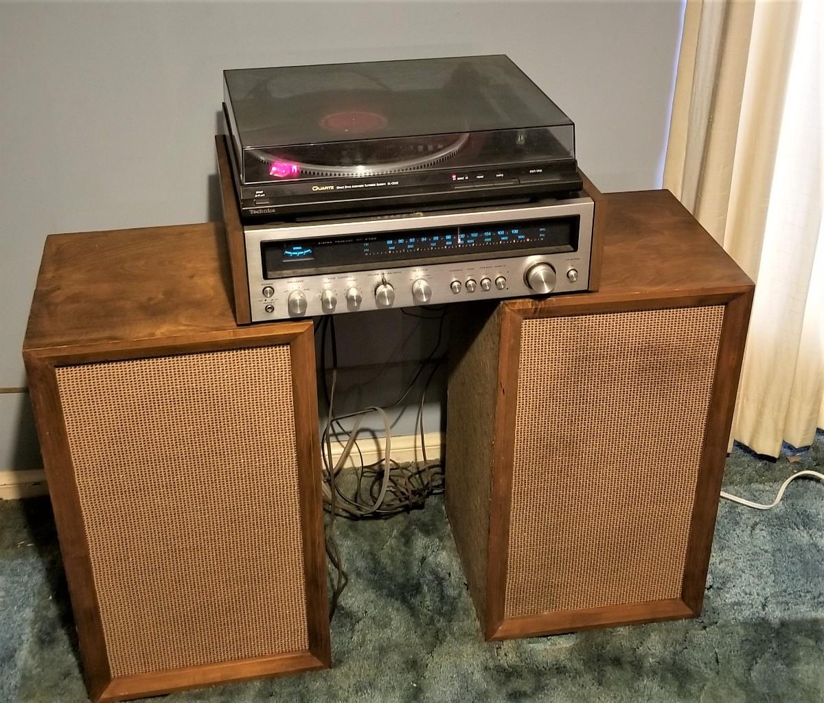 When you pick up we will demonstrate this group so you can hear the great sound that comes out of it. You get all you see here: Technics turntable (Model SL-QD33), a Kenwood receiver with AM/FM (model KR-3400), and a pair of English Lafayette 30 Watt, 16 Ohms speakers (SK-210) 3-way loudspeakers. Note: We checked the innards of the speakers and the original Lafayettes are in there. If you have been wanting a vintage turntable, look no further. You are bidding on the whole set.
