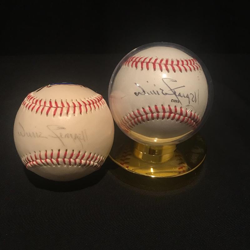 Two signed Willie Stargell baseballs who played for the Pirates. One ball in comes in plastic case with stand (says Spring Training on the ball). The other ball has Durham Bulls logo. Both balls have Willie Stargell autograph. One is a little faded. No COA. Shipping available.