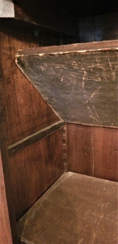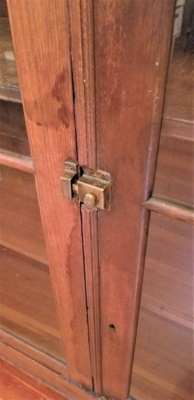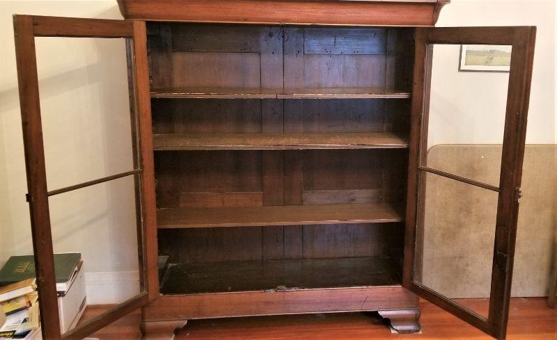This piece is well over 100 years old and is in good antique condition. All original. Three shelves are all adjustable. Measures 58.6" across, 18.5" deep, and 64" tall. Very heavy, solid wood. Purchaser will need to be able to load this piece themselves.