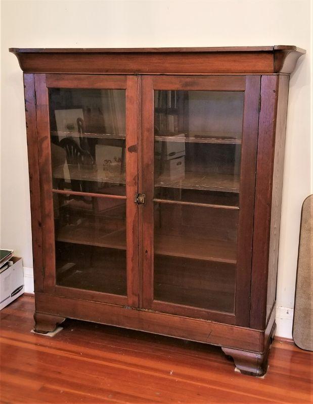 Lot #105 Very Nice Antique Empire Style Bookcase with Glass Doors