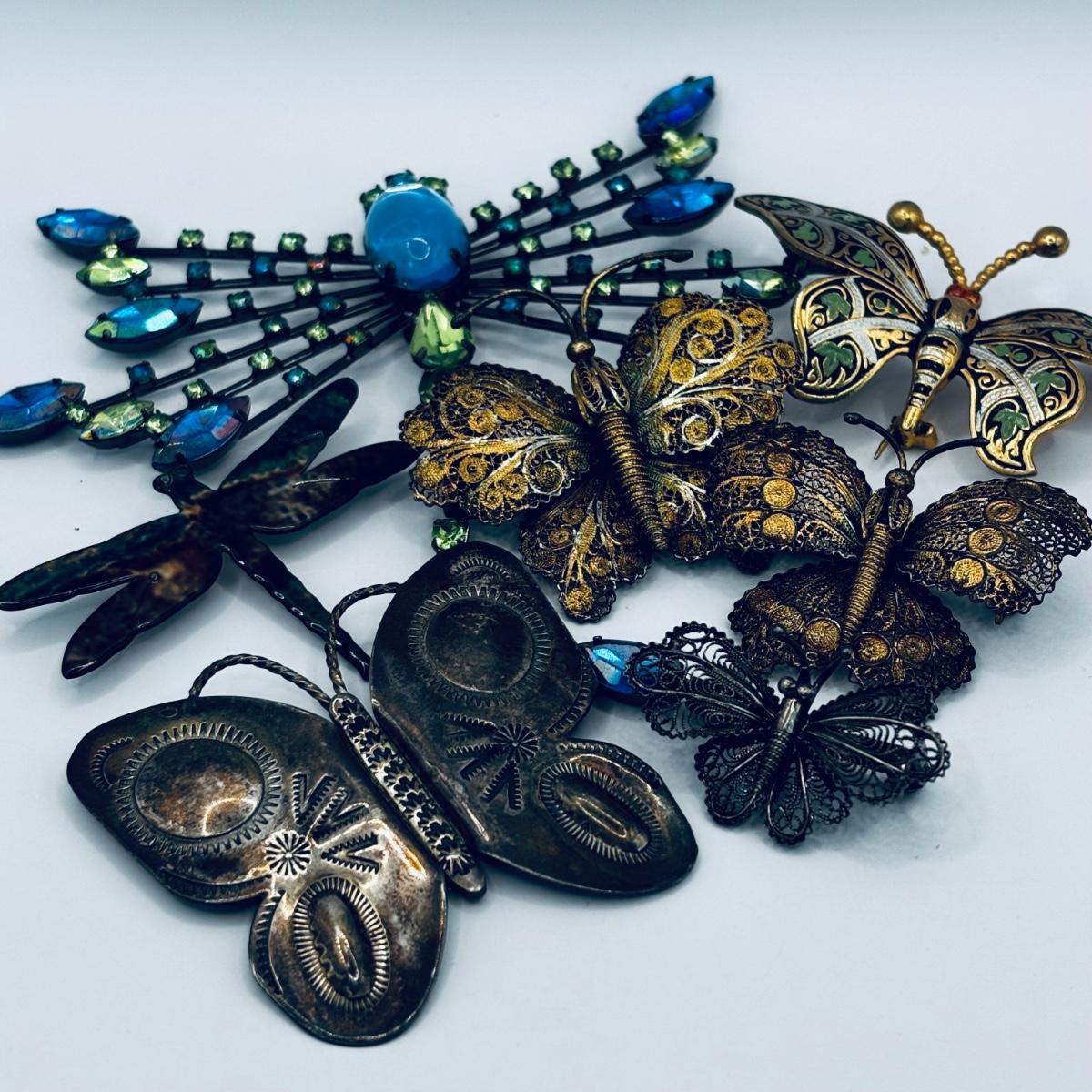 LOT 308: Butterfly & Dragonfly Brooches including a Sterling Silver Butterfly