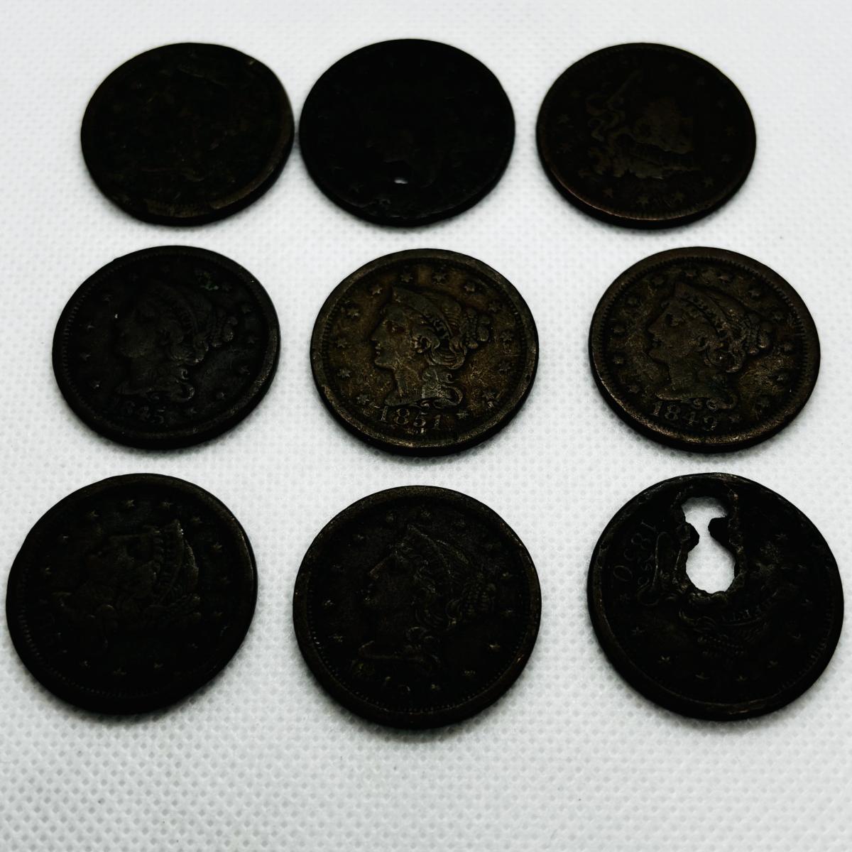 LOT 313: One Cent Coin Collection 1849 - 1851 - 1845 - 1850