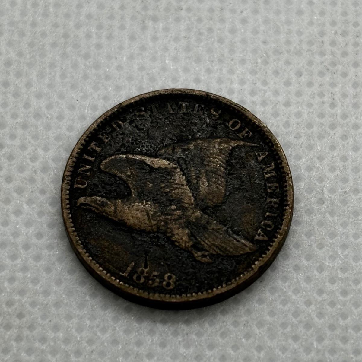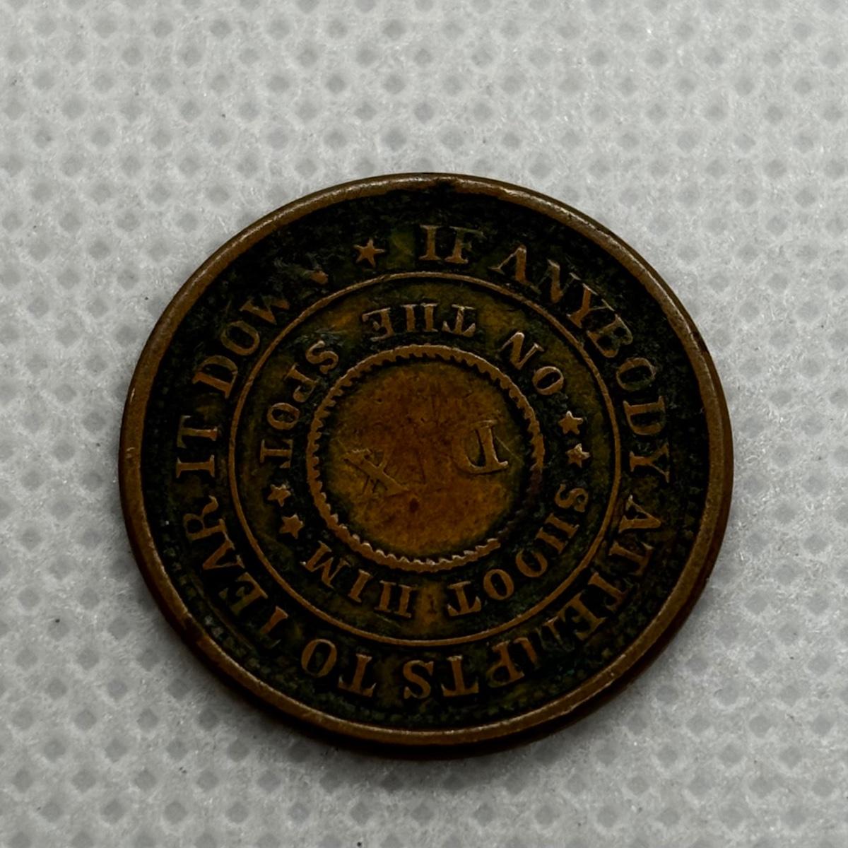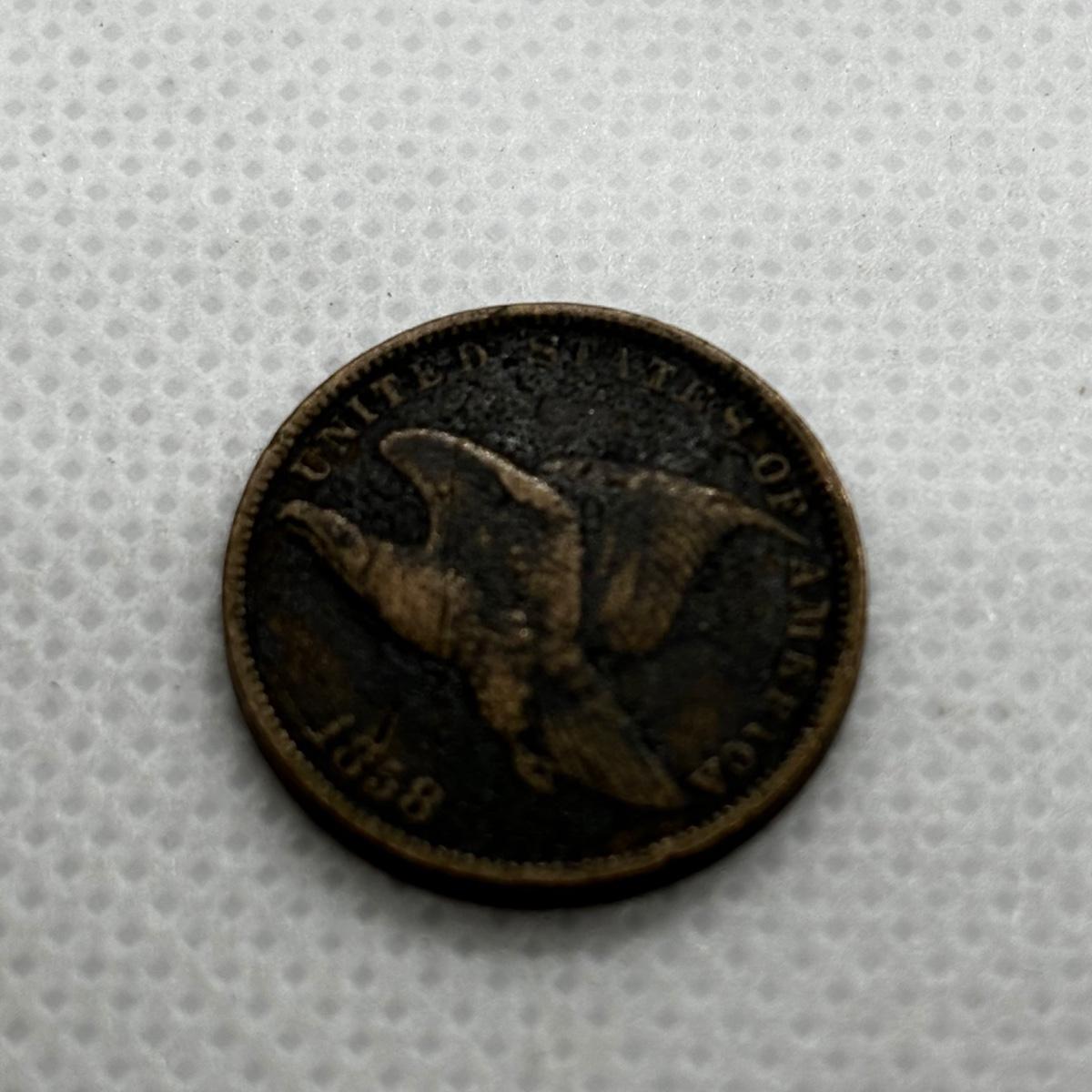 LOT 319: Civil War Token - The Flag of Our Union - DIX Shoot Him on the Spot 1863, Flying Eagle Large One Cent 1858