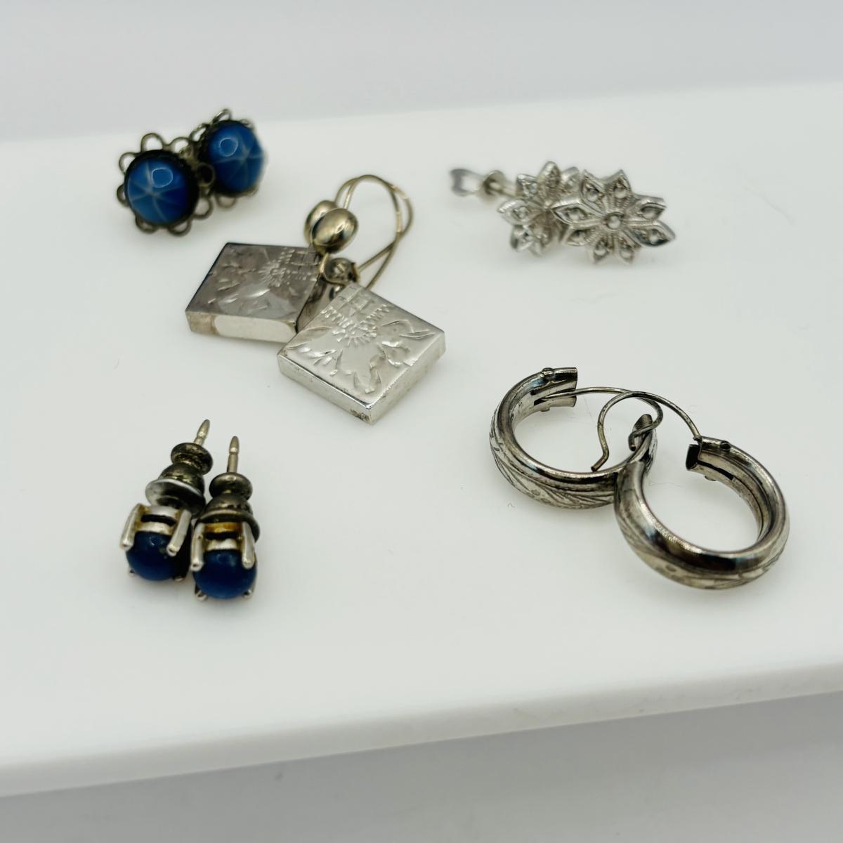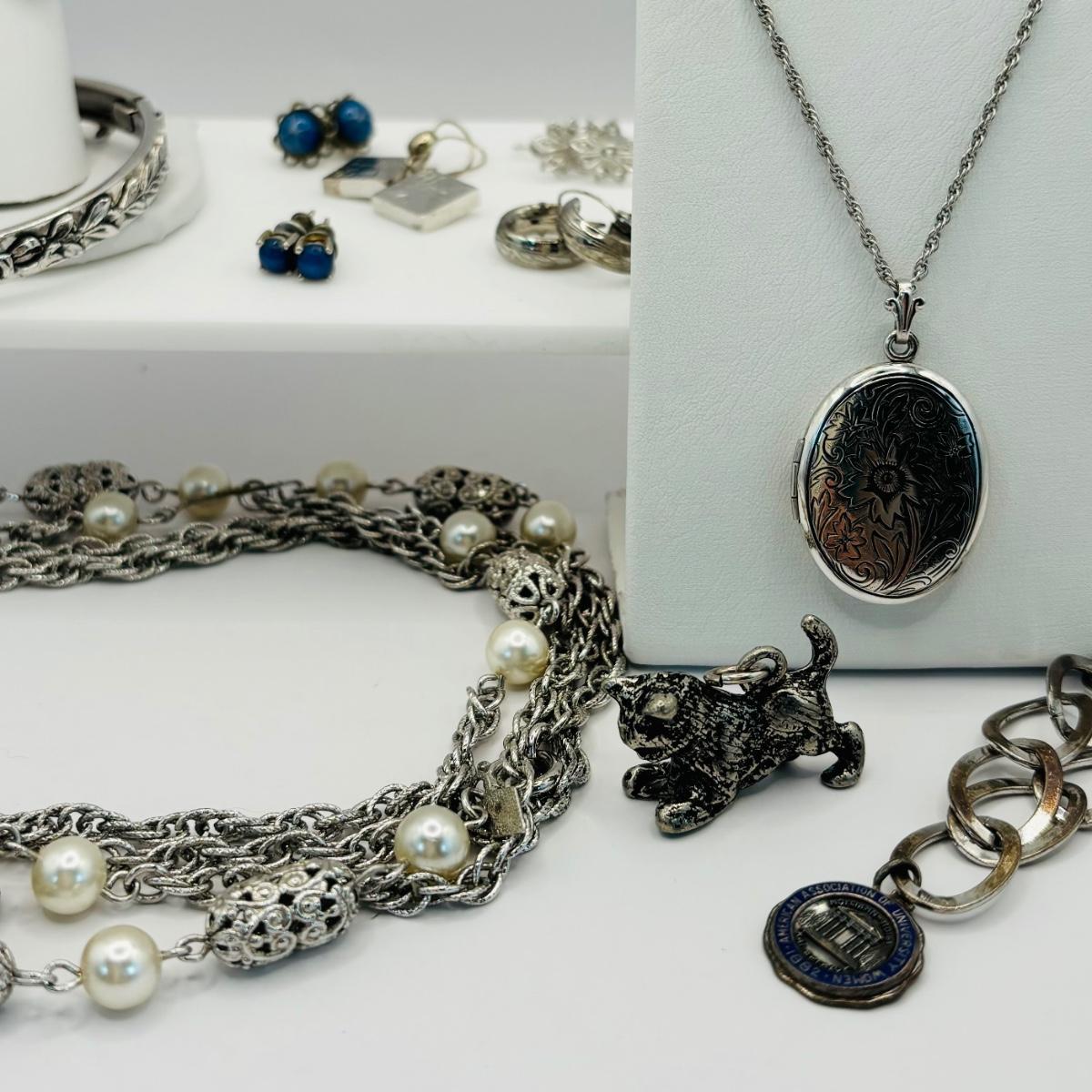LOT 336: Silver Tone Collection: Locket, Sarah Conventry, Blue Star Sapphire Earrings, Bangle & More