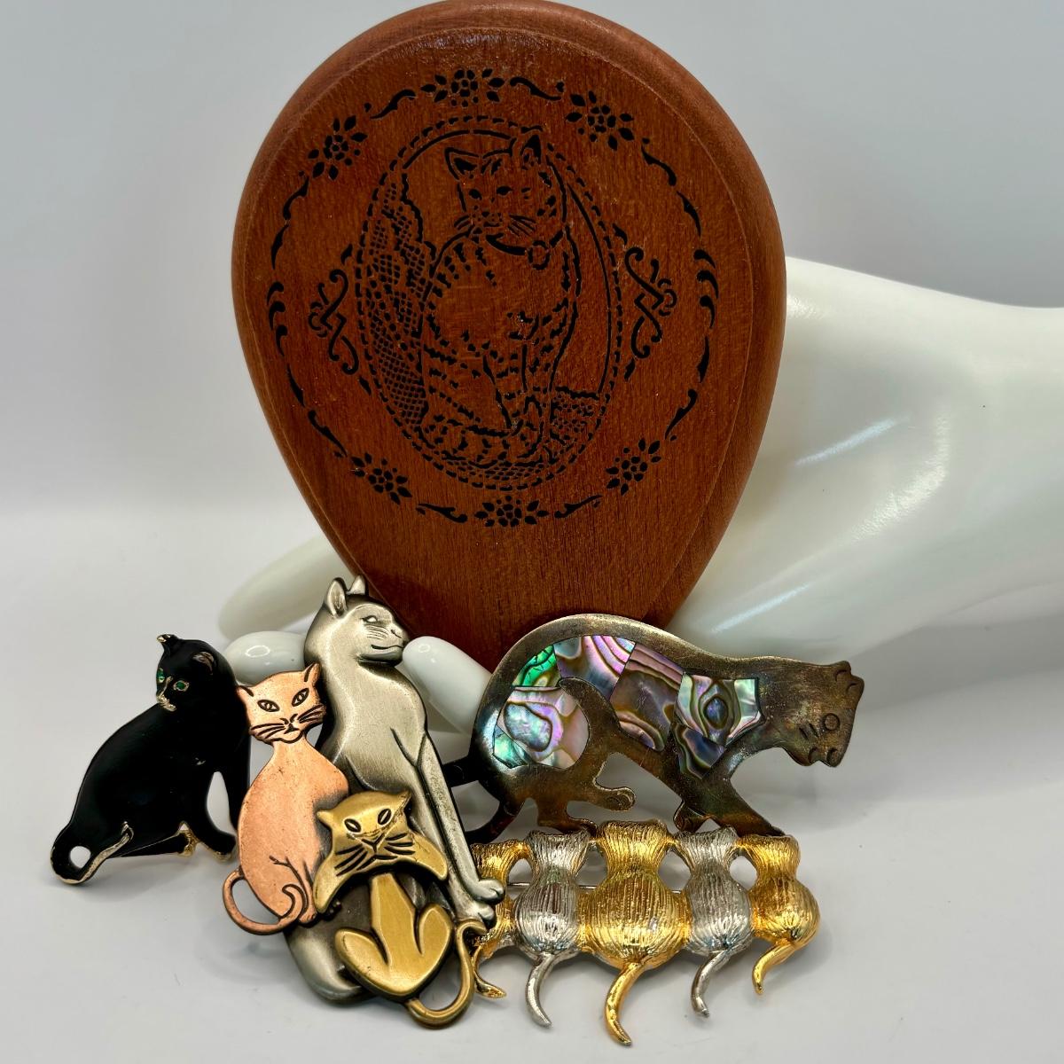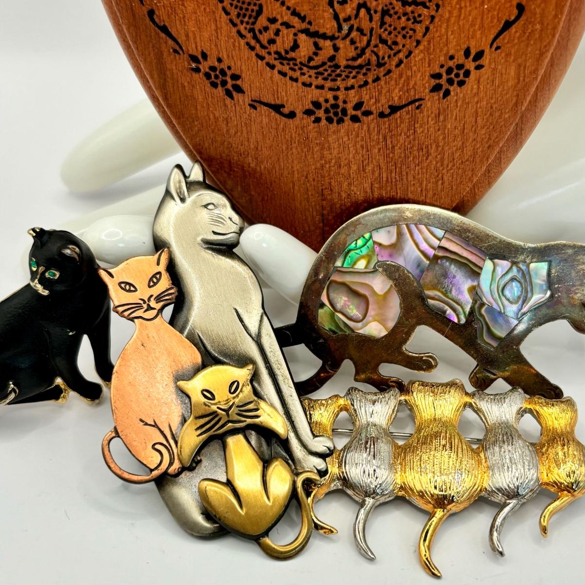 LOT 341: Abalone Cat Brooch, Alpaca Mexico, Two Tone Cat Brooches & More