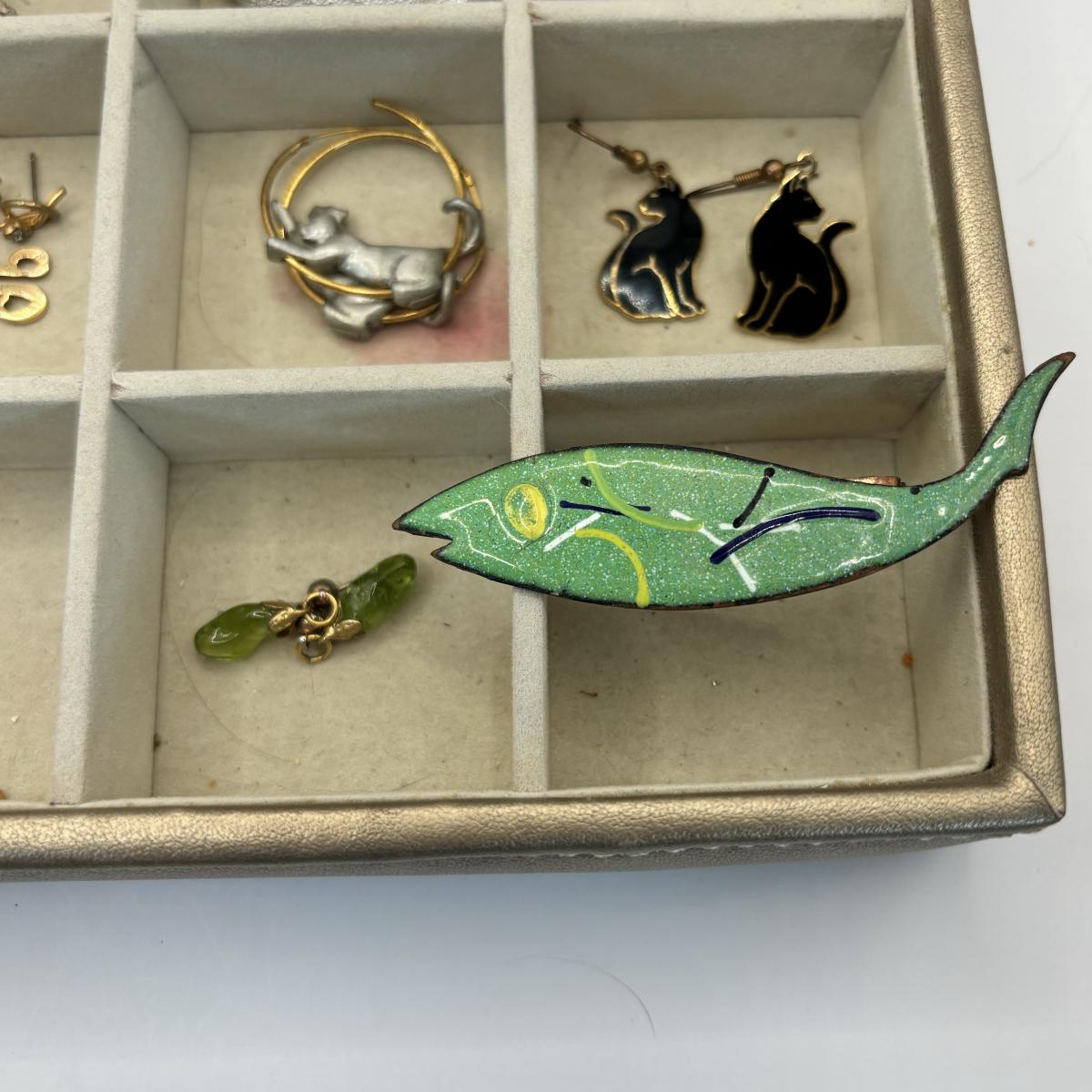 LOT 348: Jewelry & More: Sarah Coventry, Limoge Treasures Vase, Screwback Earrings, Enamel Fish Brooch