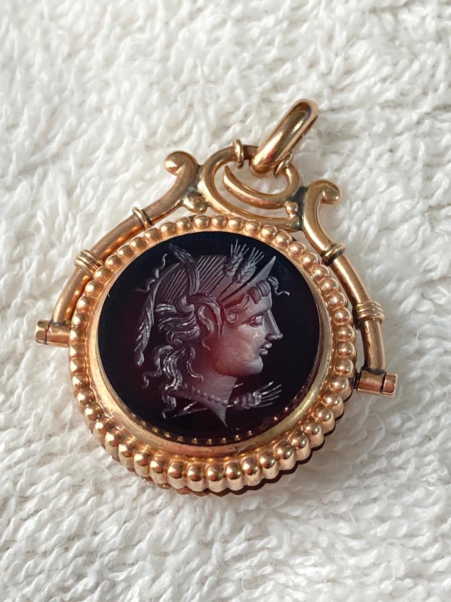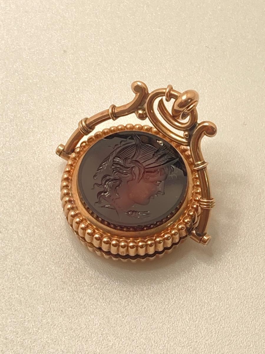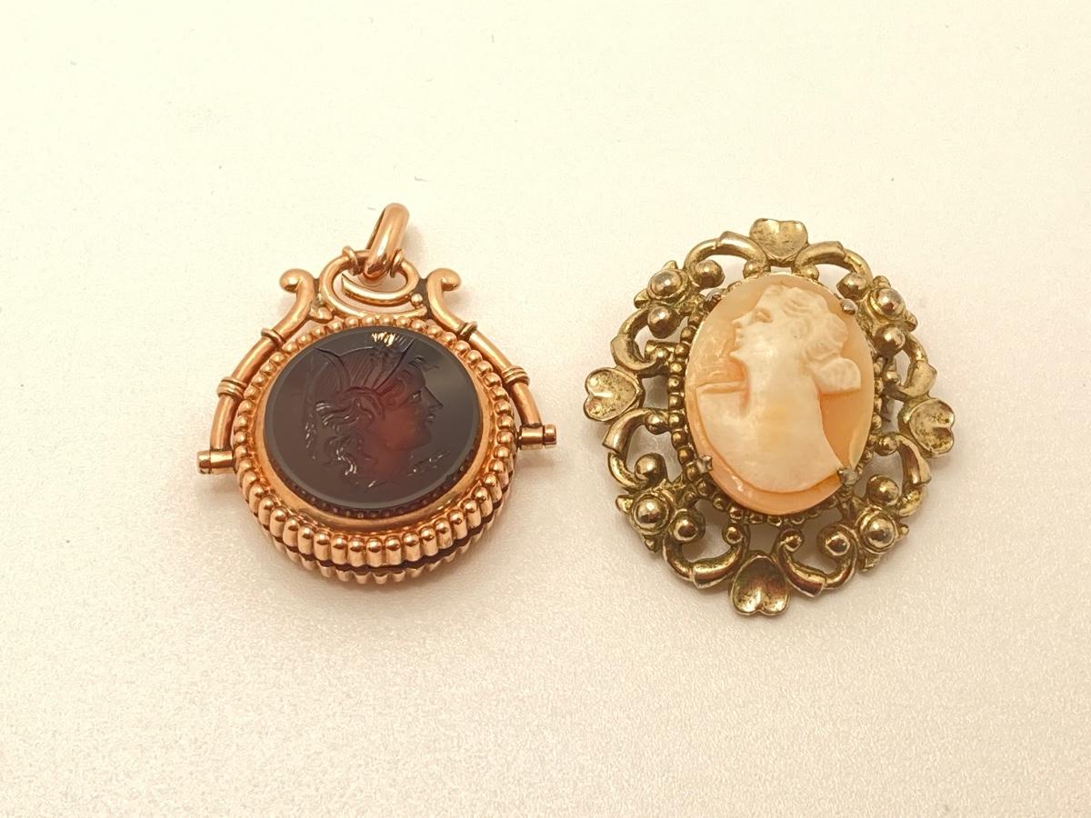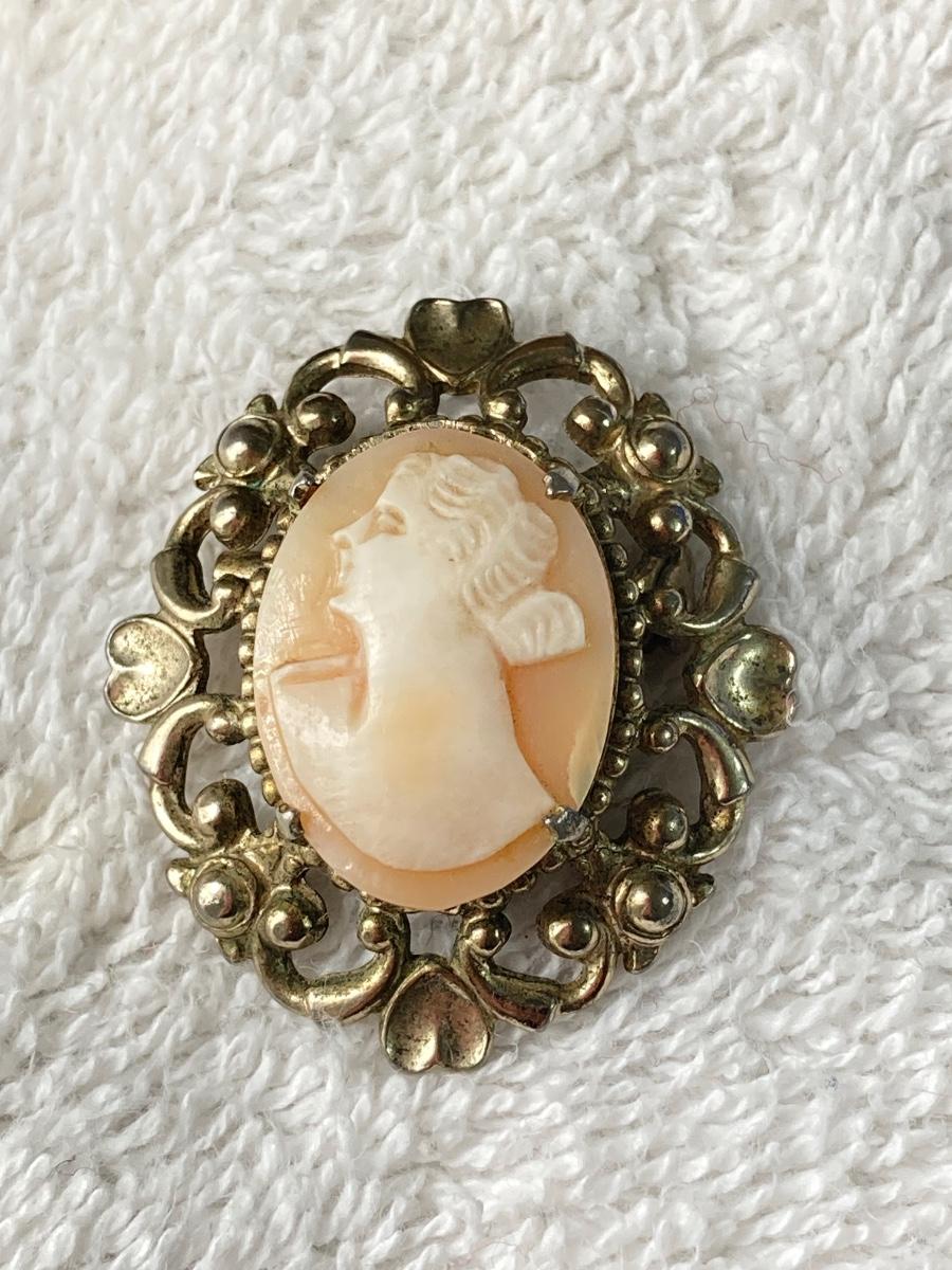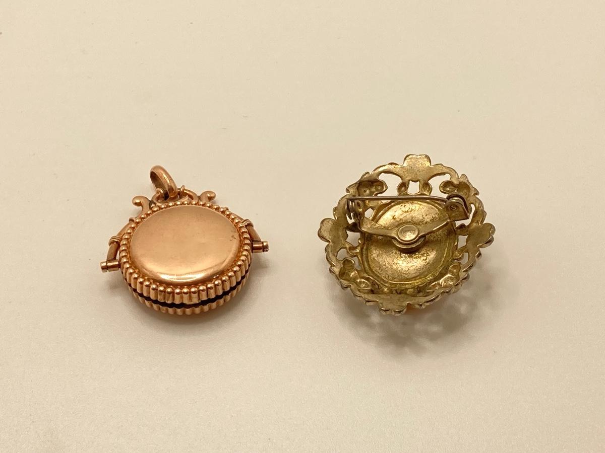 LOT 351: Vintage Coro Cameo Brooch and Rose Gold Tone Carved Locket