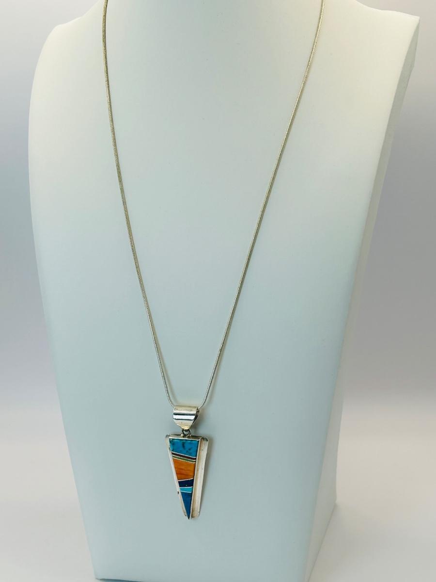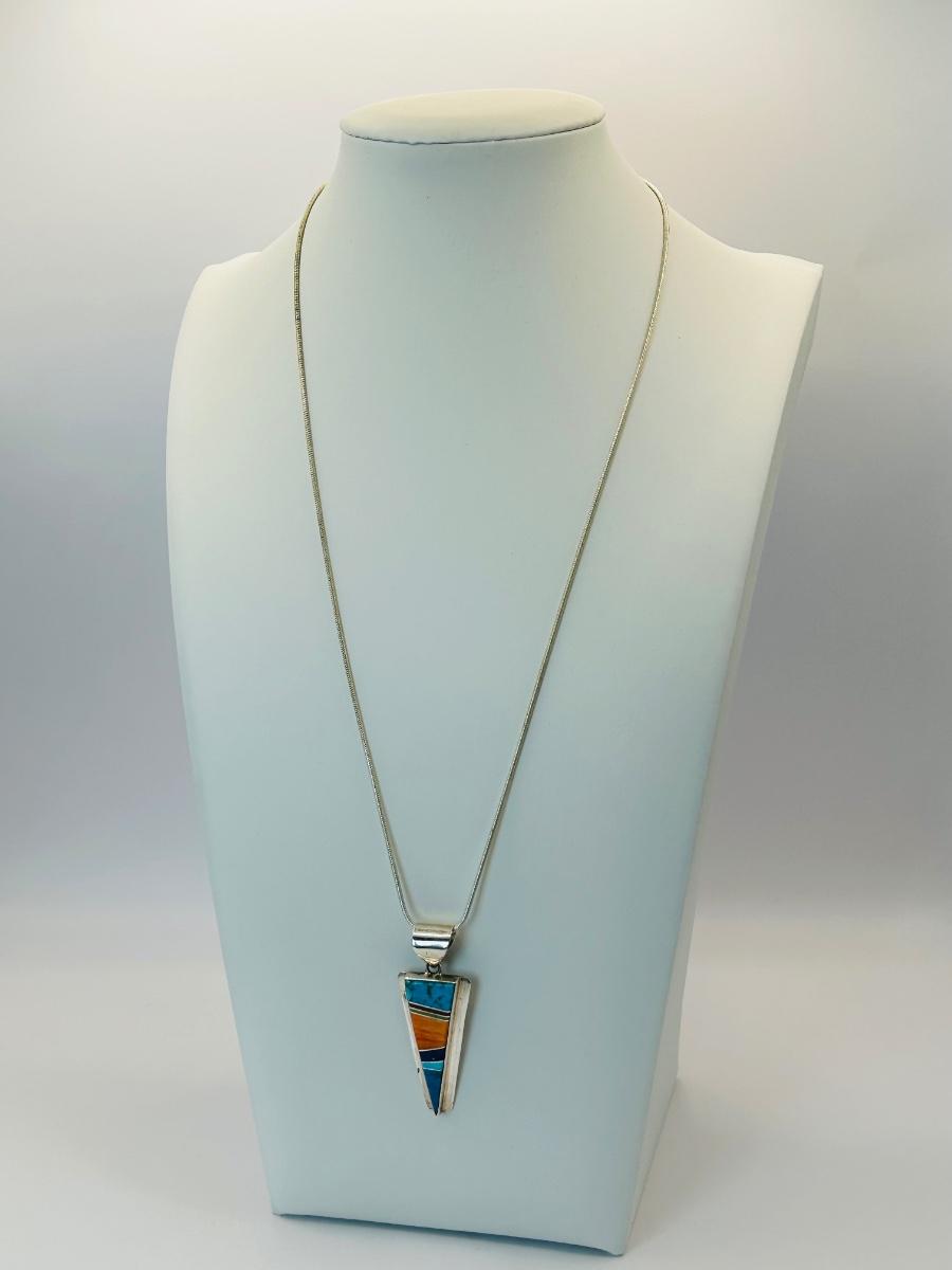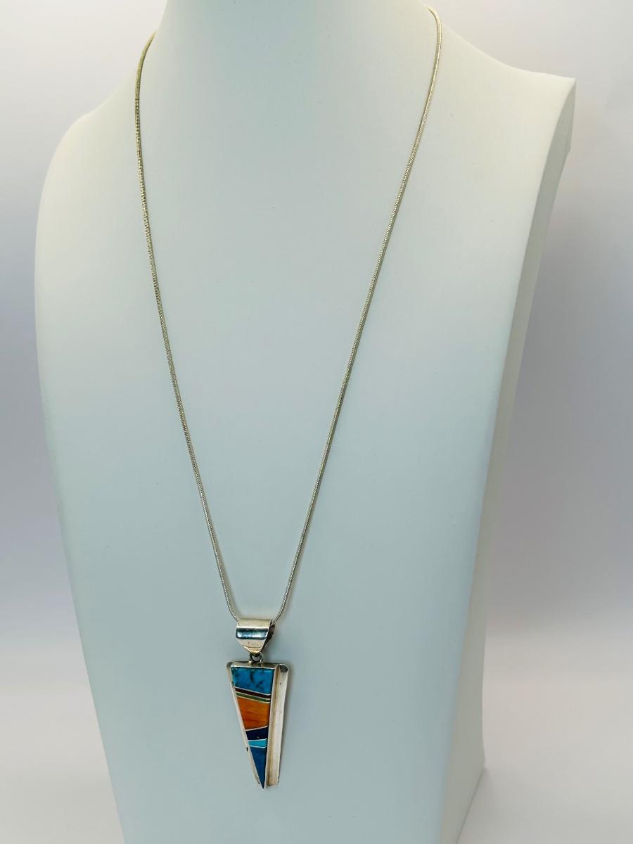 LOT 3: Artist Wayne Muskett Navajo Style Multicolor Inlay Pendant 20" Sterling Chain Necklace