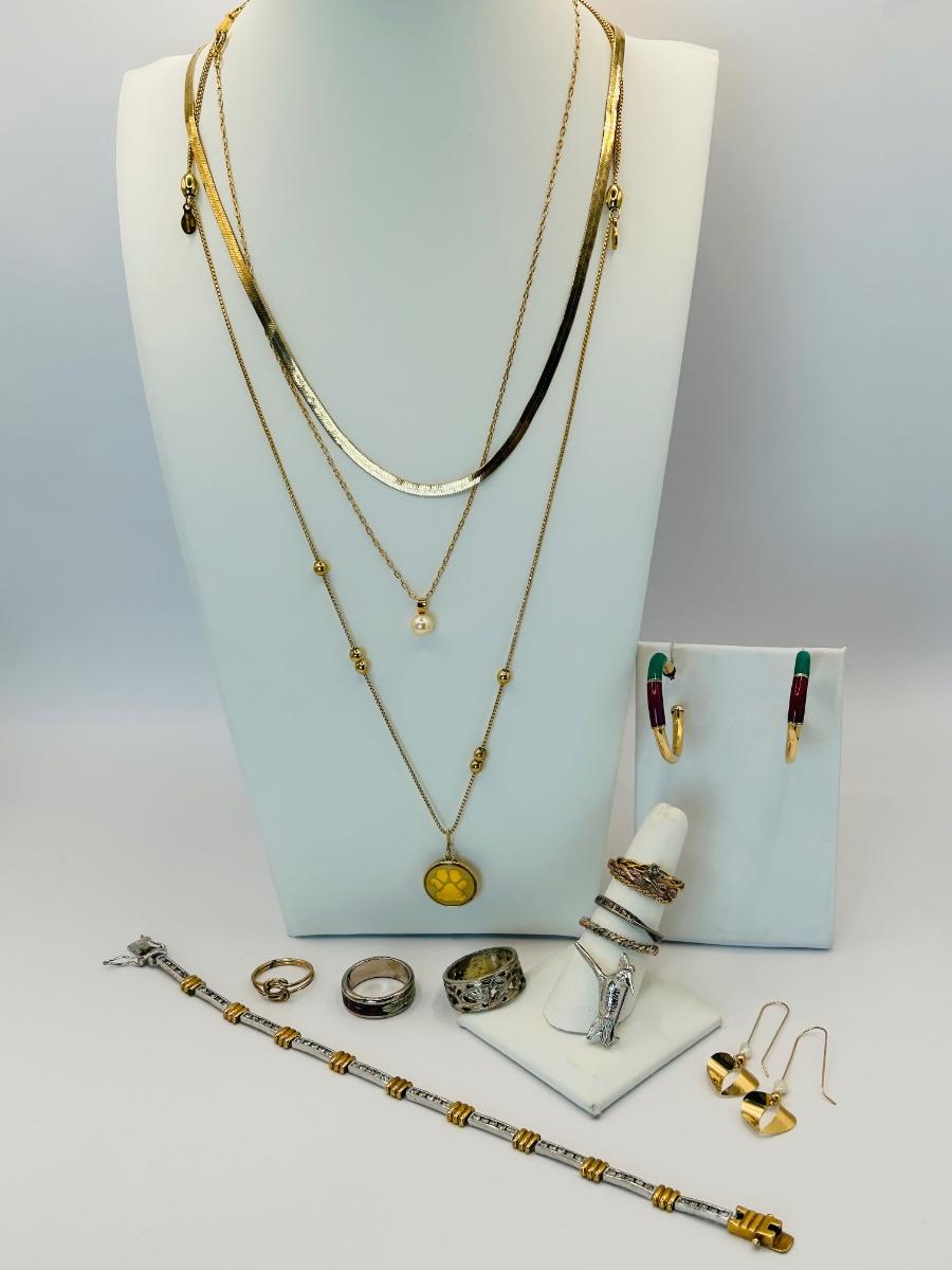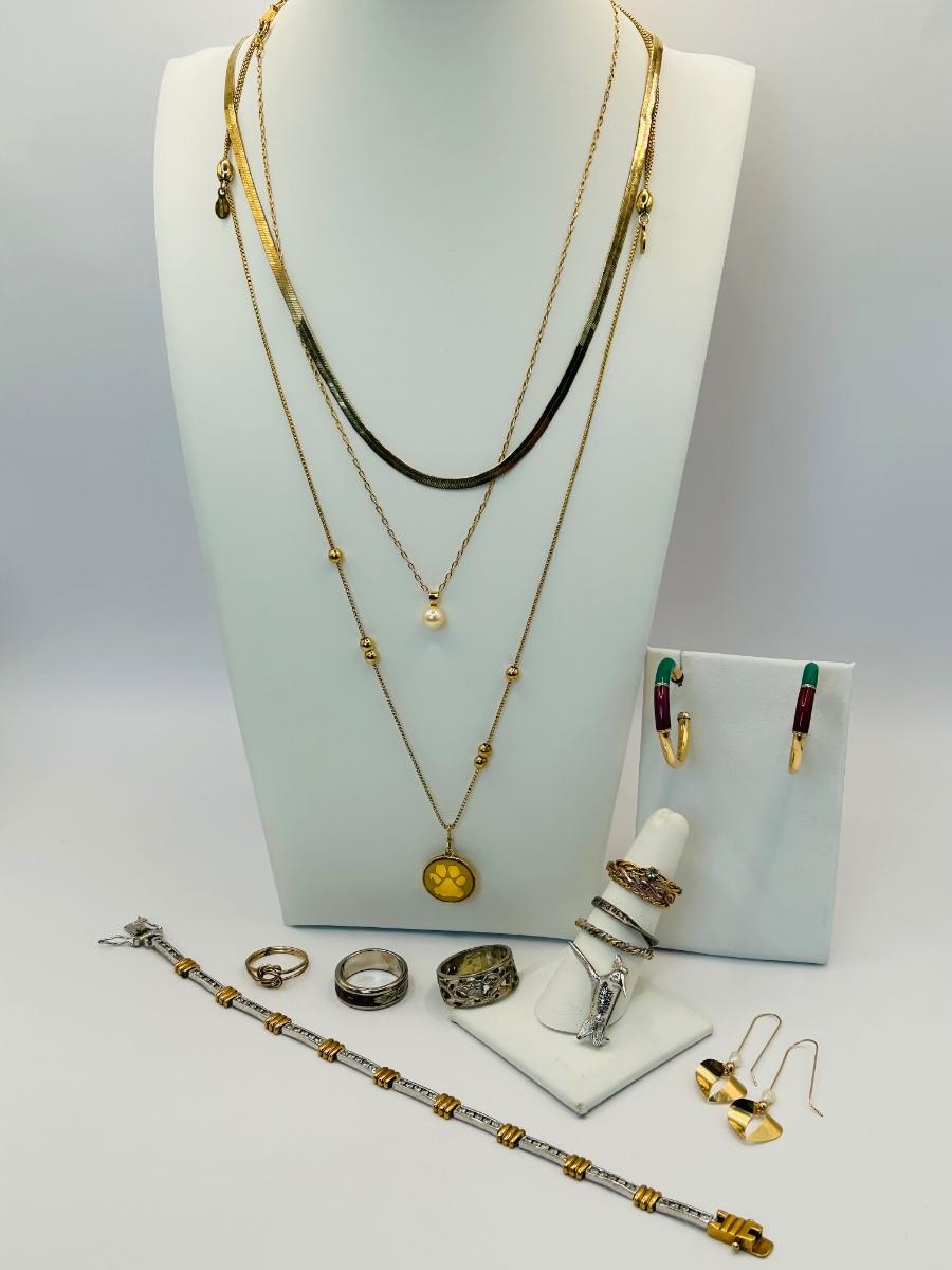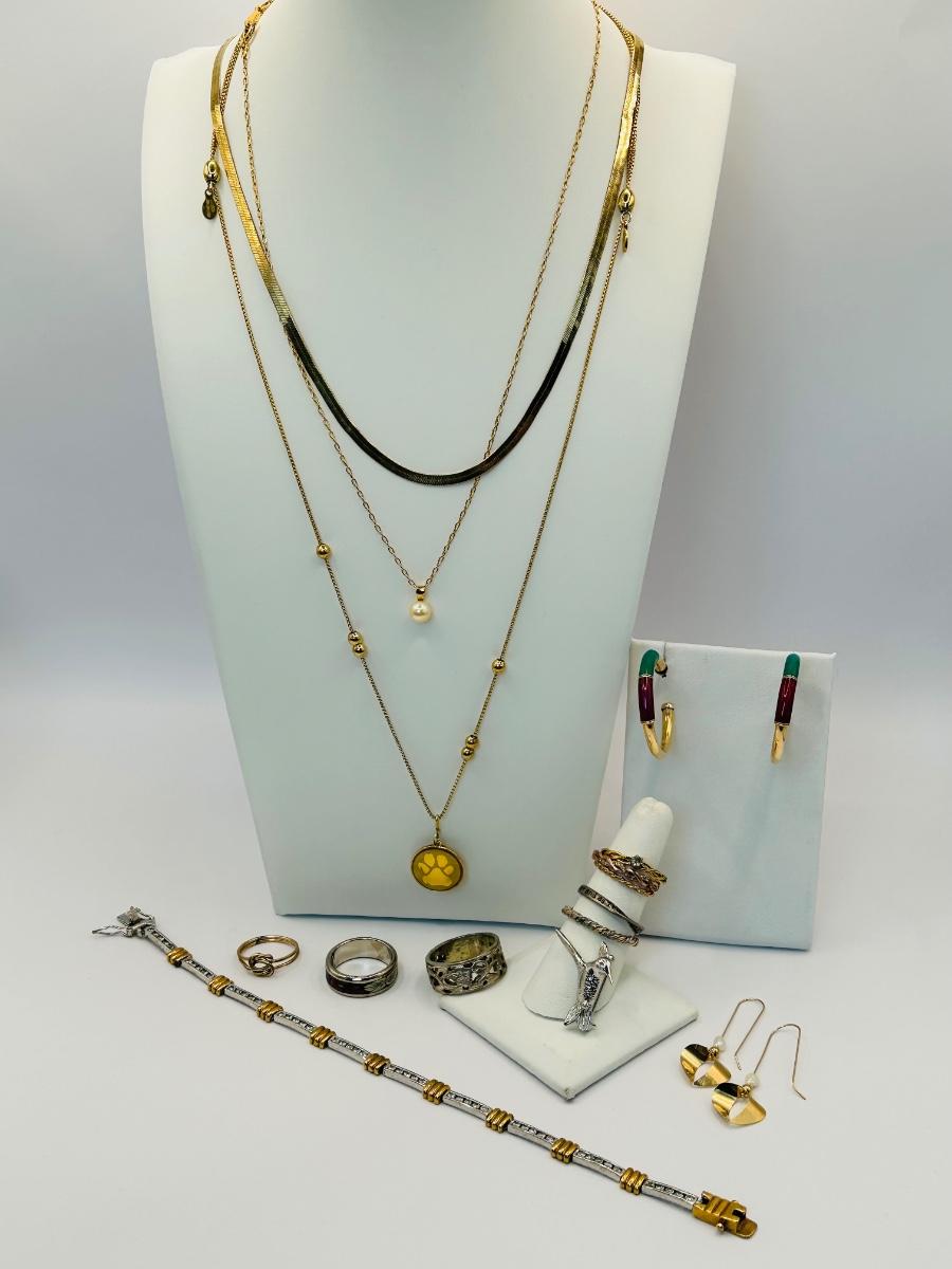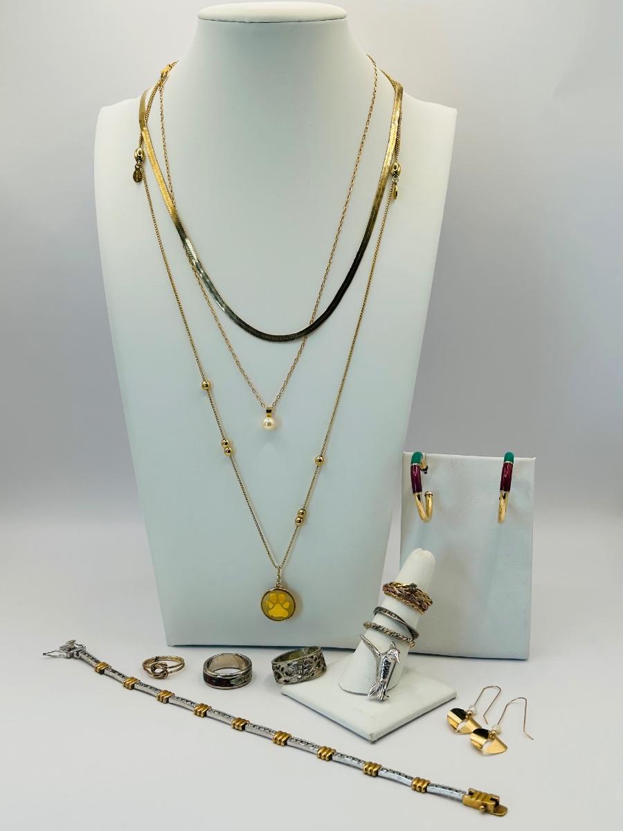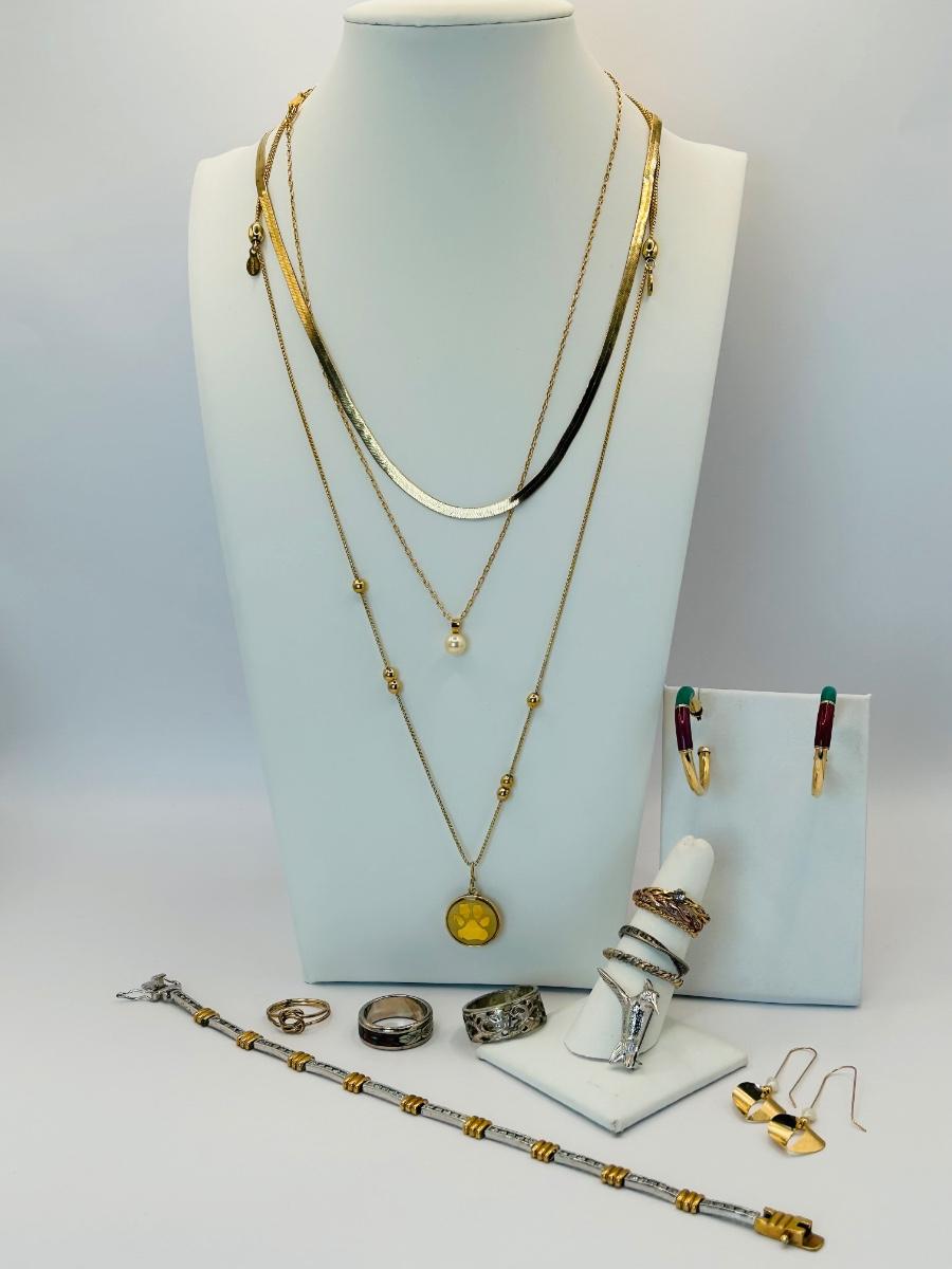 LOT 8: Gold Tone Fashion Jewlery - Necklaces, Rings, Earrings & Bracelets