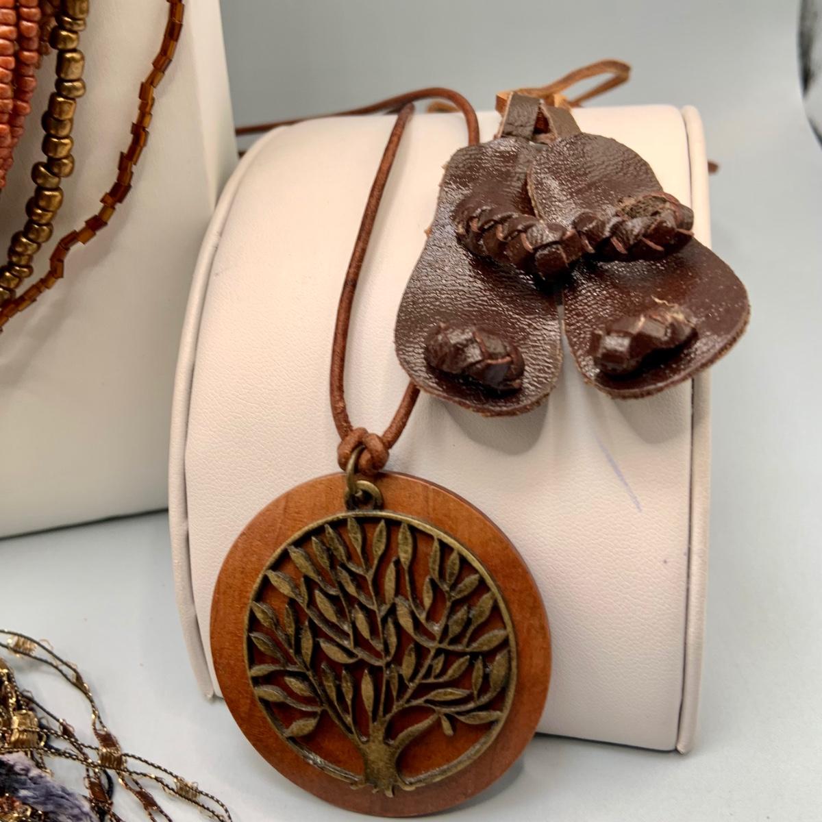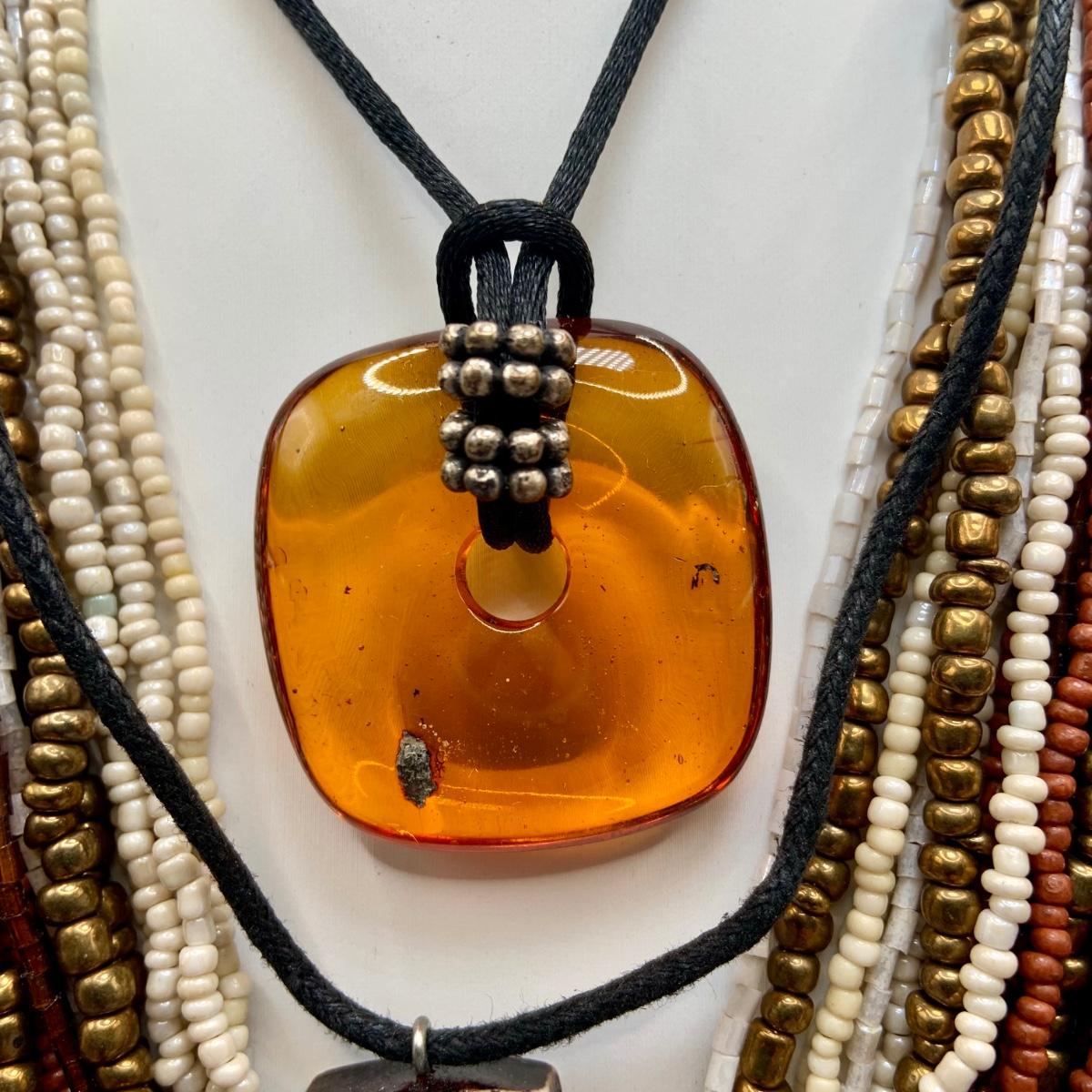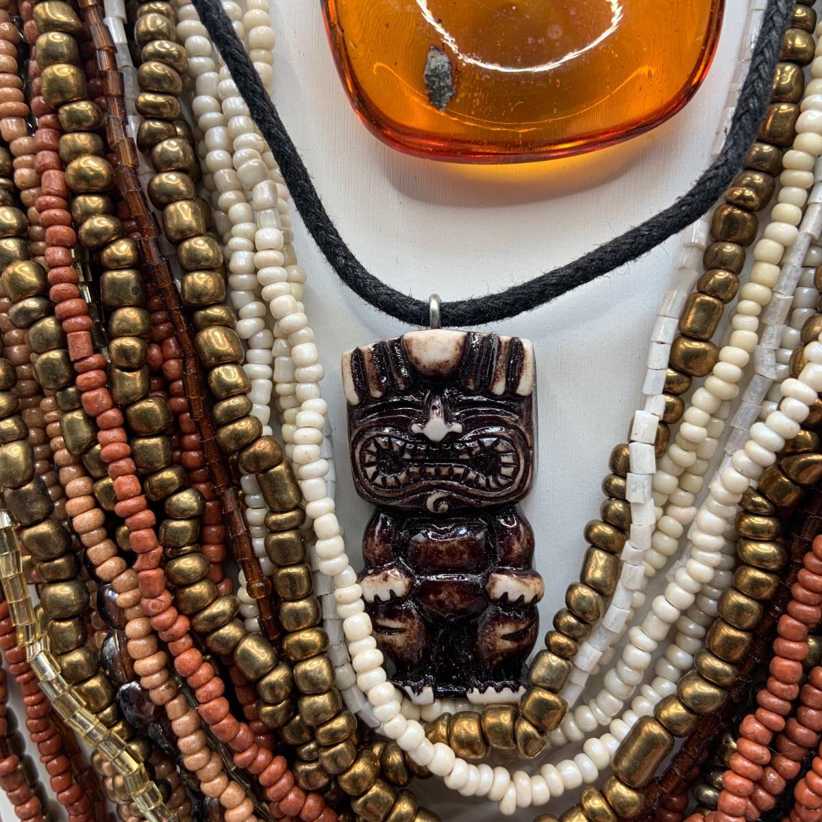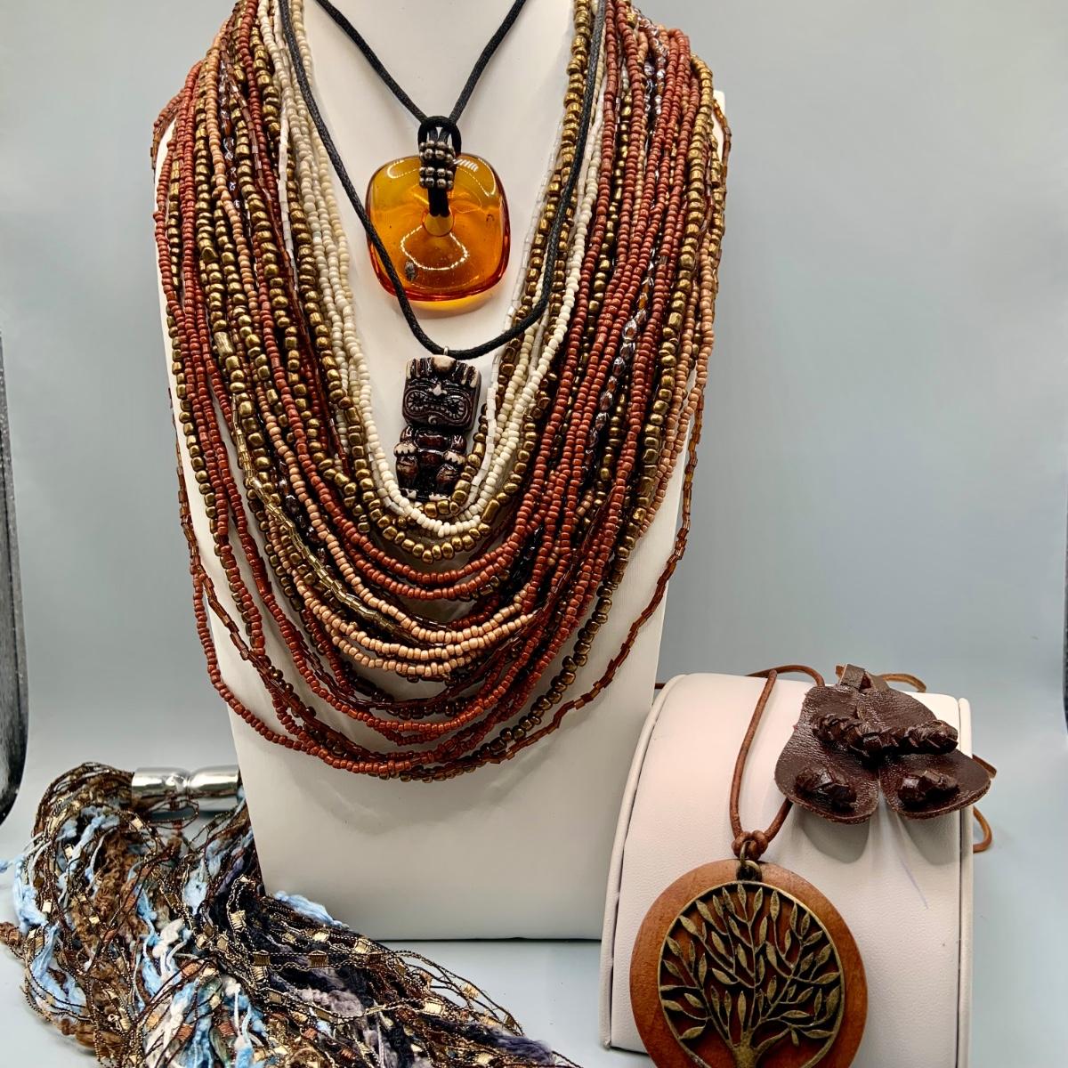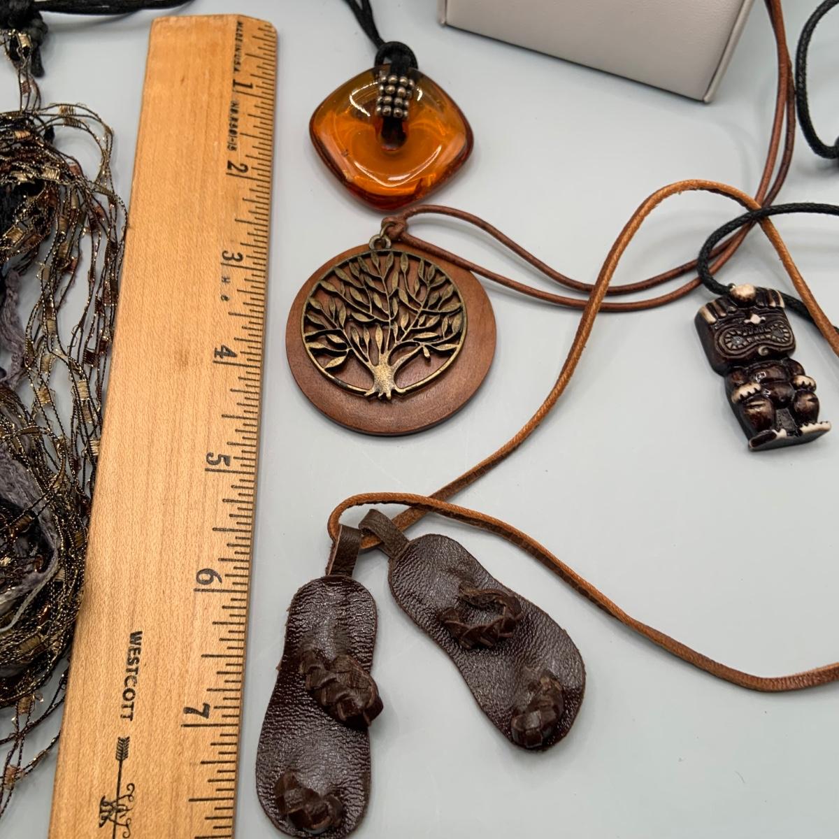 LOT:40: Boho Inspired Collection of Earthtone Necklaces and Pendants
