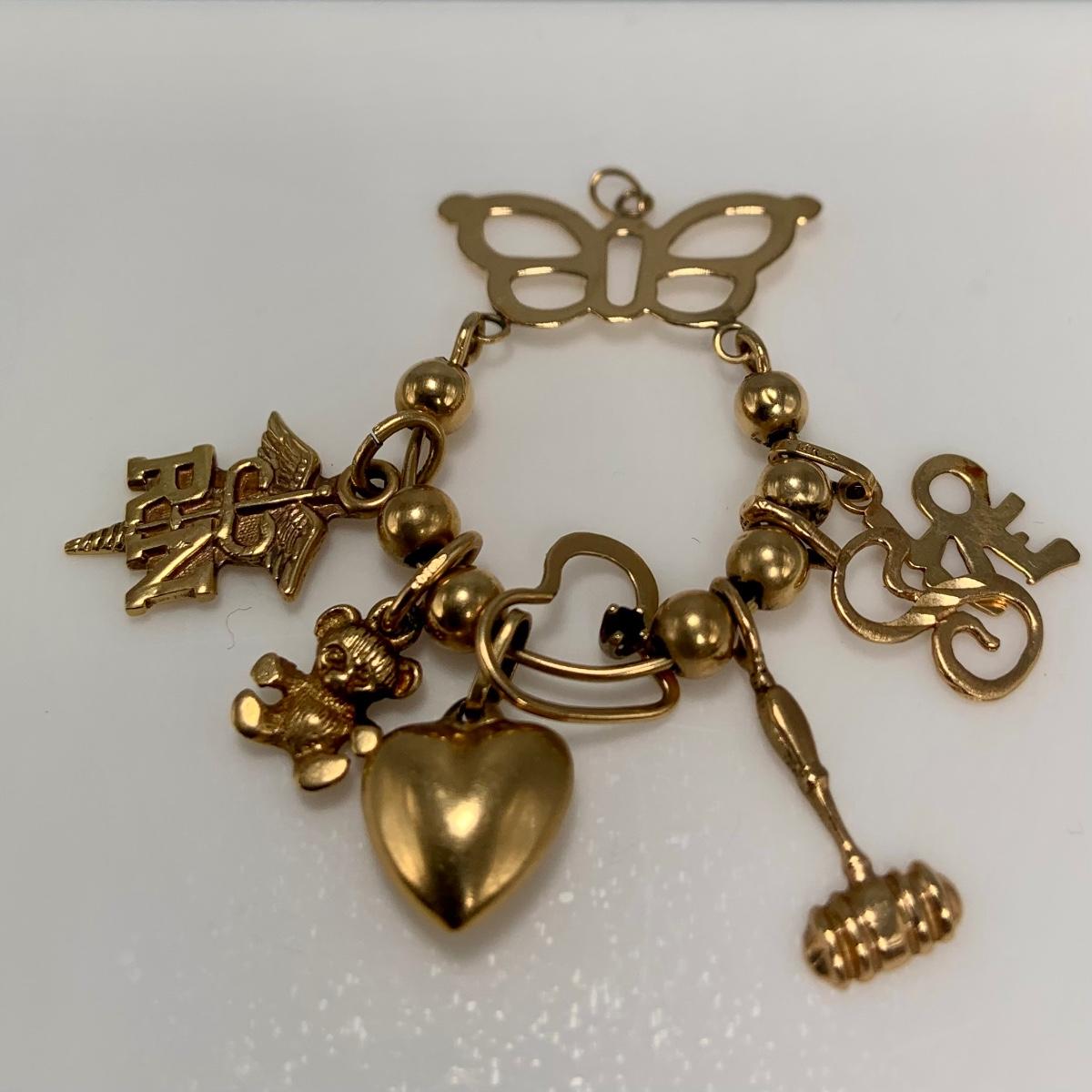 LOT:47: 14k Gold Butterfly Charm Holder with Charms - 4.2g