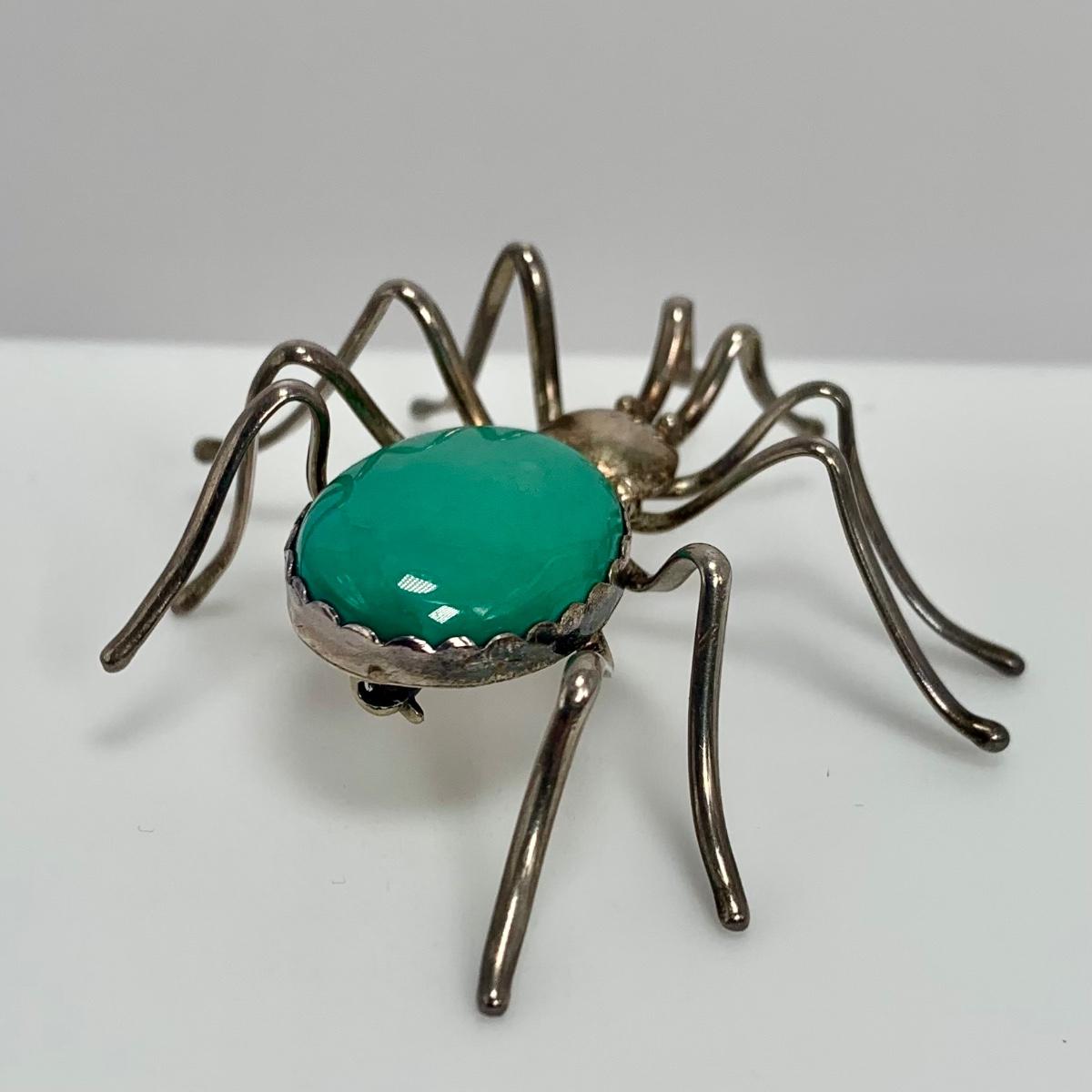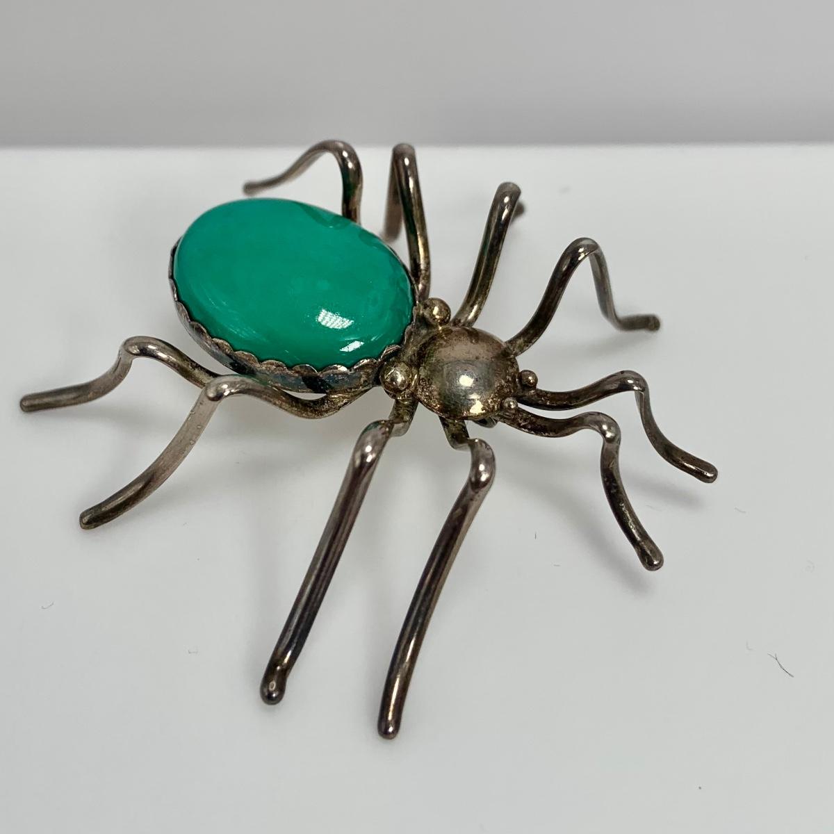 LOT:51: Vintage Turquoise Navajo Spider Brooch Signed E Spencer Sterling 2.5" long