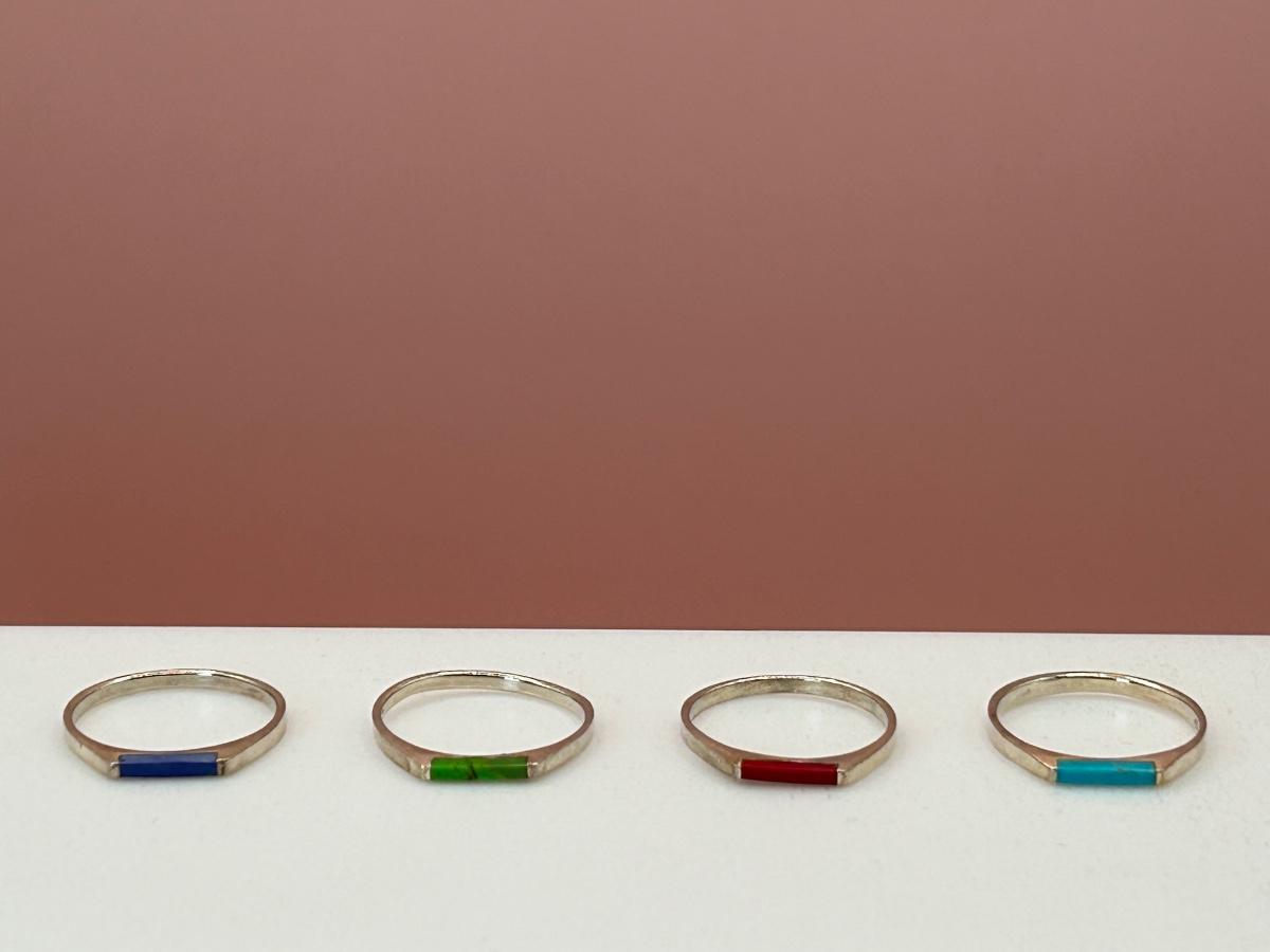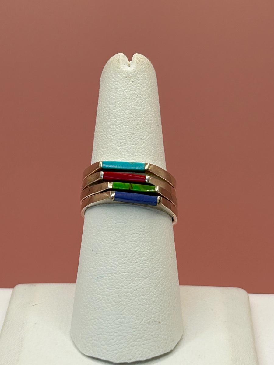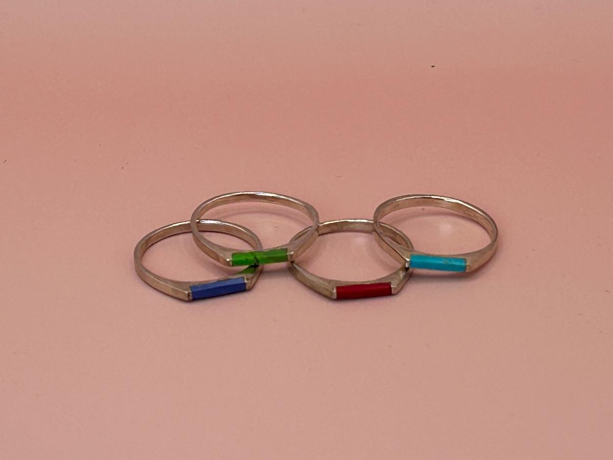 LOT 67: 4 Stackable Sterling Silver Rings with Colored Gemstones Size 8