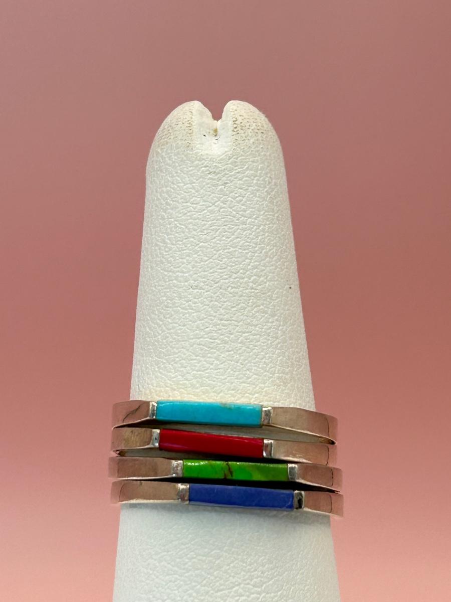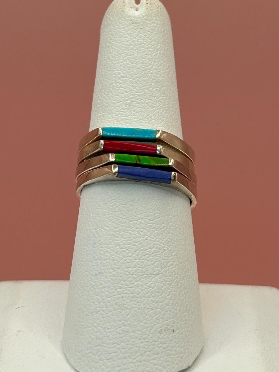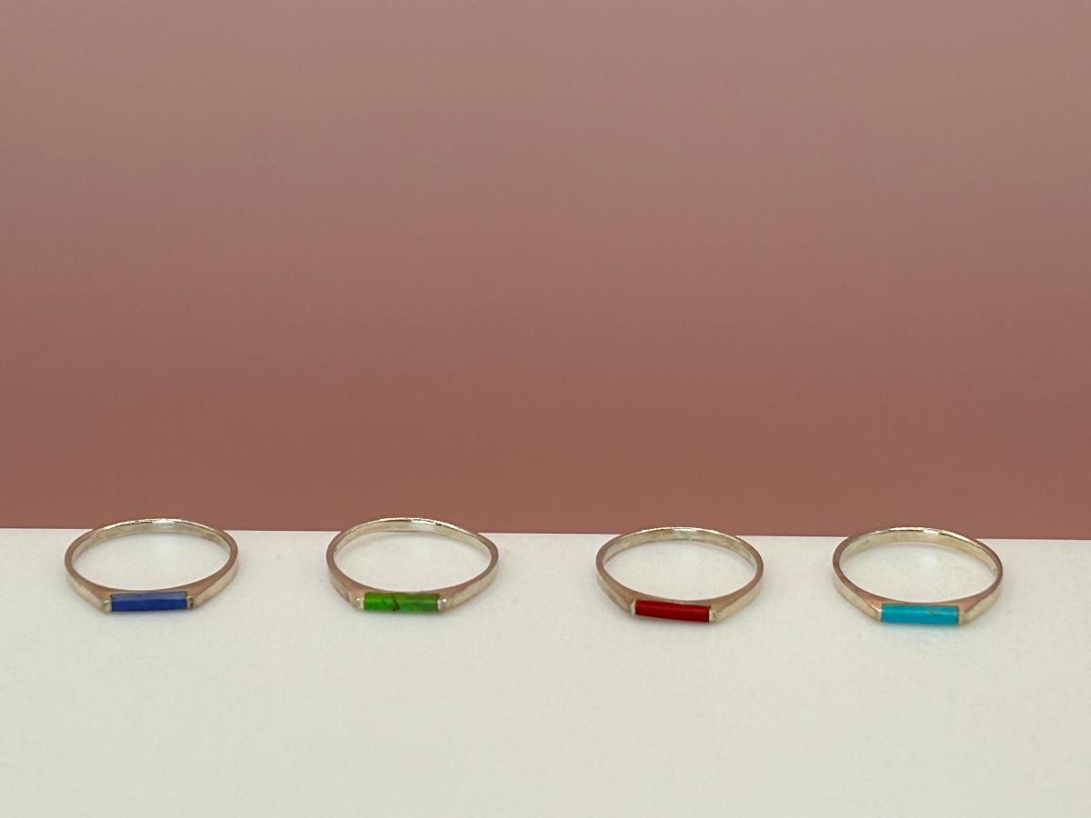 LOT 67: 4 Stackable Sterling Silver Rings with Colored Gemstones Size 8