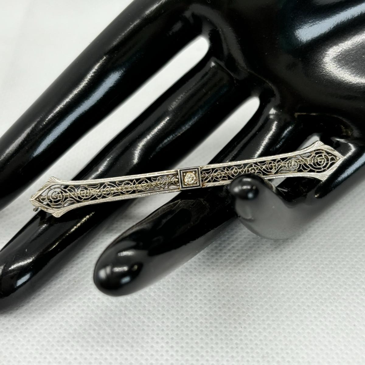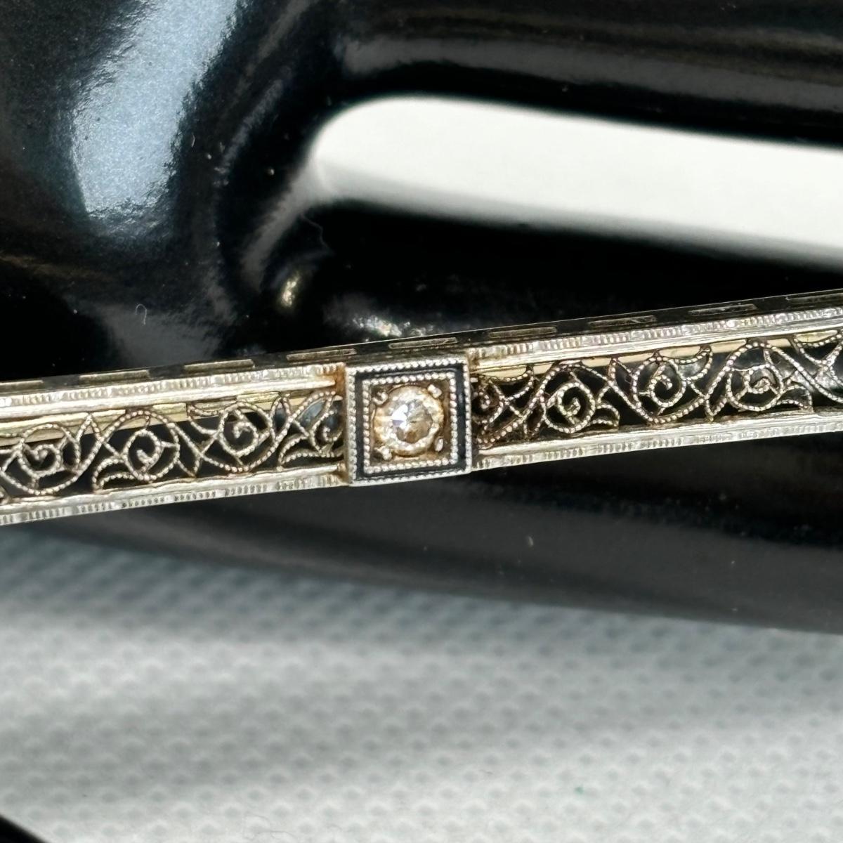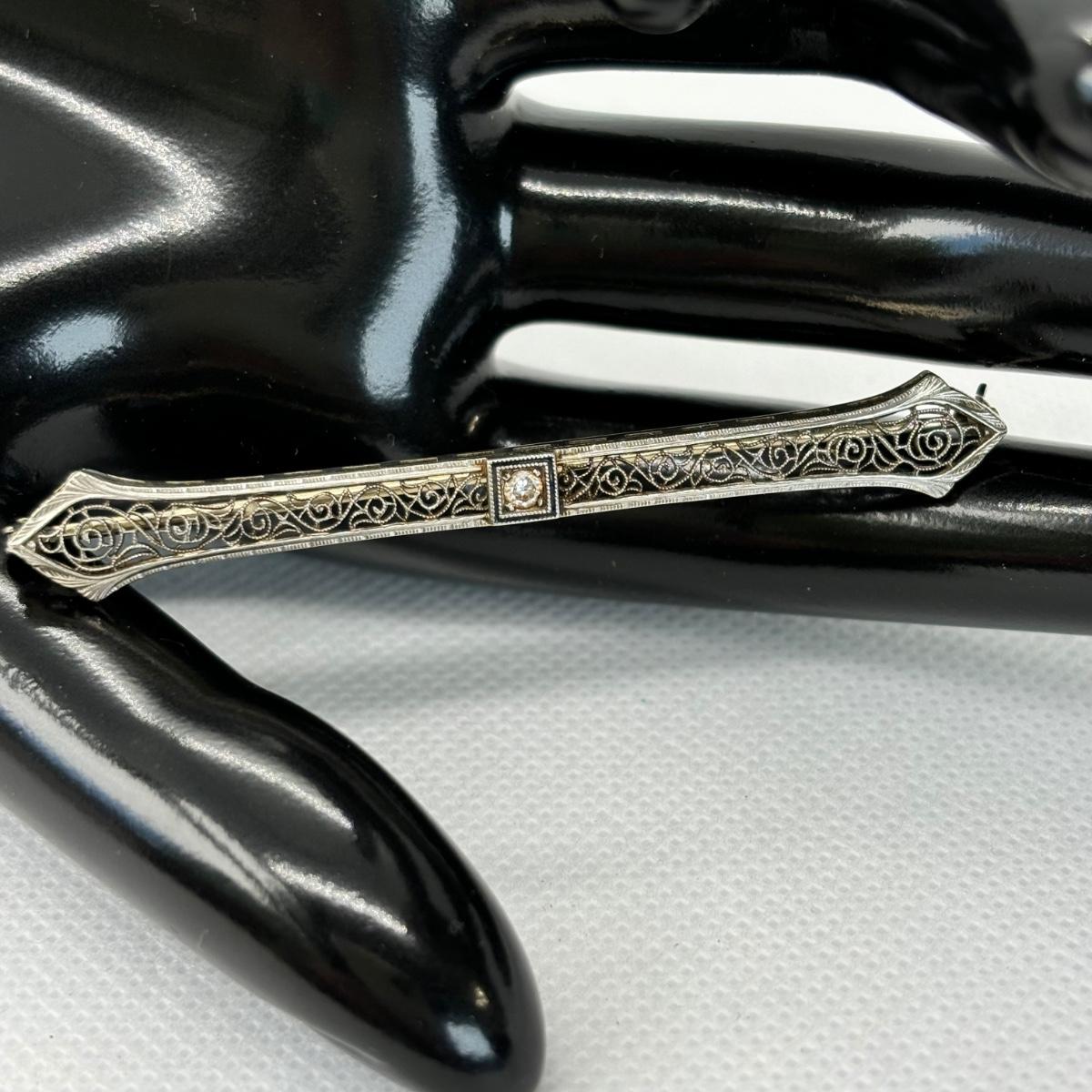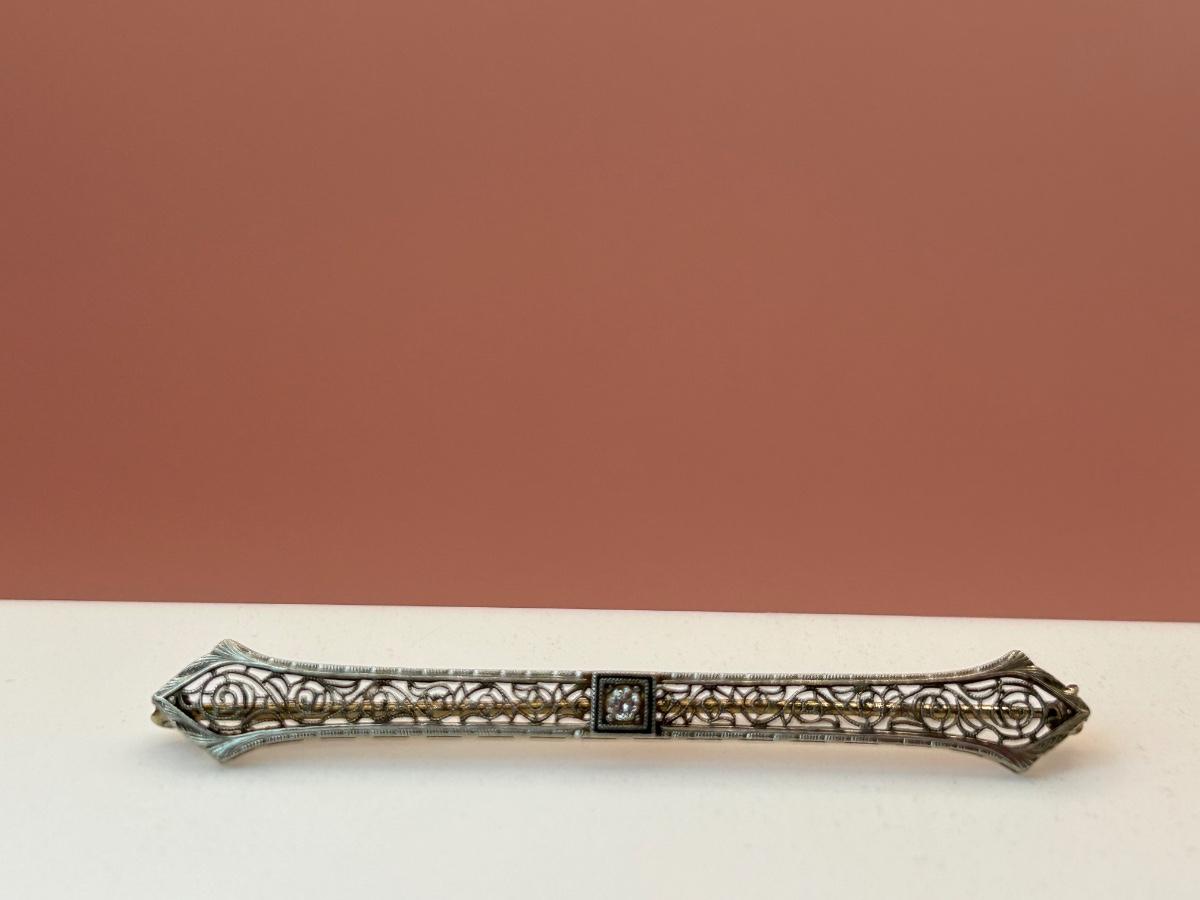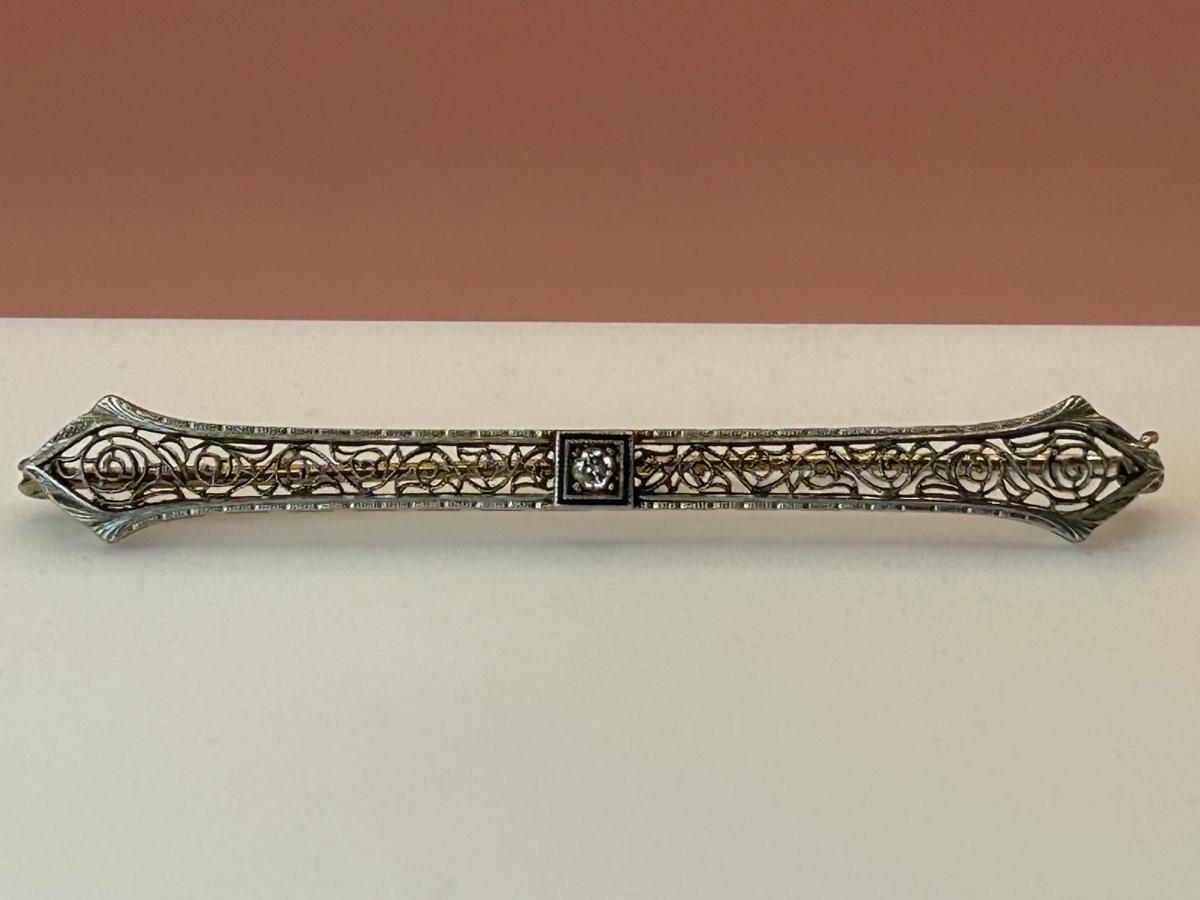 LOT 73: Antique 14K Filagree & Diamond Bar Pin
