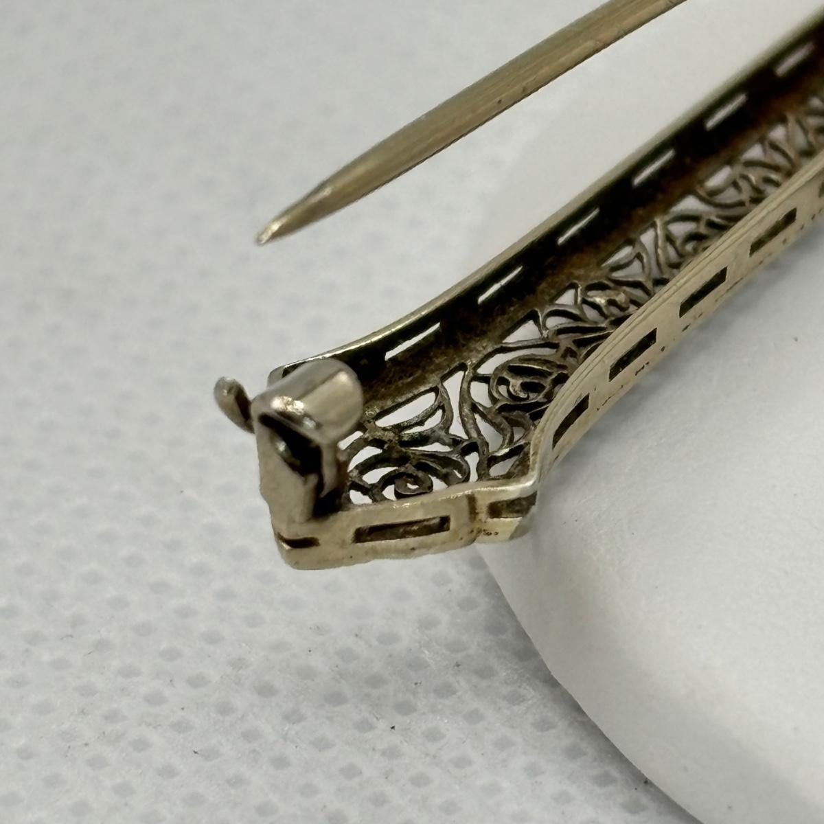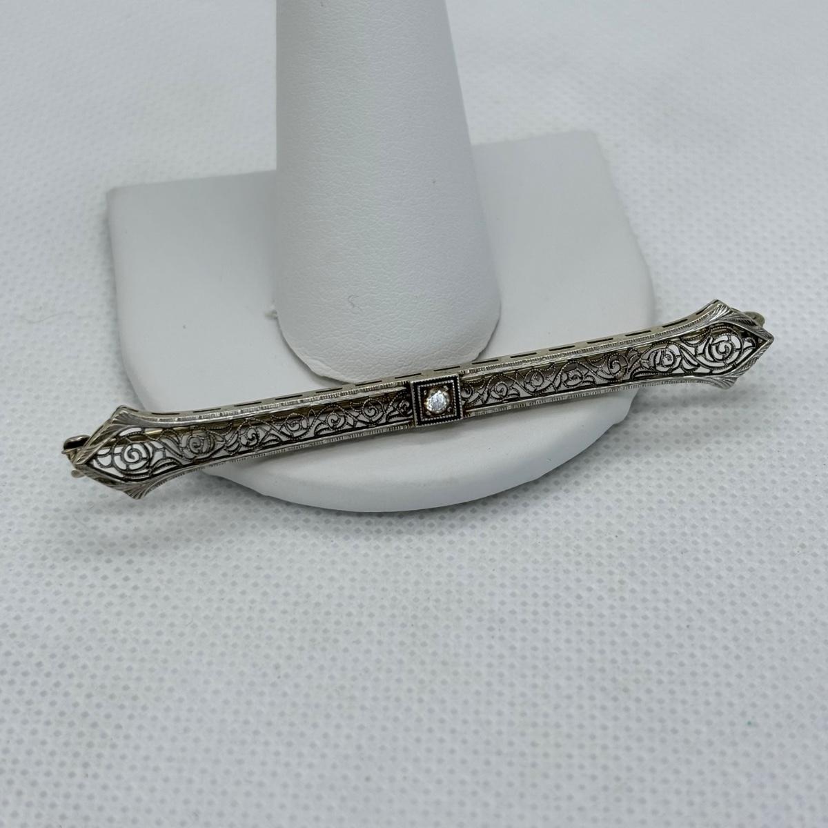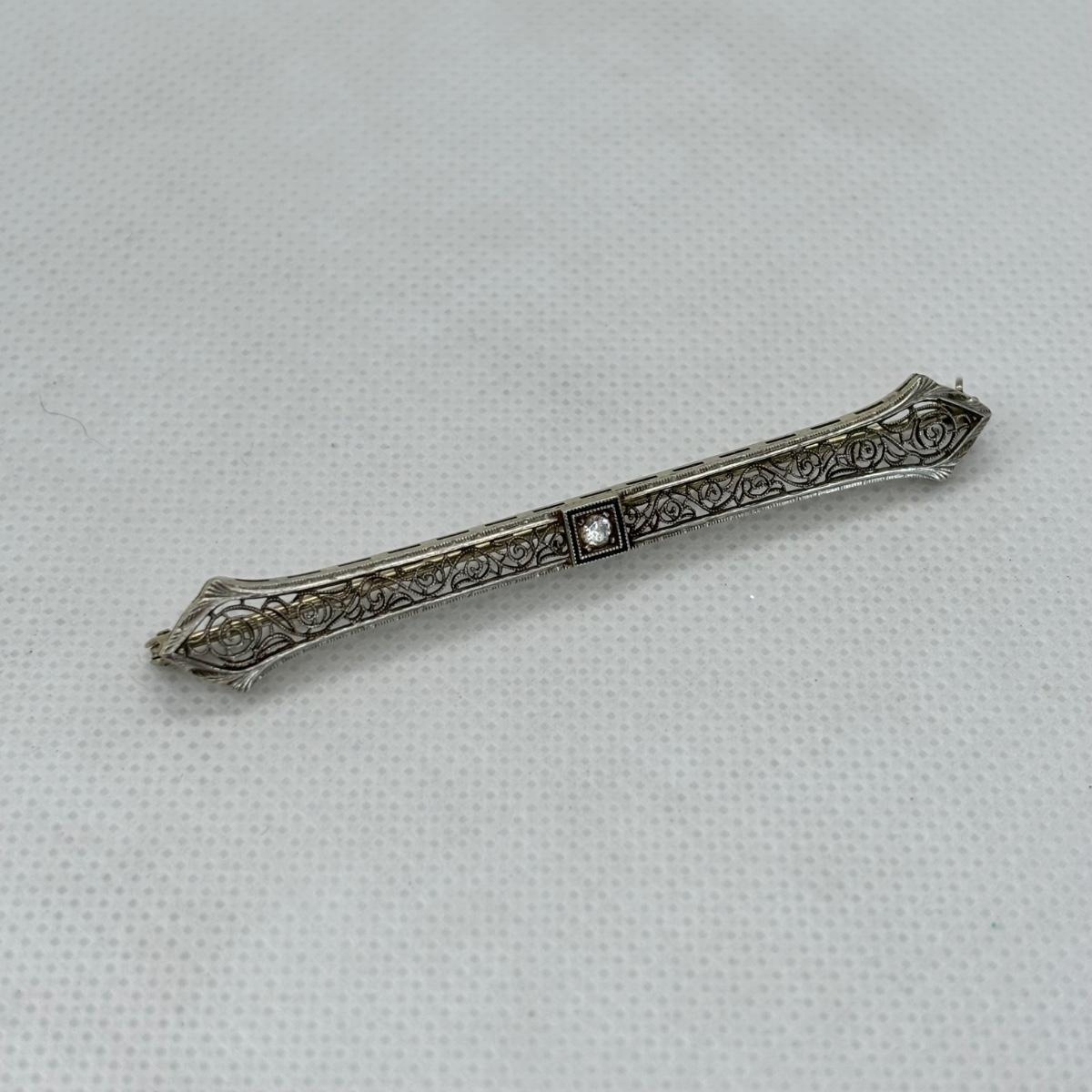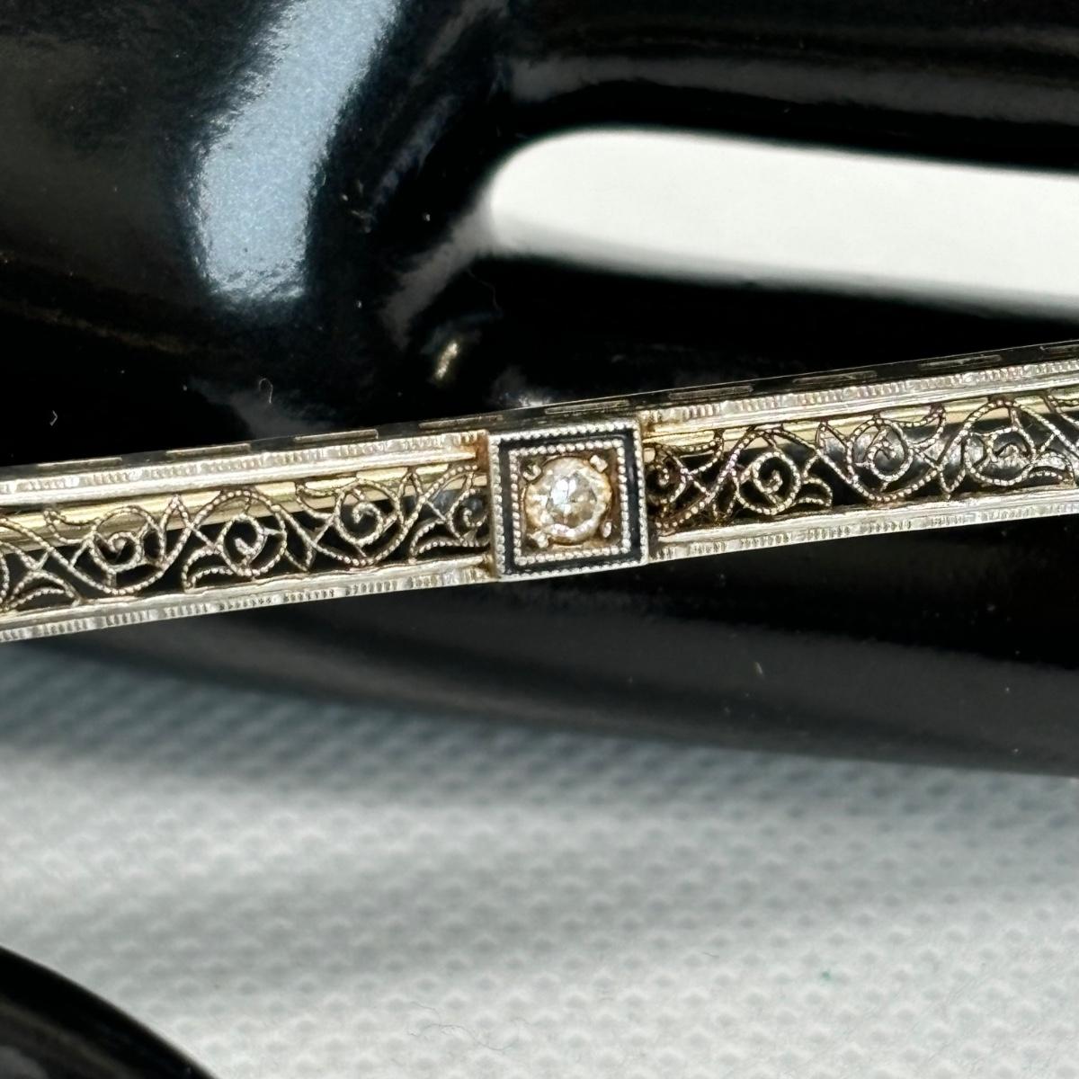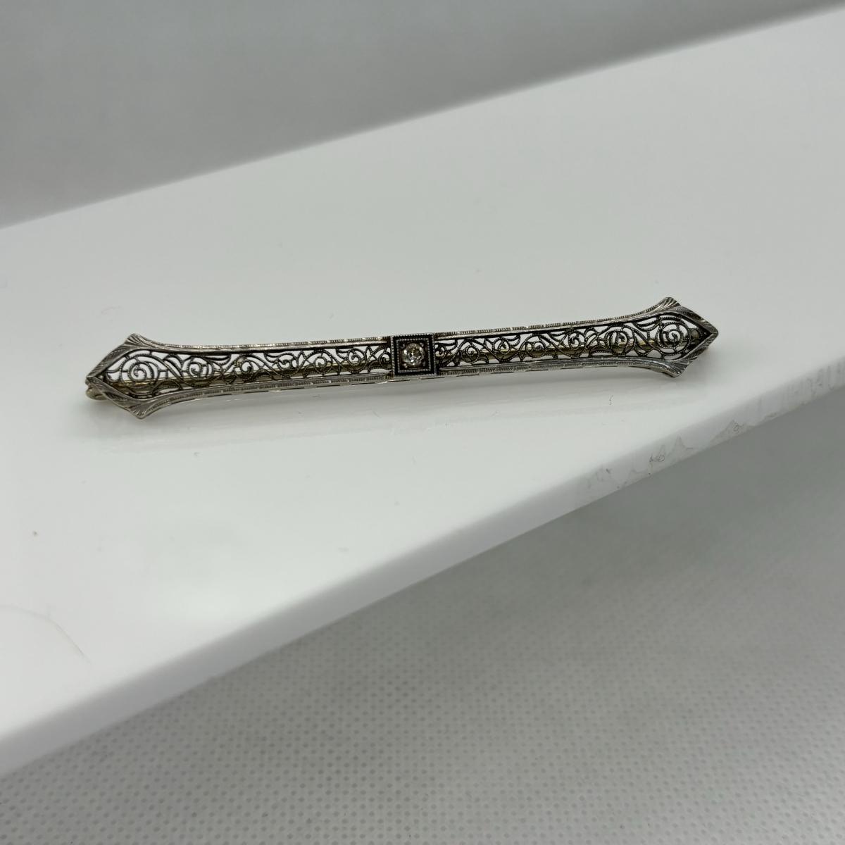 LOT 73: Antique 14K Filagree & Diamond Bar Pin