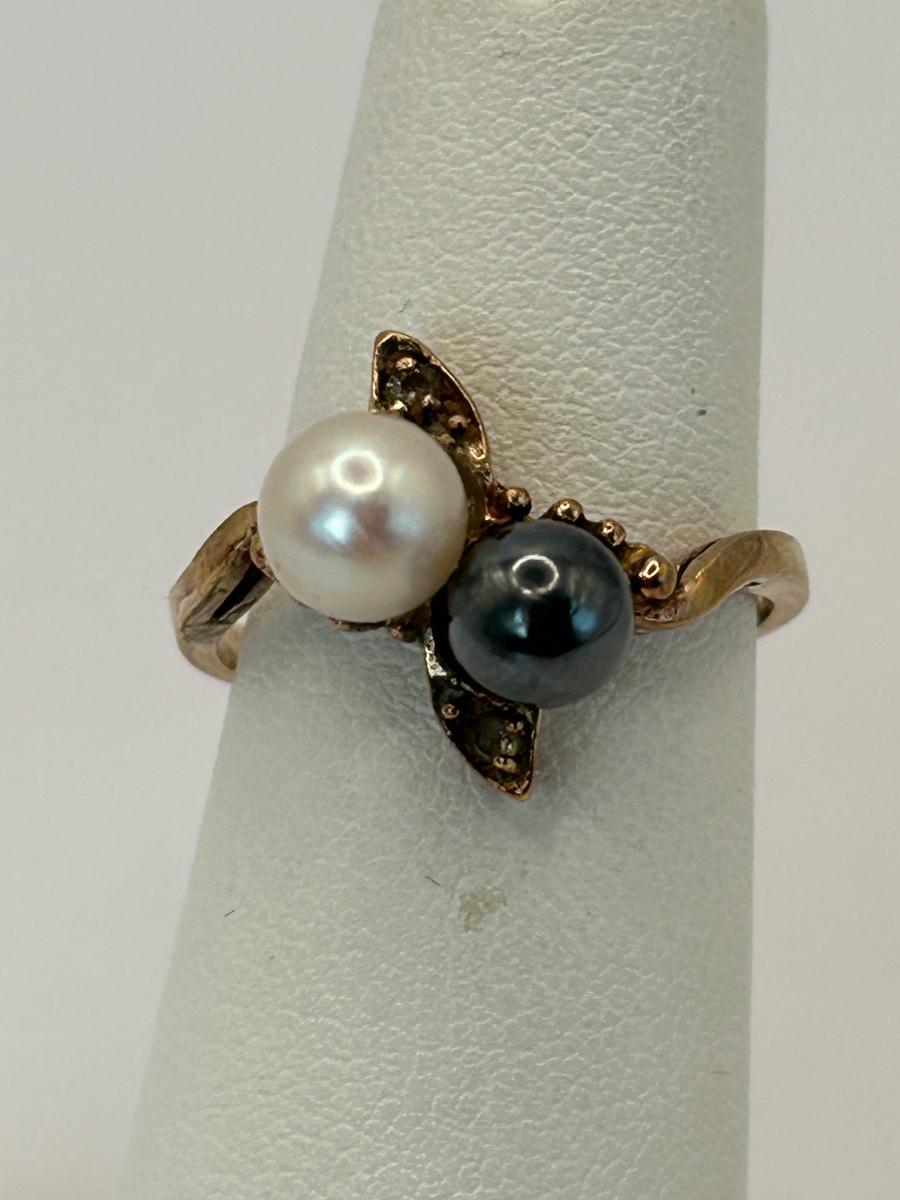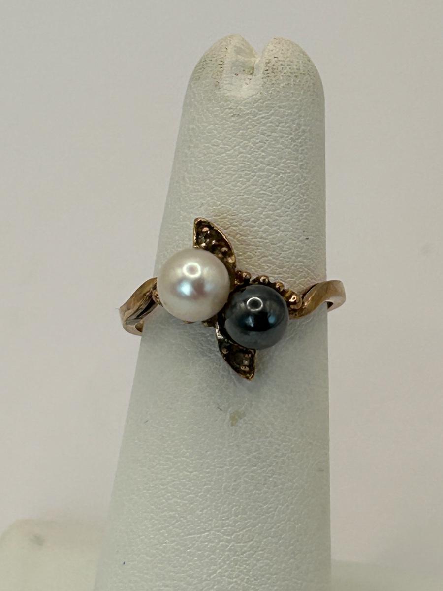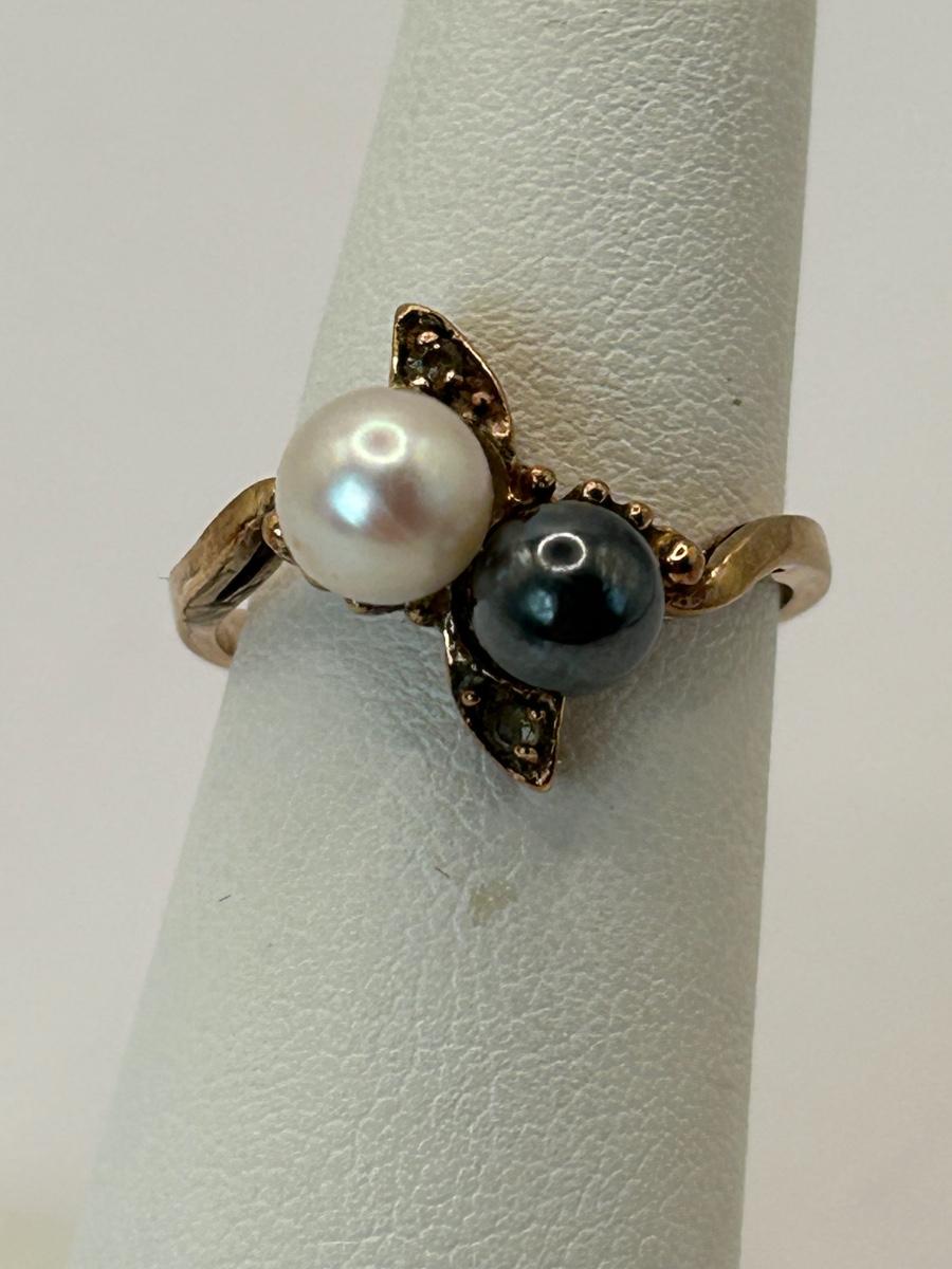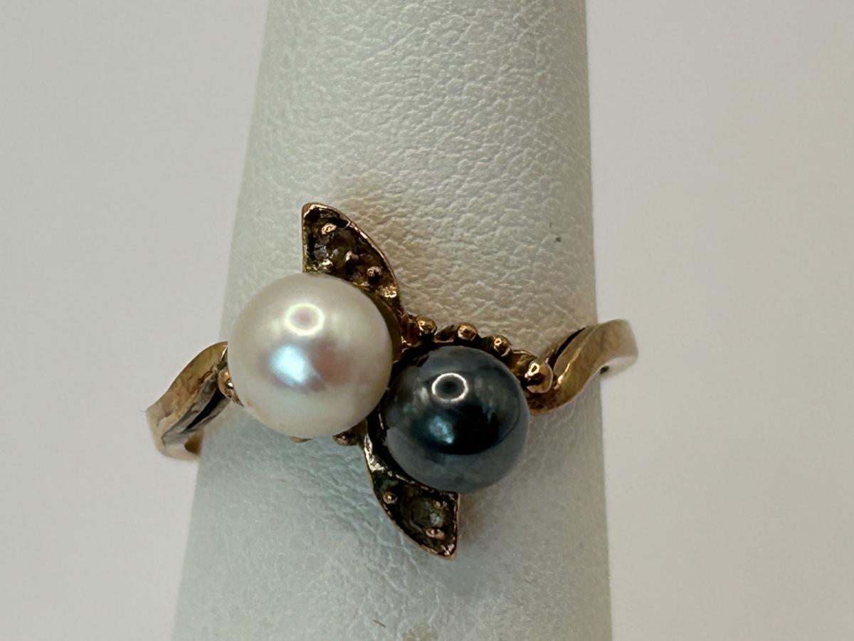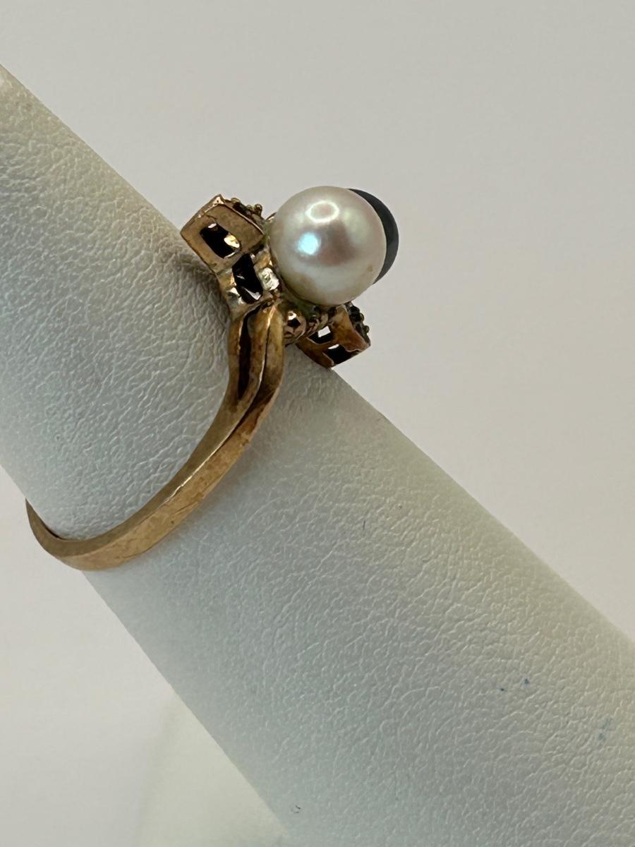 LOT 74: 10K Italy Pearl & Diamond Yellow Gold Ring