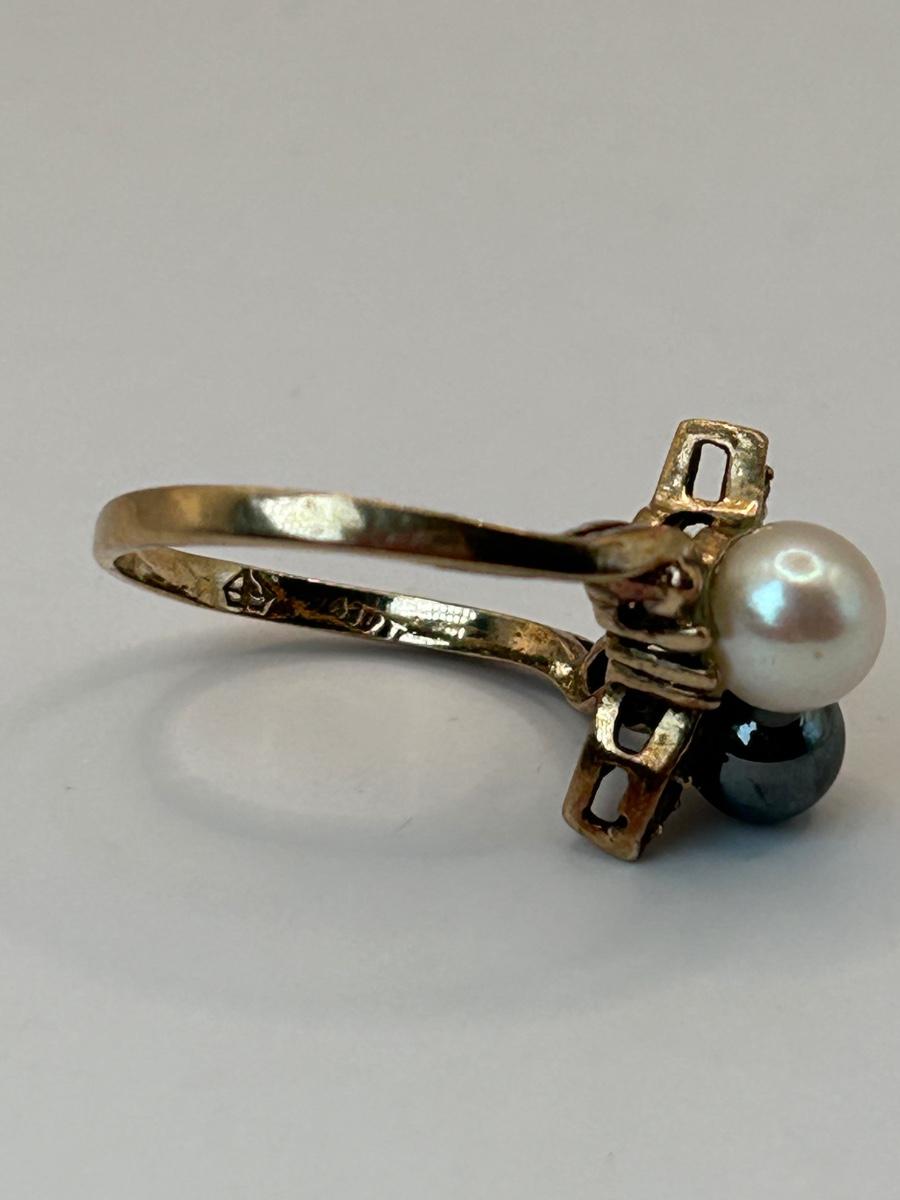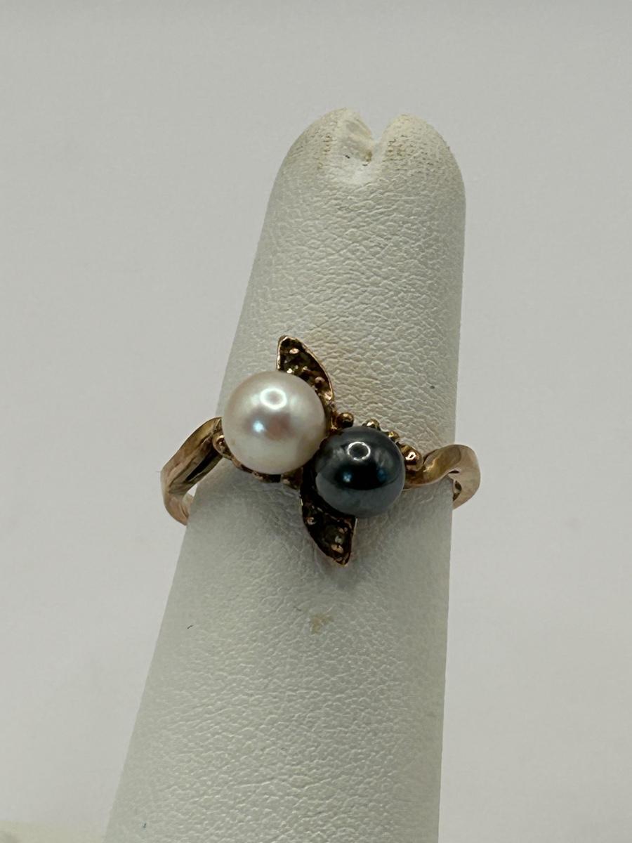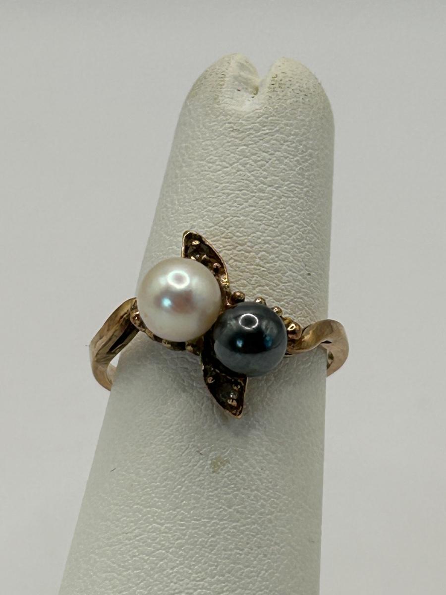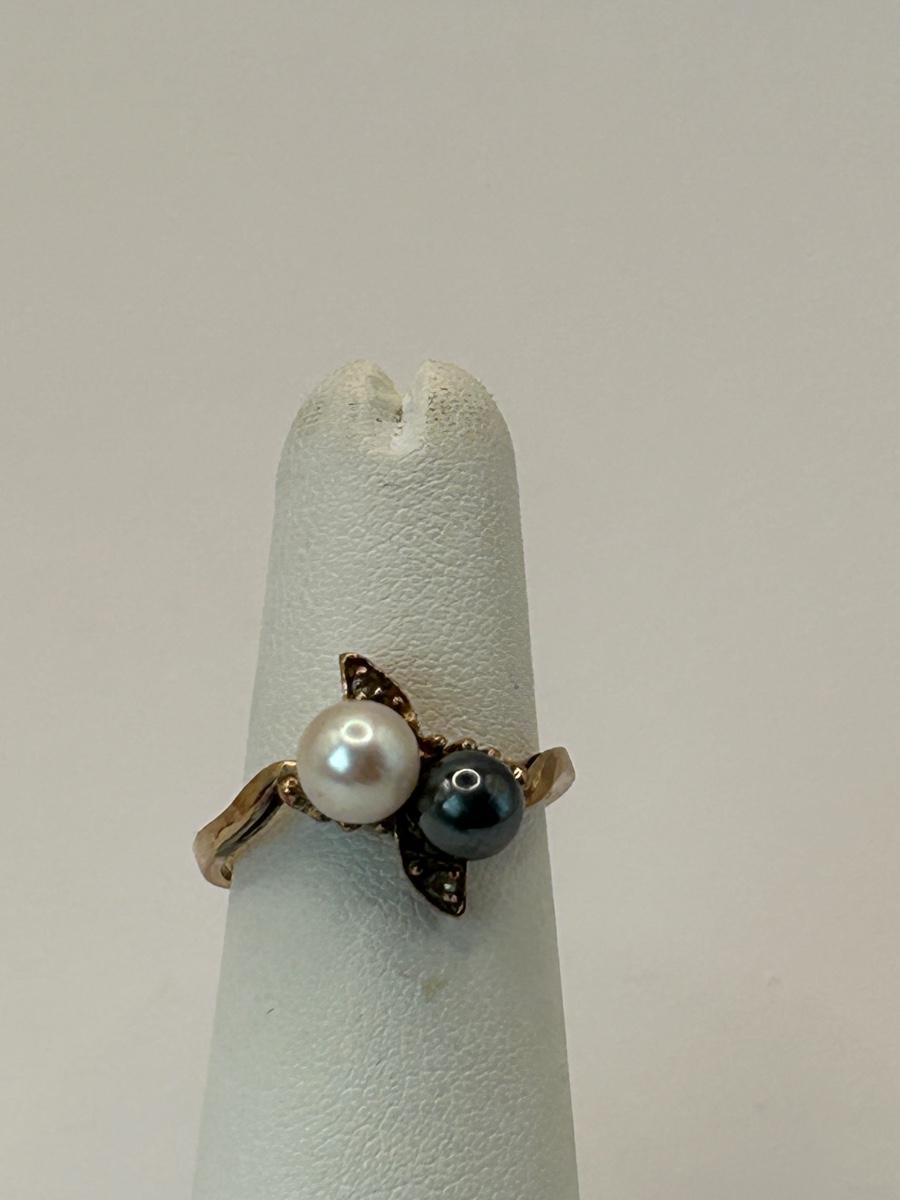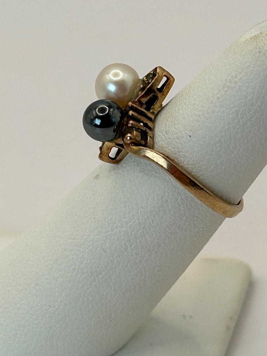 LOT 74: 10K Italy Pearl & Diamond Yellow Gold Ring