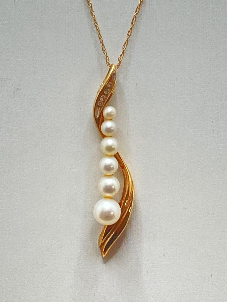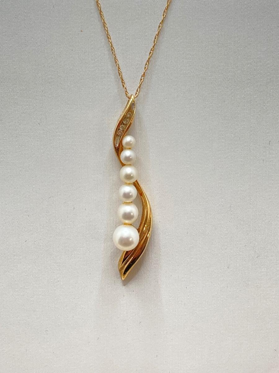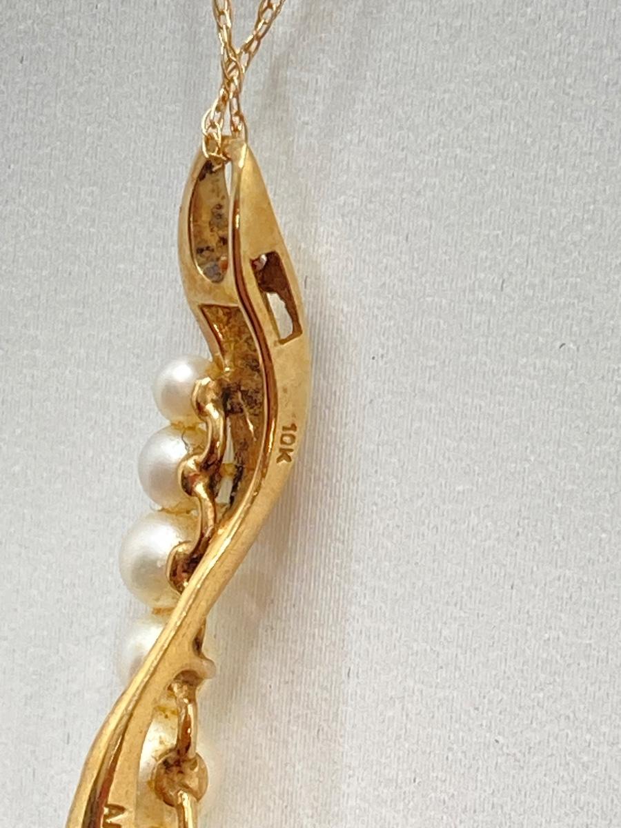 LOT 85: Gold Necklace with Diamond and Pearl Pendant - 10KT, TW 2.36g, 18"