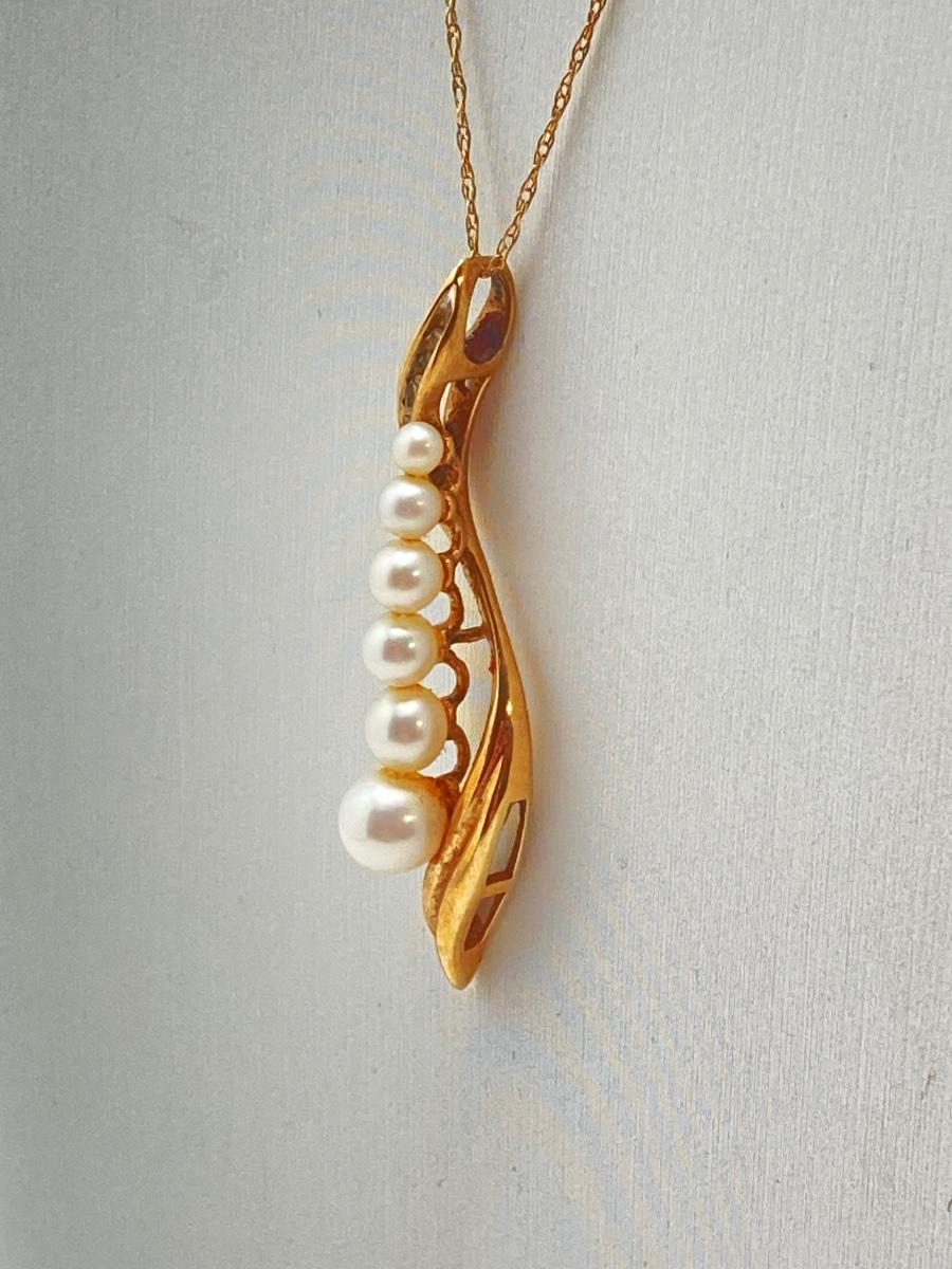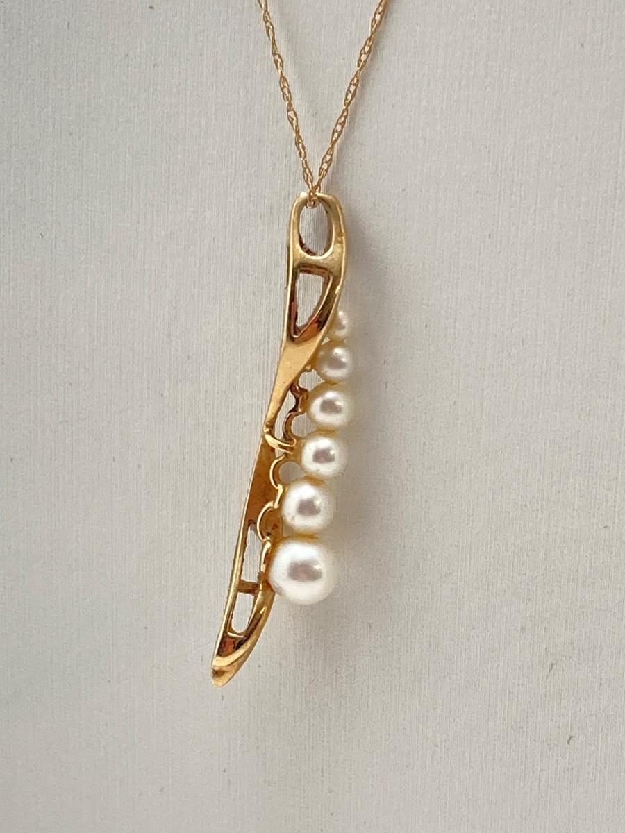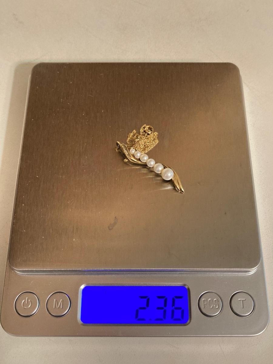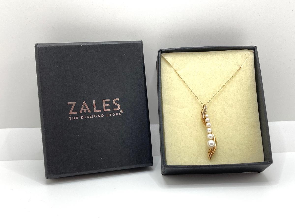 LOT 85: Gold Necklace with Diamond and Pearl Pendant - 10KT, TW 2.36g, 18"