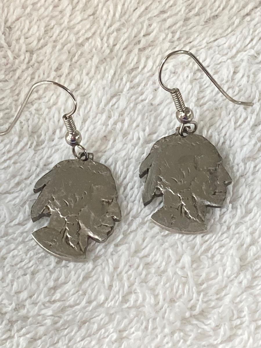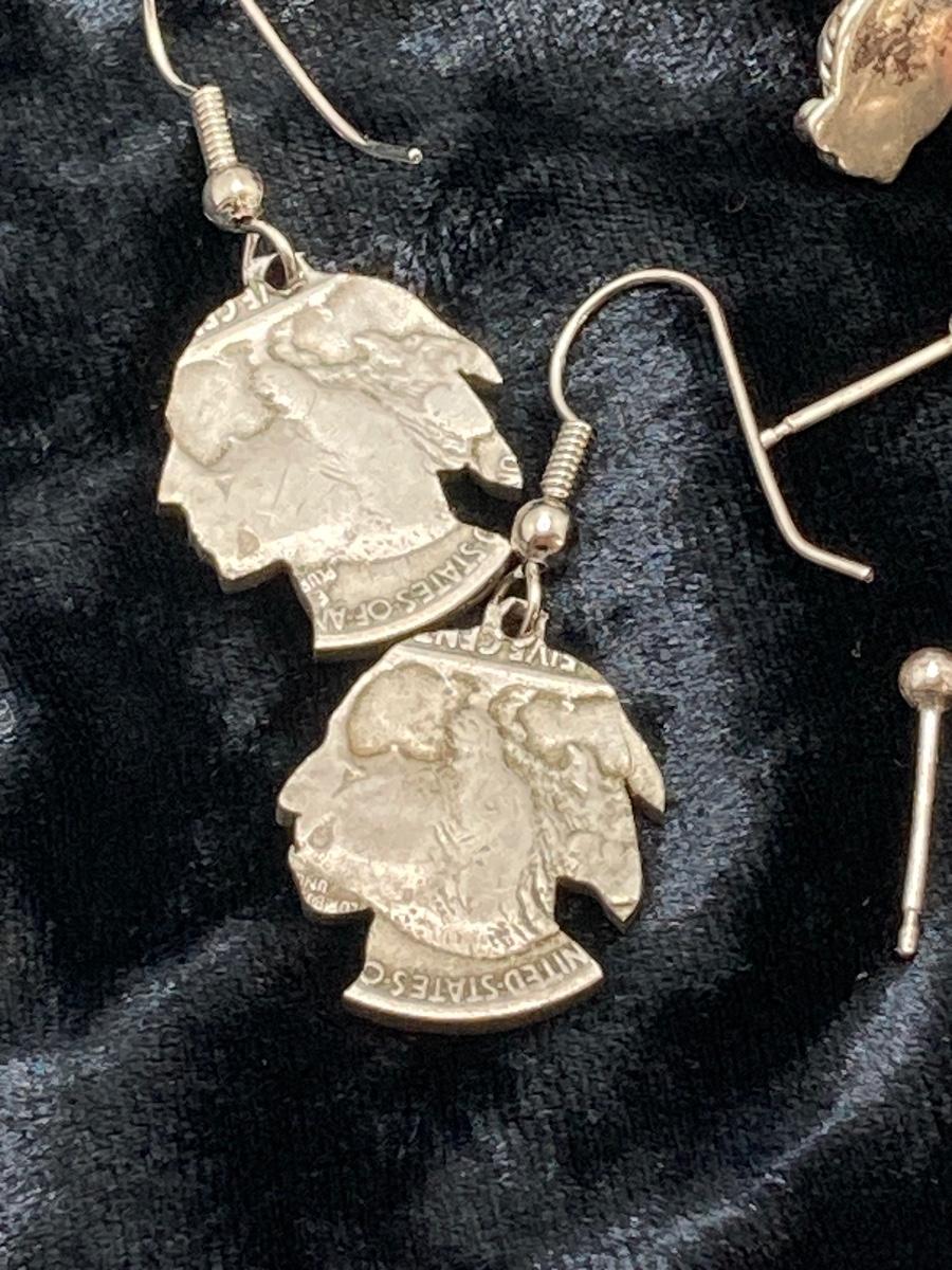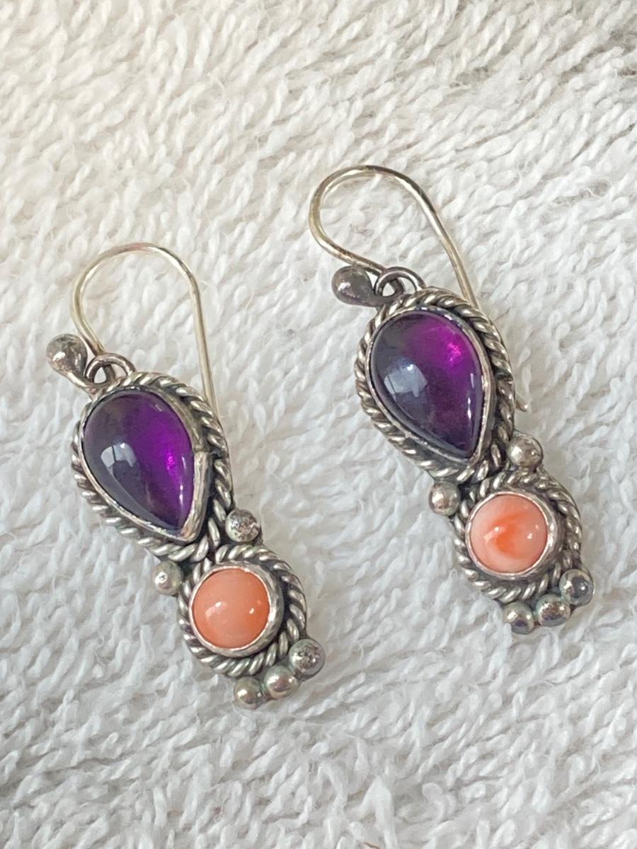 LOT 95: Silver Earrings Collection - Amethyst & Coral, Tri-Color Chain Dangle and Buffalo Nickels