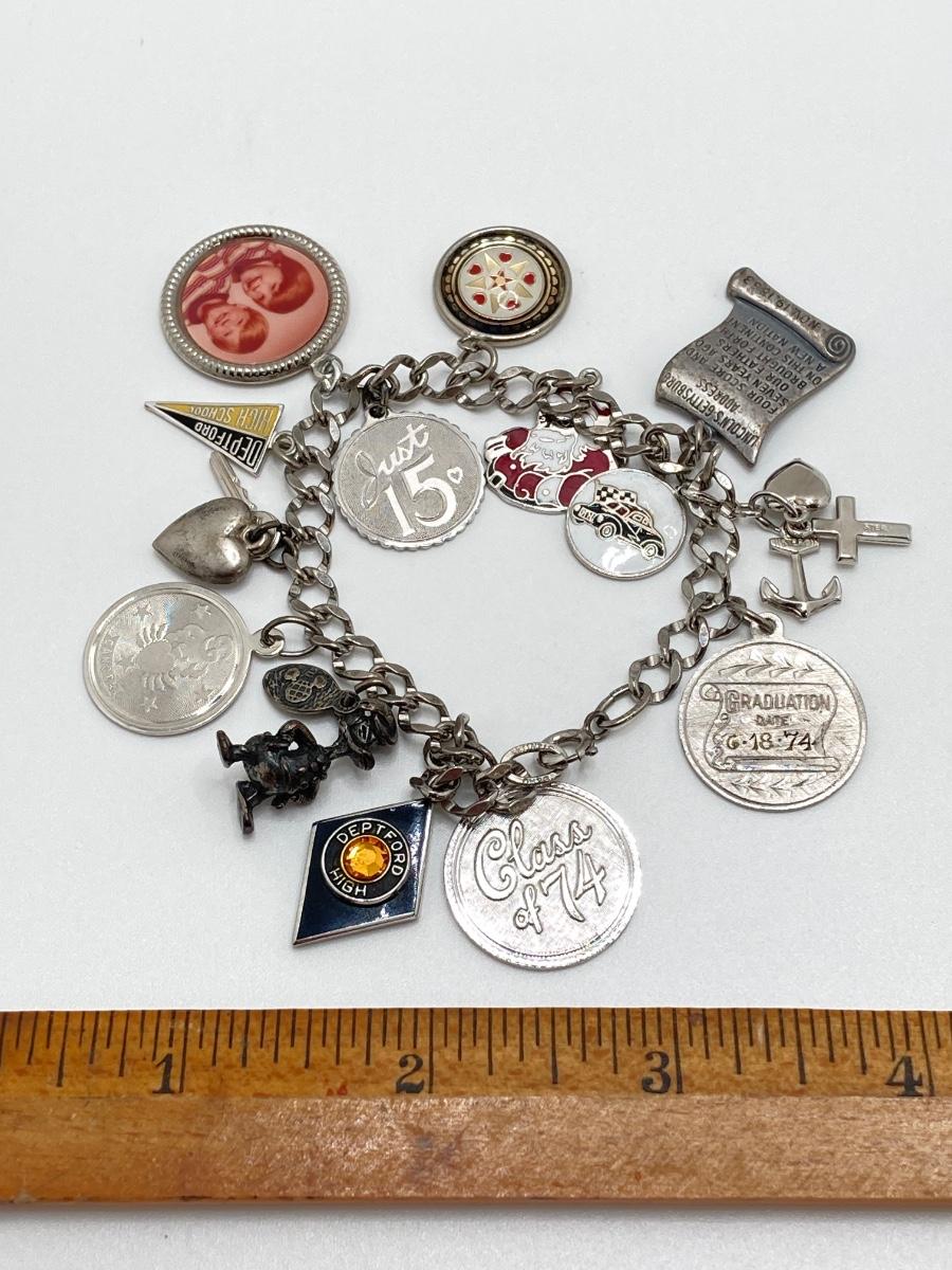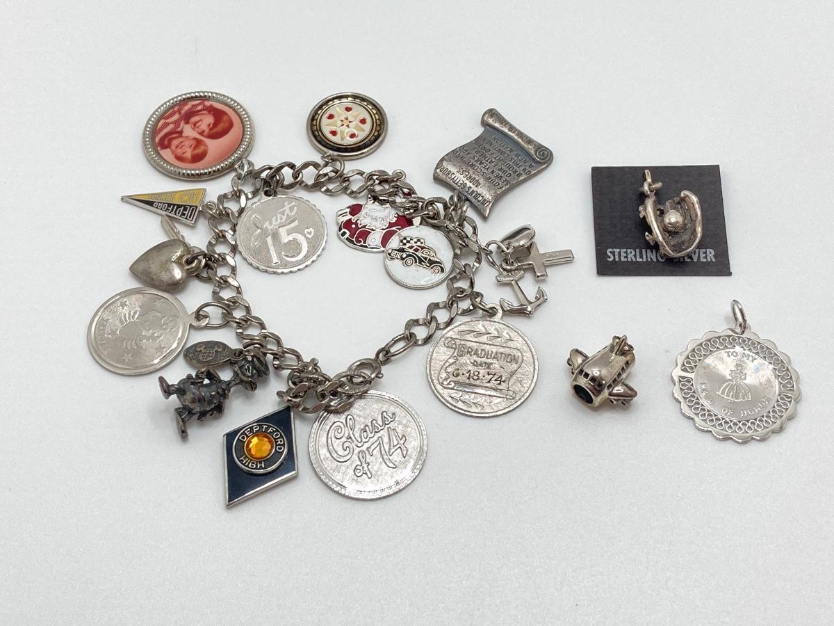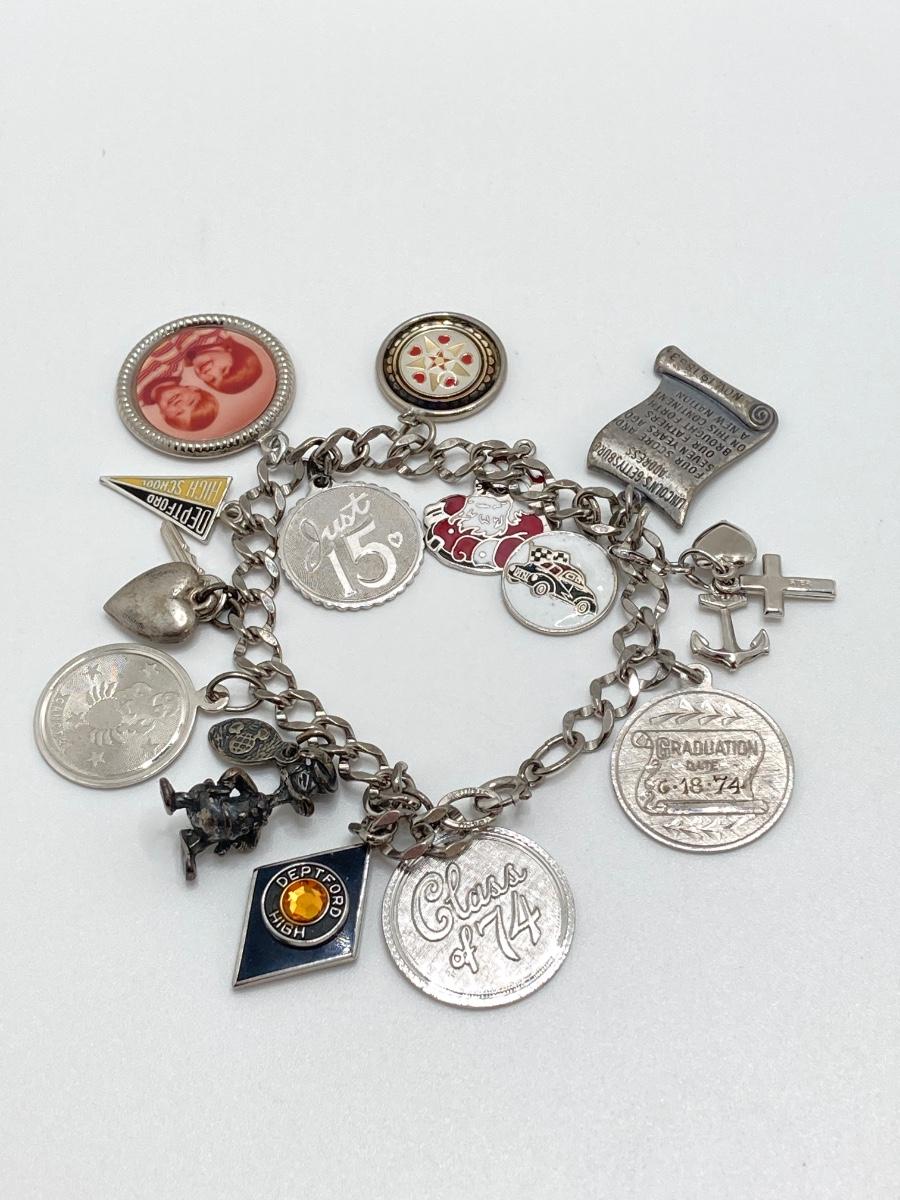 LOT 99: Sterling Charm Bracelet with Extra Charms - TW 42.5g